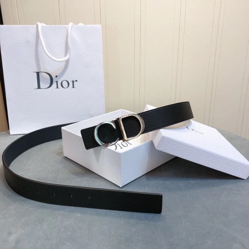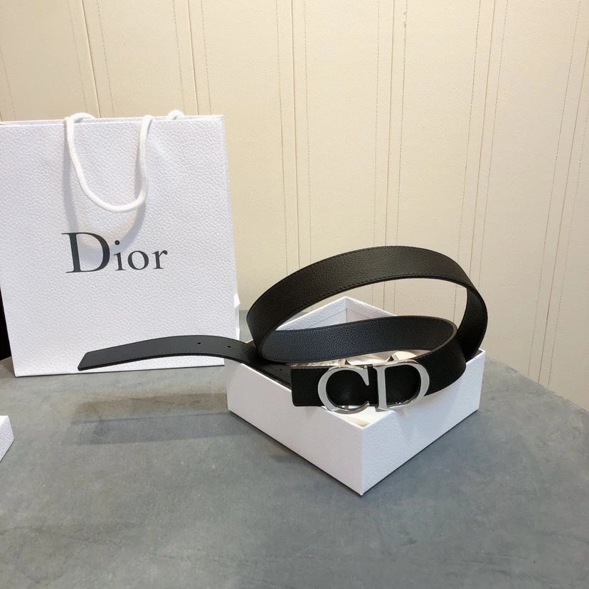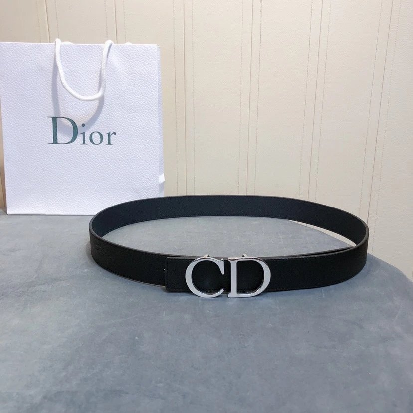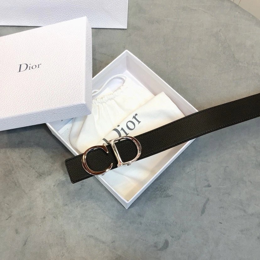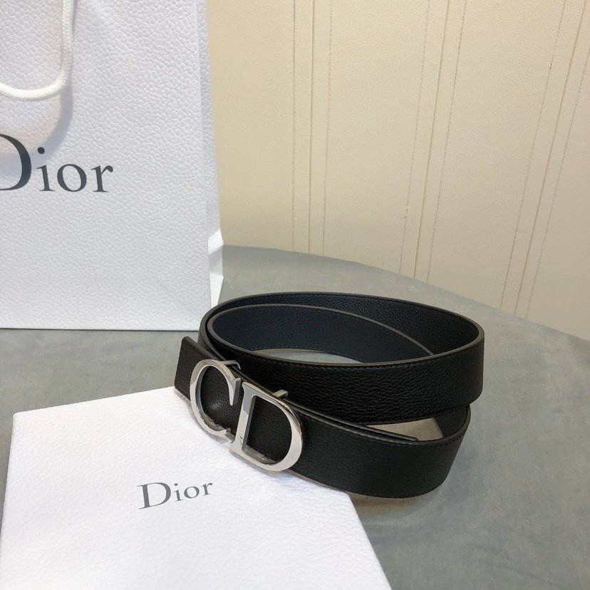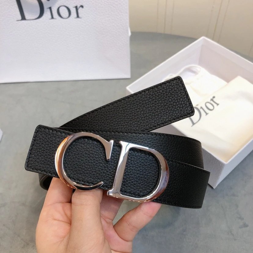 Dior Men's Belt has 3.5cm width, full-grain lychee-grain cowhide, steel hardware & palladium-plated CD buckle.