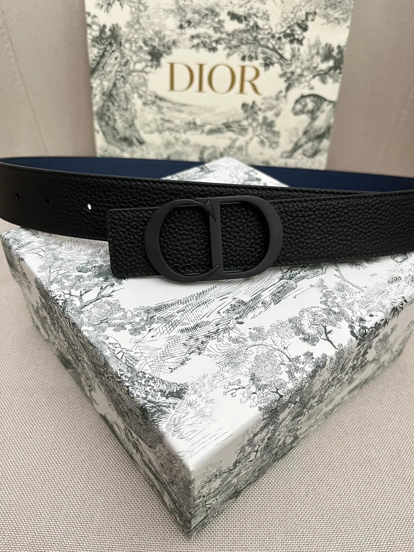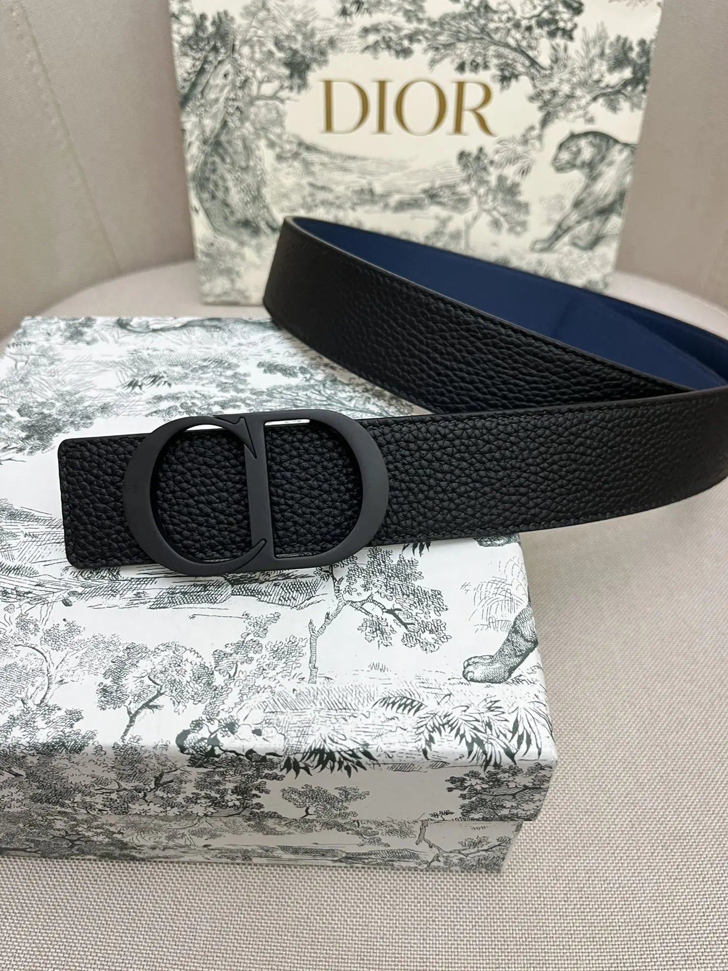 Dior Collection belt features genuine cowhide leather, palladium-plated steel buckle, 3.5cm width for premium quality.