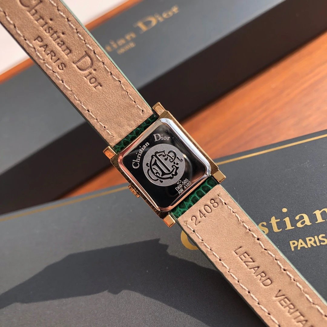 19×19mm square case with imported mother-of-pearl dial, emerald green top grain cowhide strap & quilted buckle.