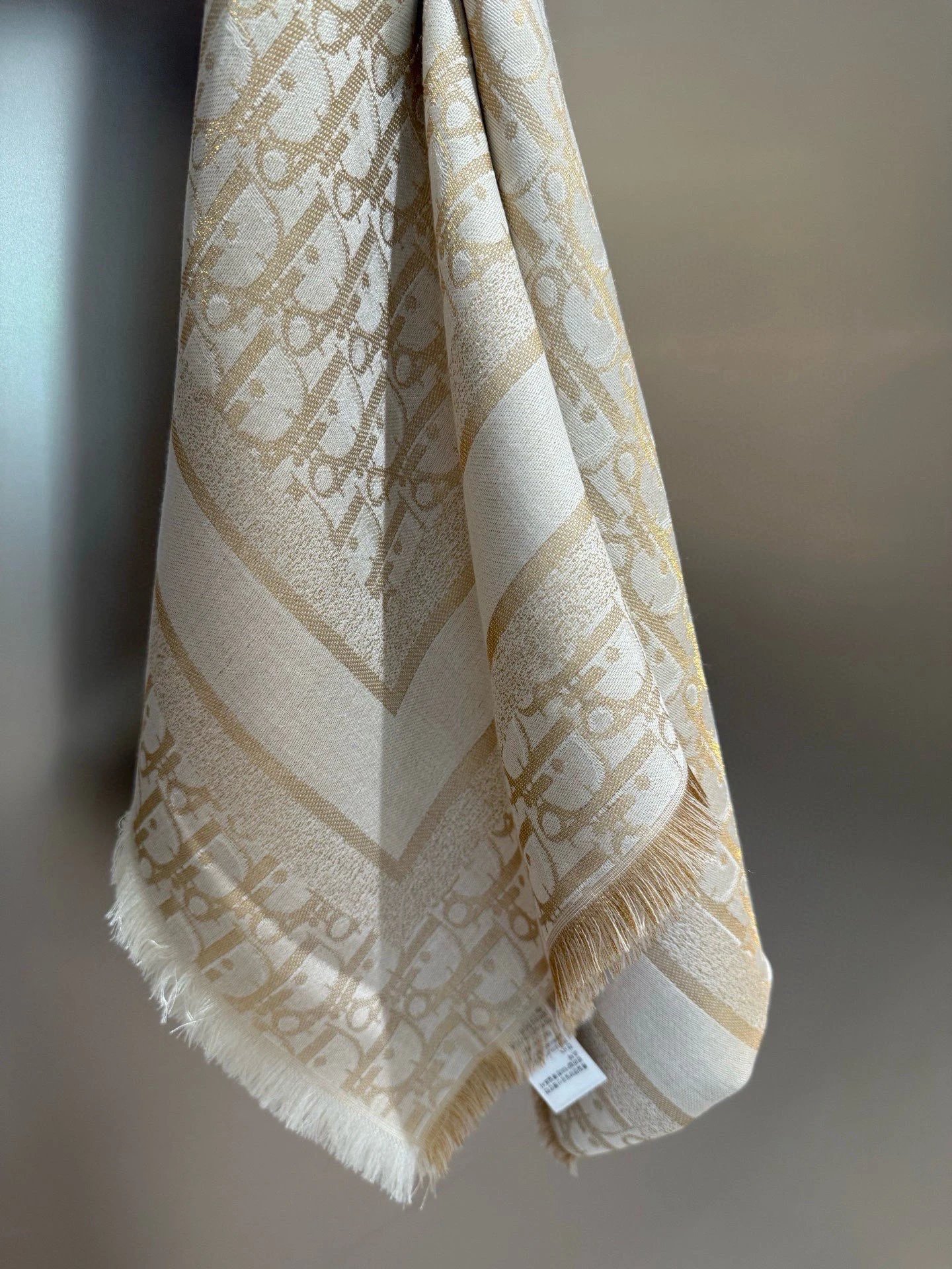 Dior Silk-Wool Blend Scarf with classic letter jacquard & floral pattern, ideal for matching outfits/accessories.