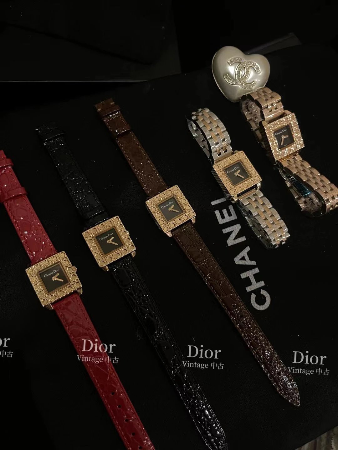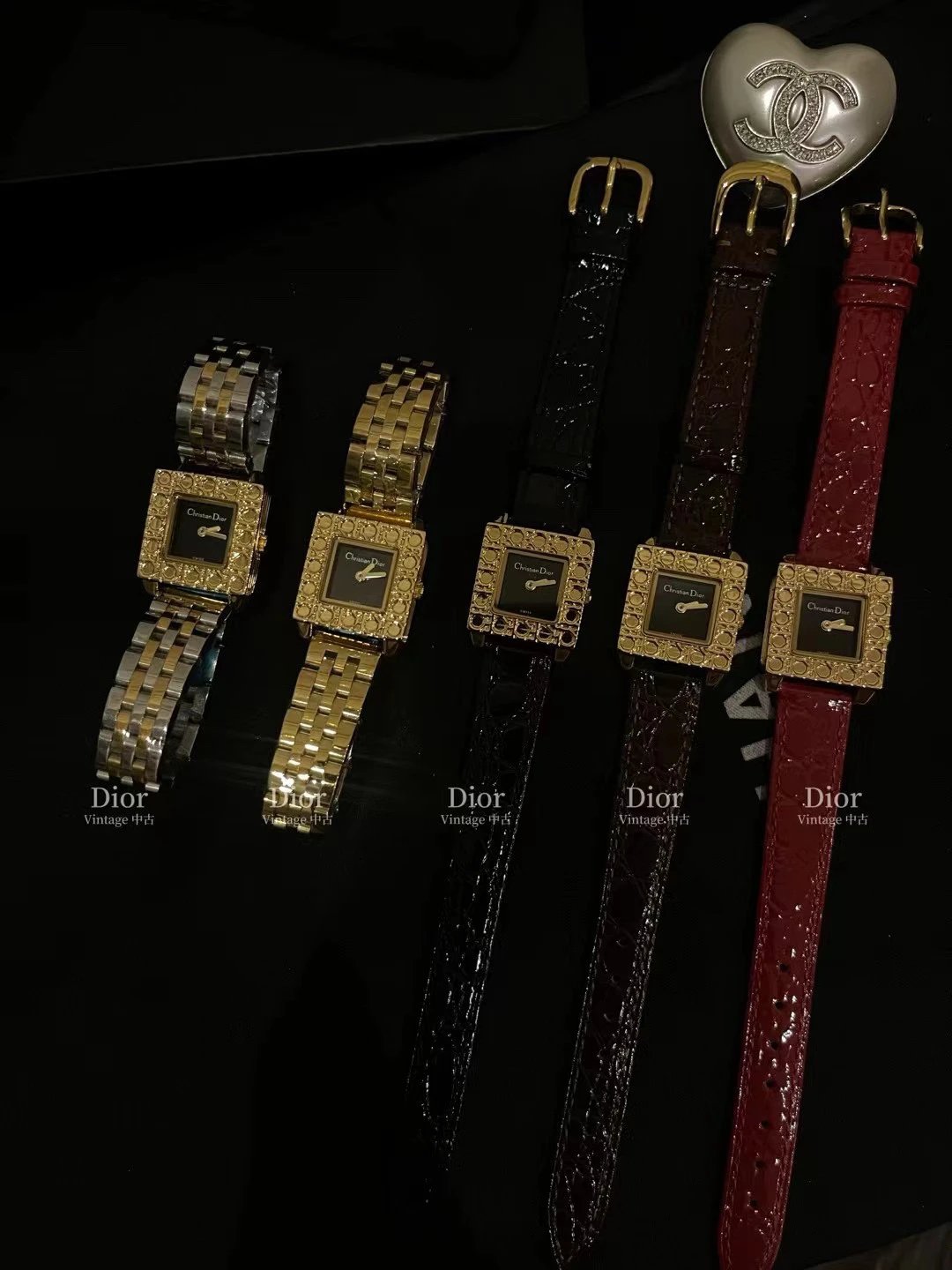 Dior Vintage Women's Watch features leather & steel materials, stylish design for fashion lovers.