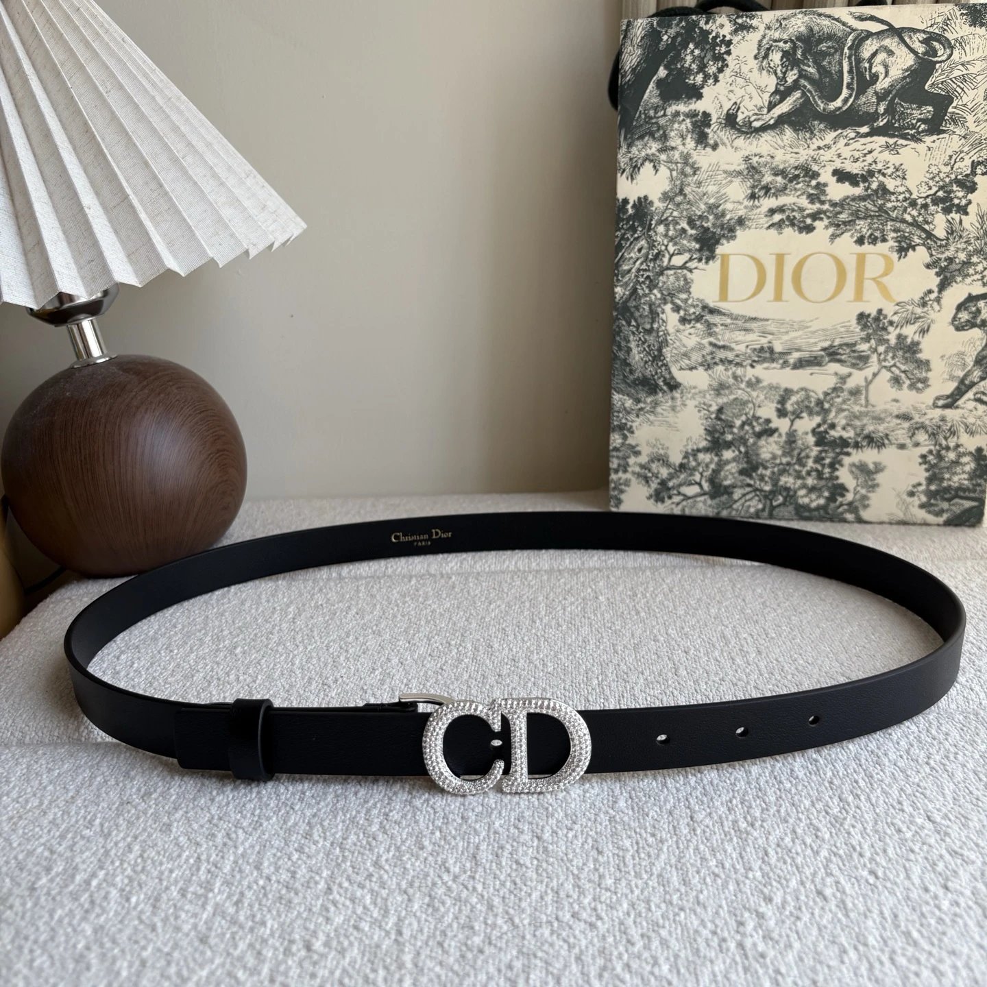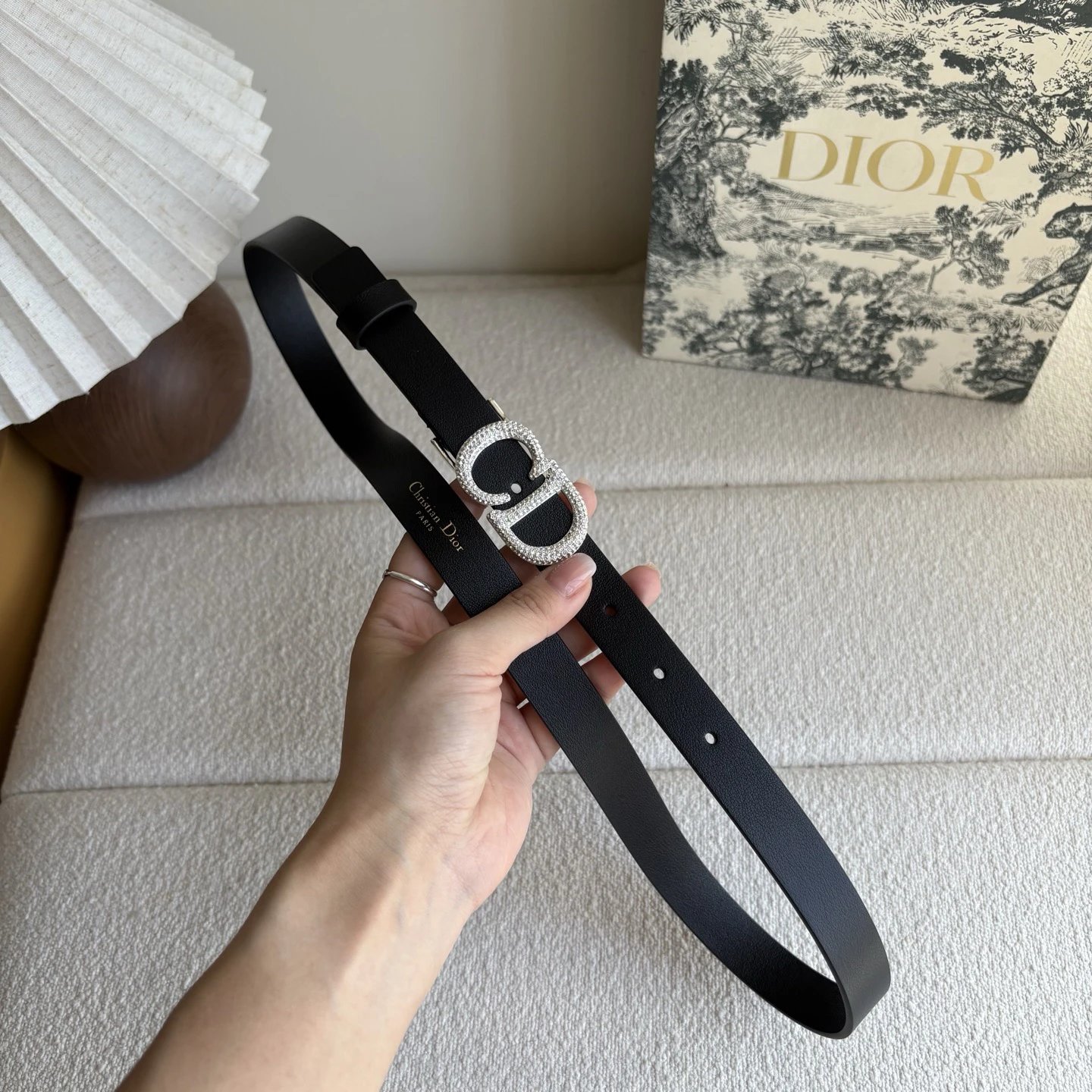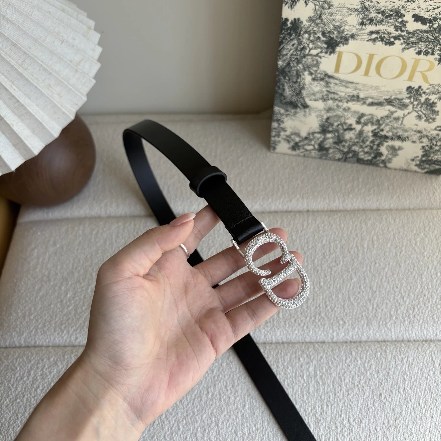 Dior Smooth Cowhide Belt features a classic metal buckle encrusted with small crystals.