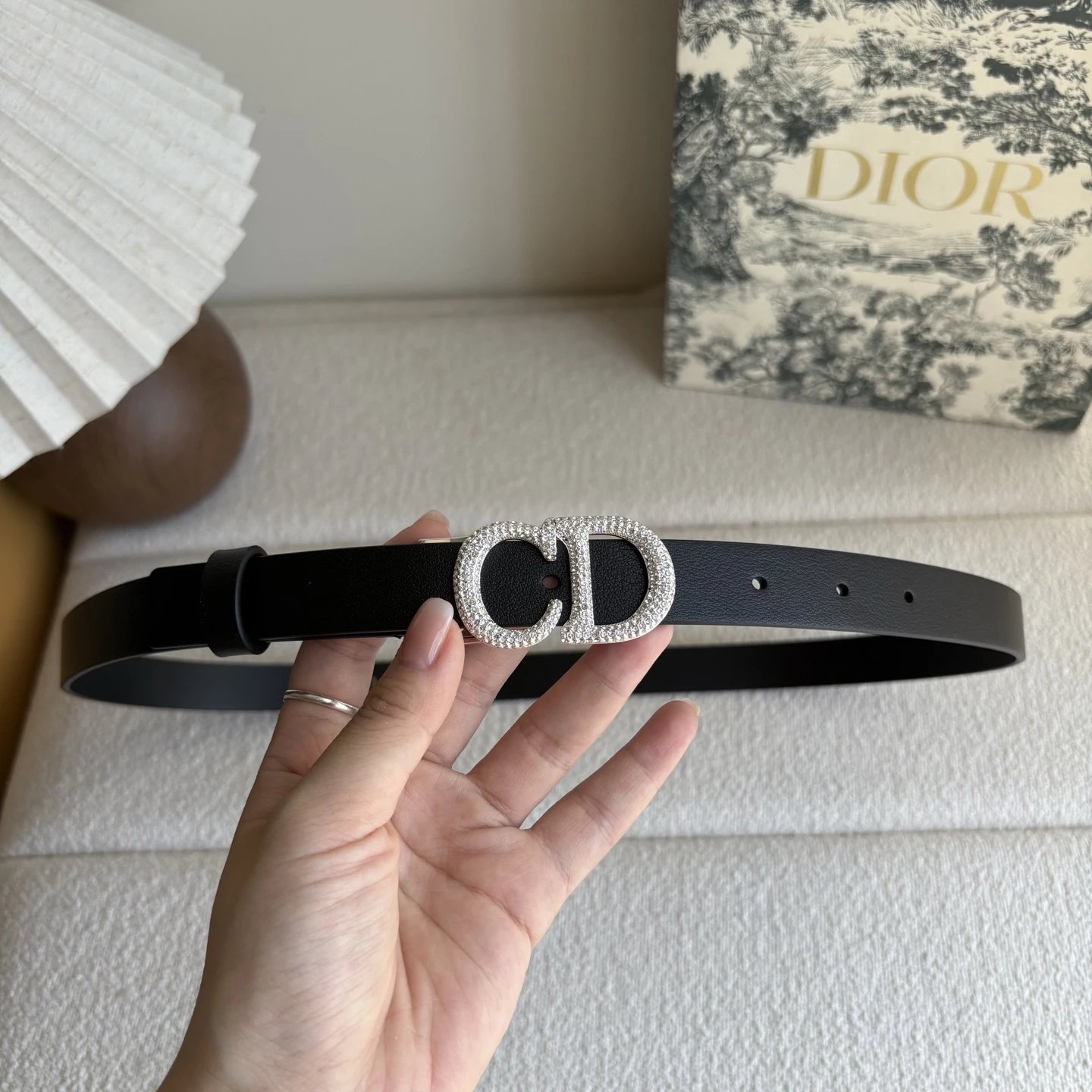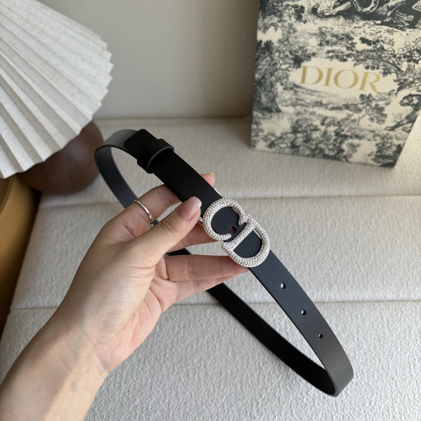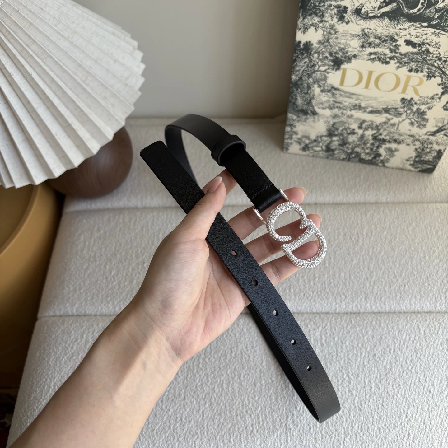 Dior Smooth Cowhide Belt features a classic metal buckle encrusted with small crystals.