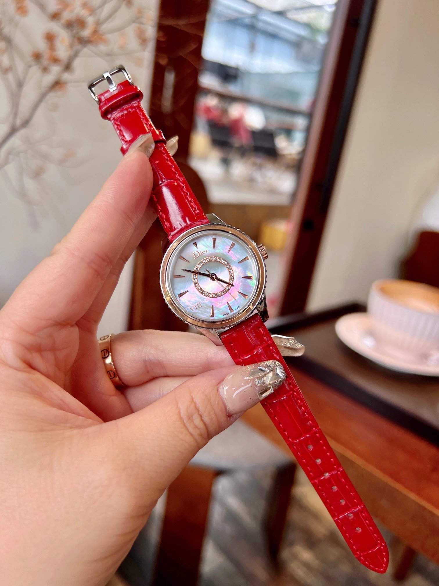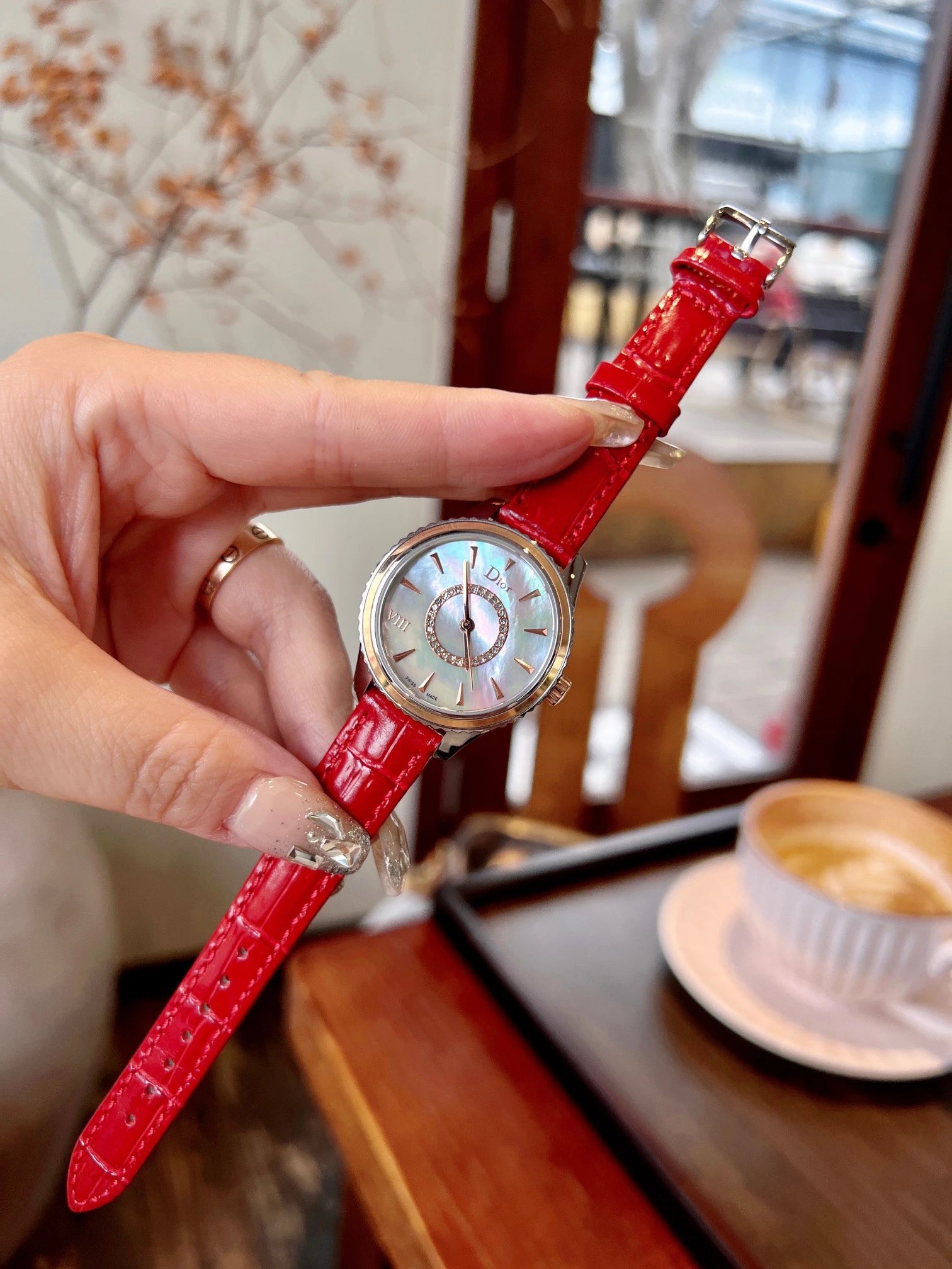 Dior 410DiorVIII Montaigne Burgundy Women's Watch showcases strong feminine charm. Inspired by Dior's ready-to-wear, it's a haute couture masterpiece for elegant evening/daily looks.