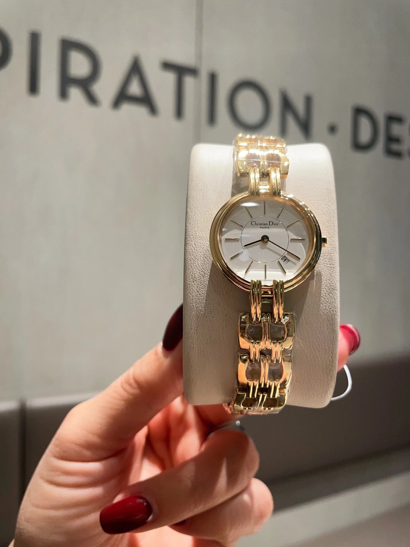 Dior Pumpkin Embossed Collection Watch adds subtle elegance to exposed skin with lightweight outfits.