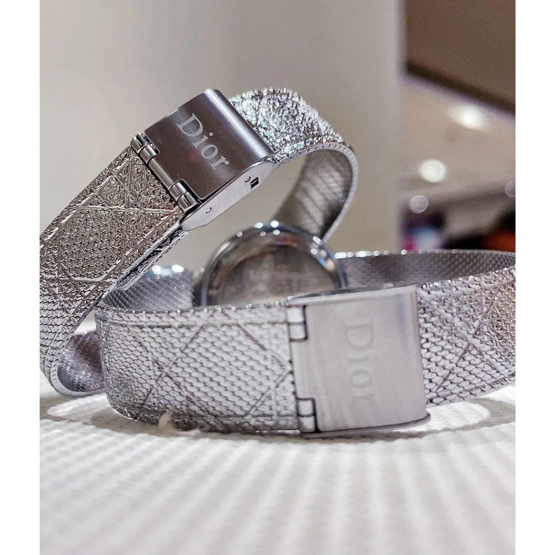 Dior LA D MY DIOR CD04111 Series Watch features elegant curved design, classic Cannage pattern, and hand-engraved lines.