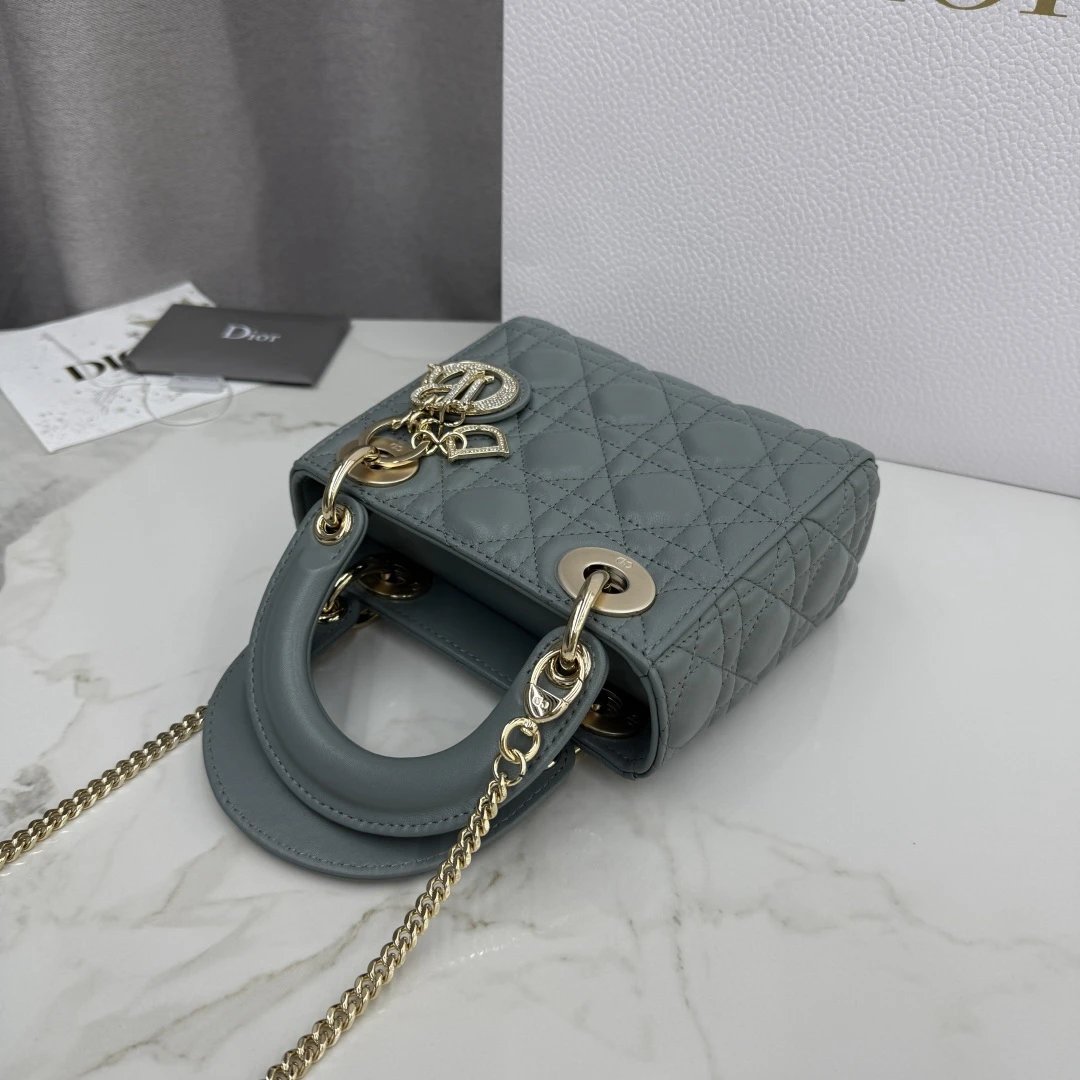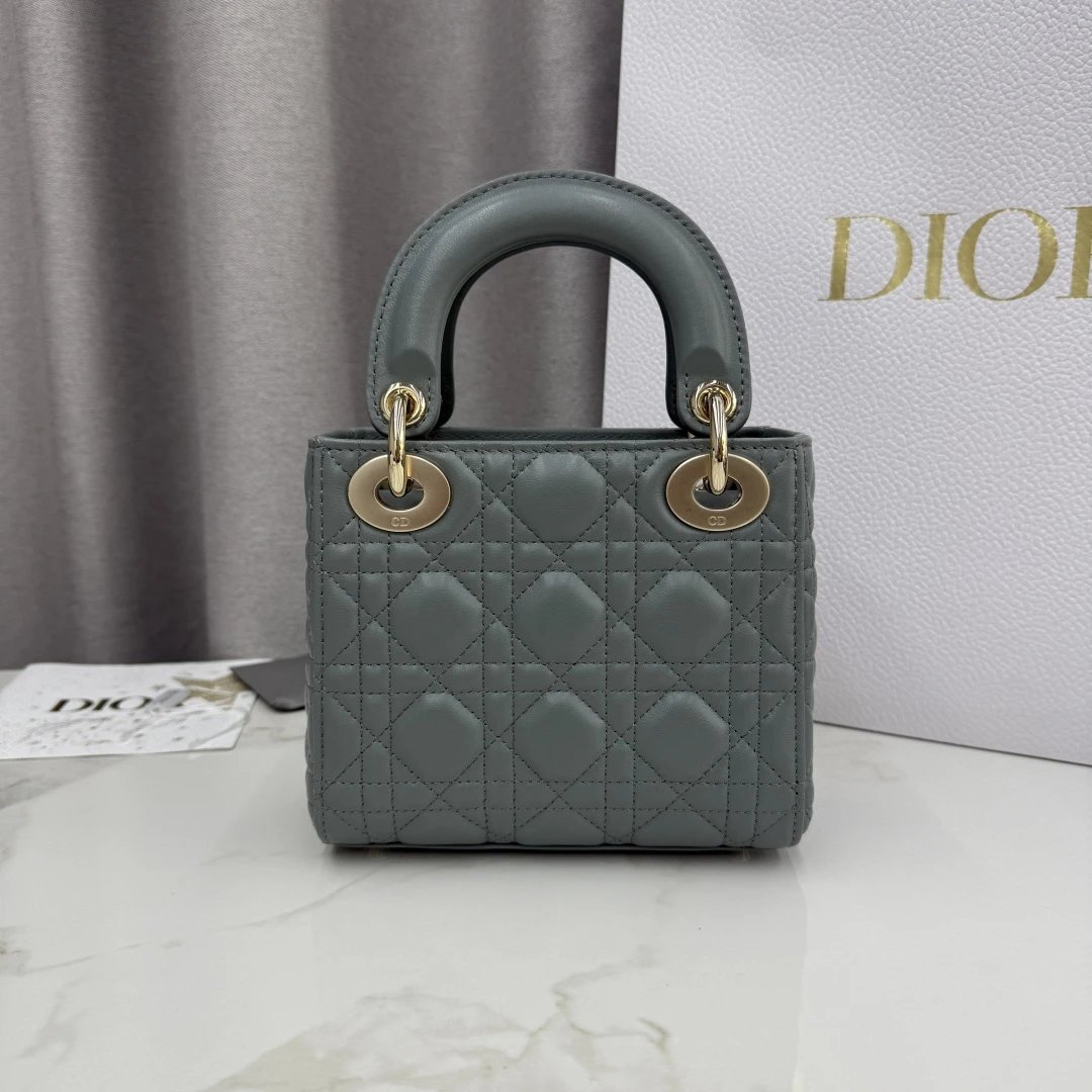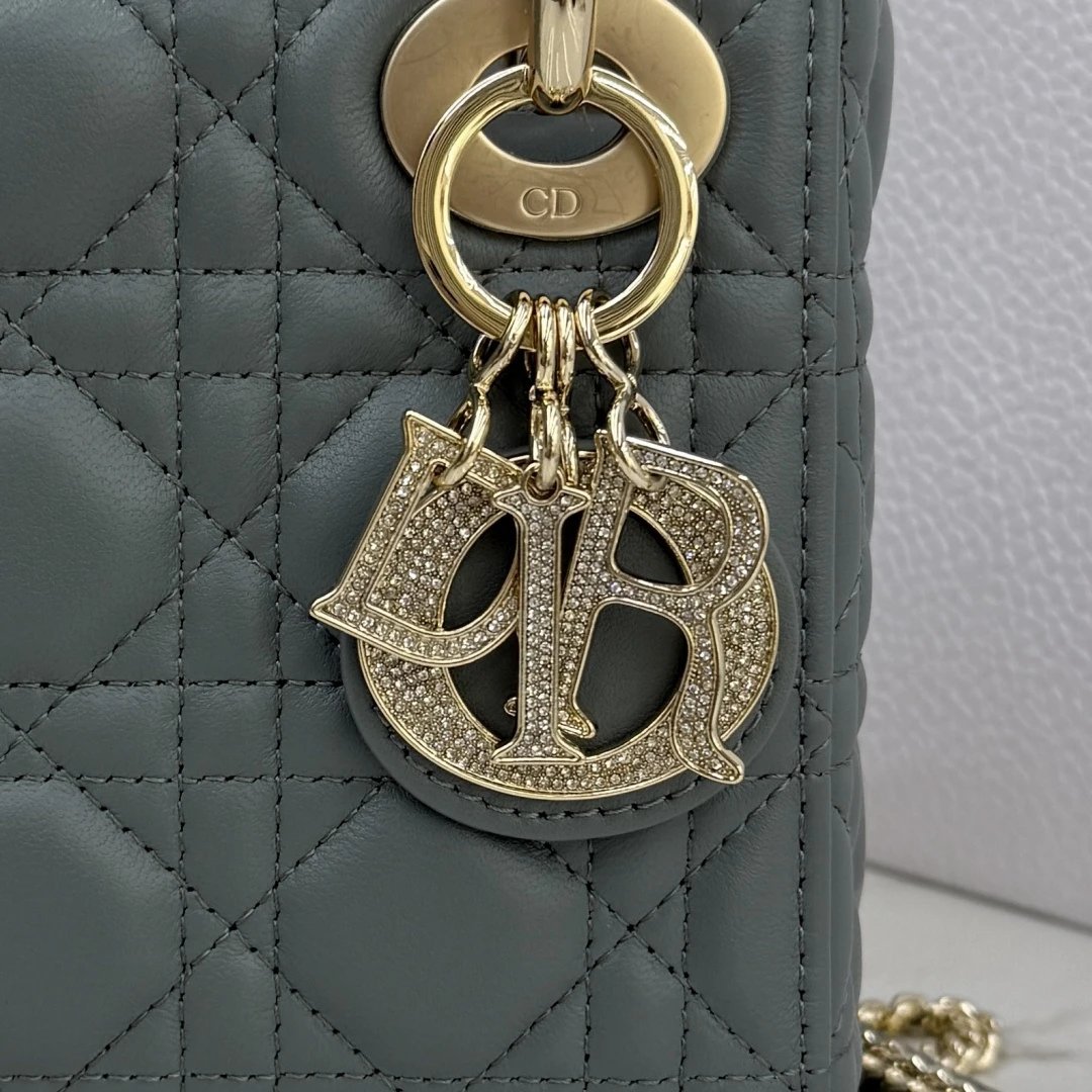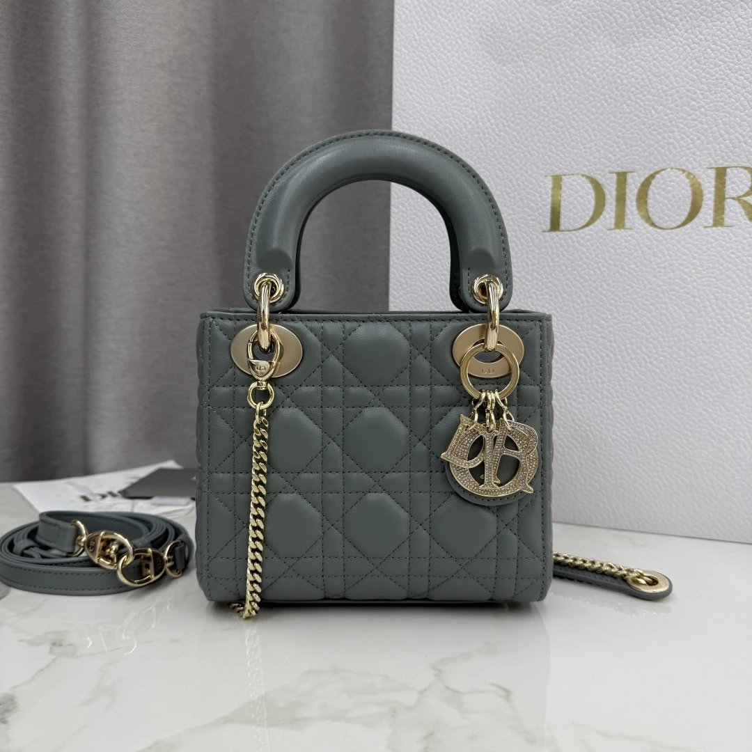 Dior Lady Dior 3-Grid Rock Gray Sheepskin Diamond Buckle Handbag