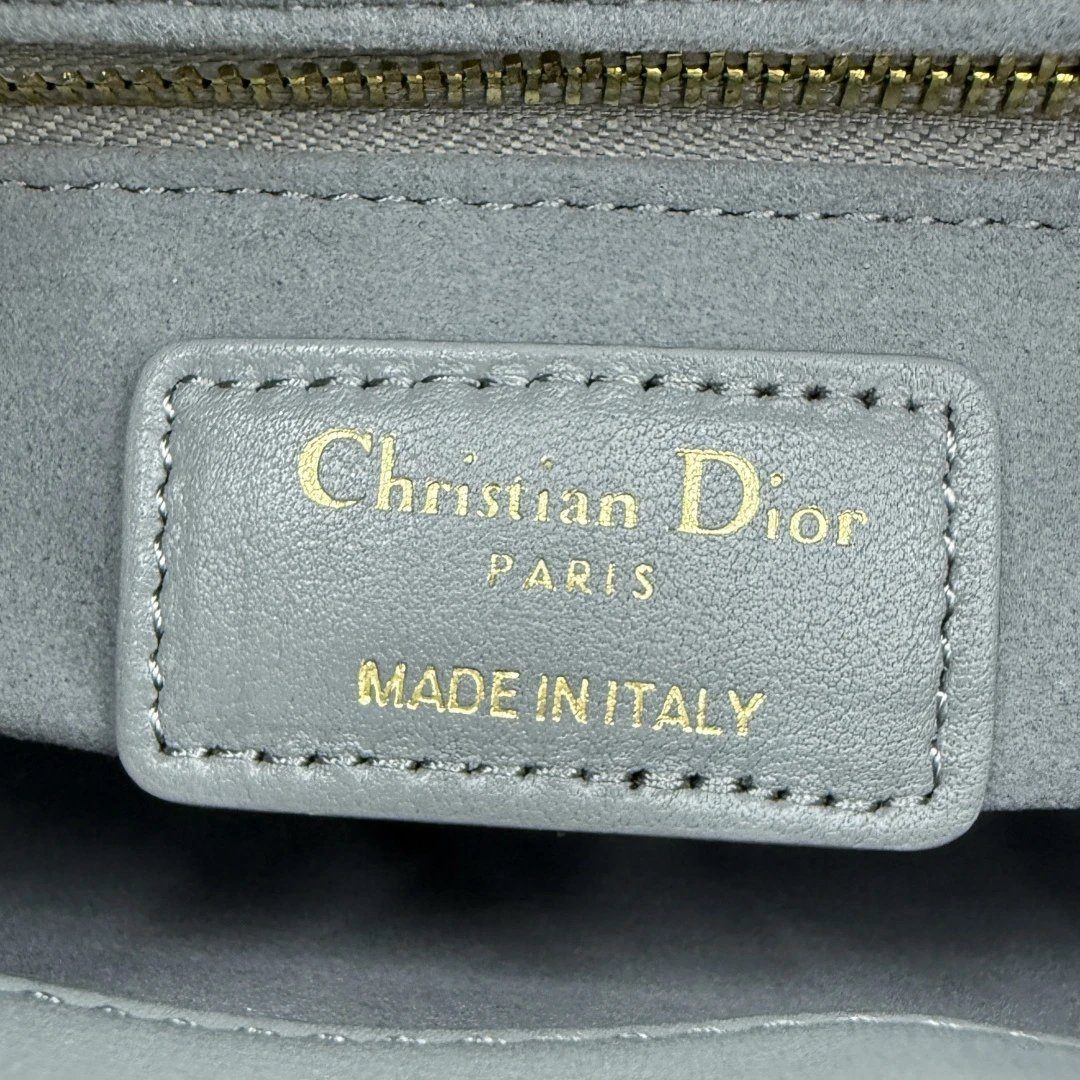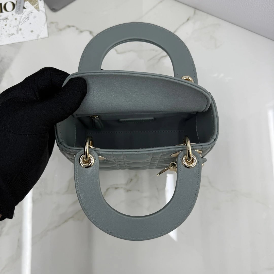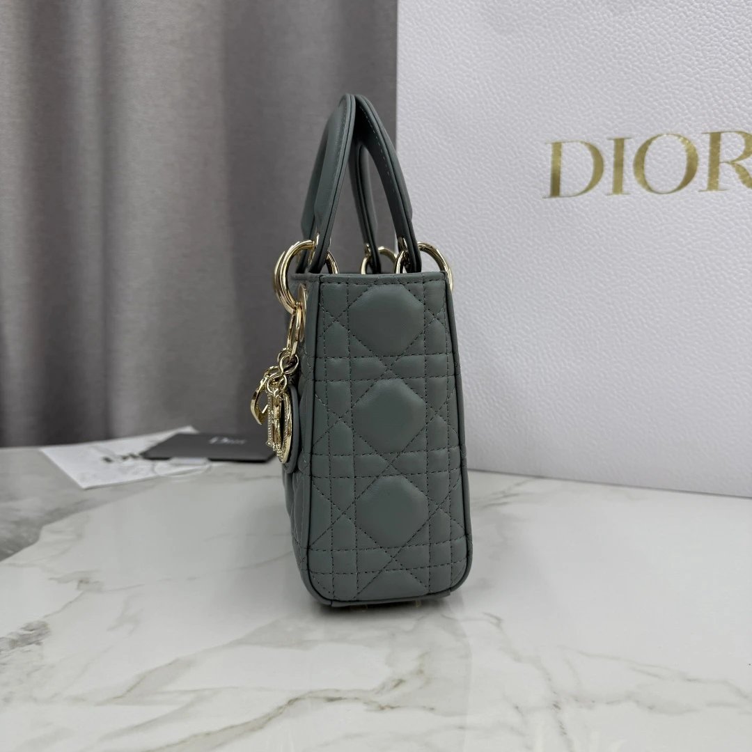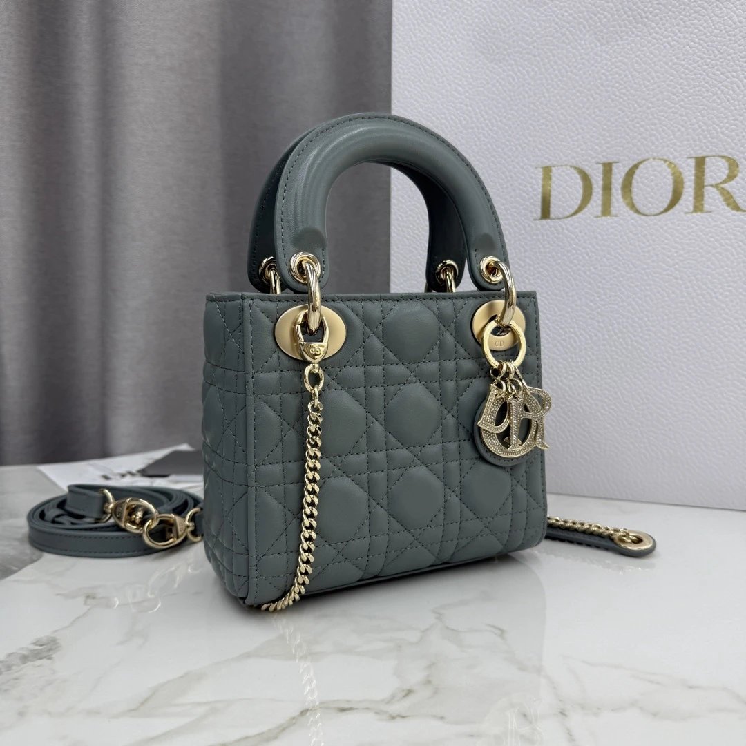 Dior Lady Dior 3-Grid Rock Gray Sheepskin Diamond Buckle Handbag
