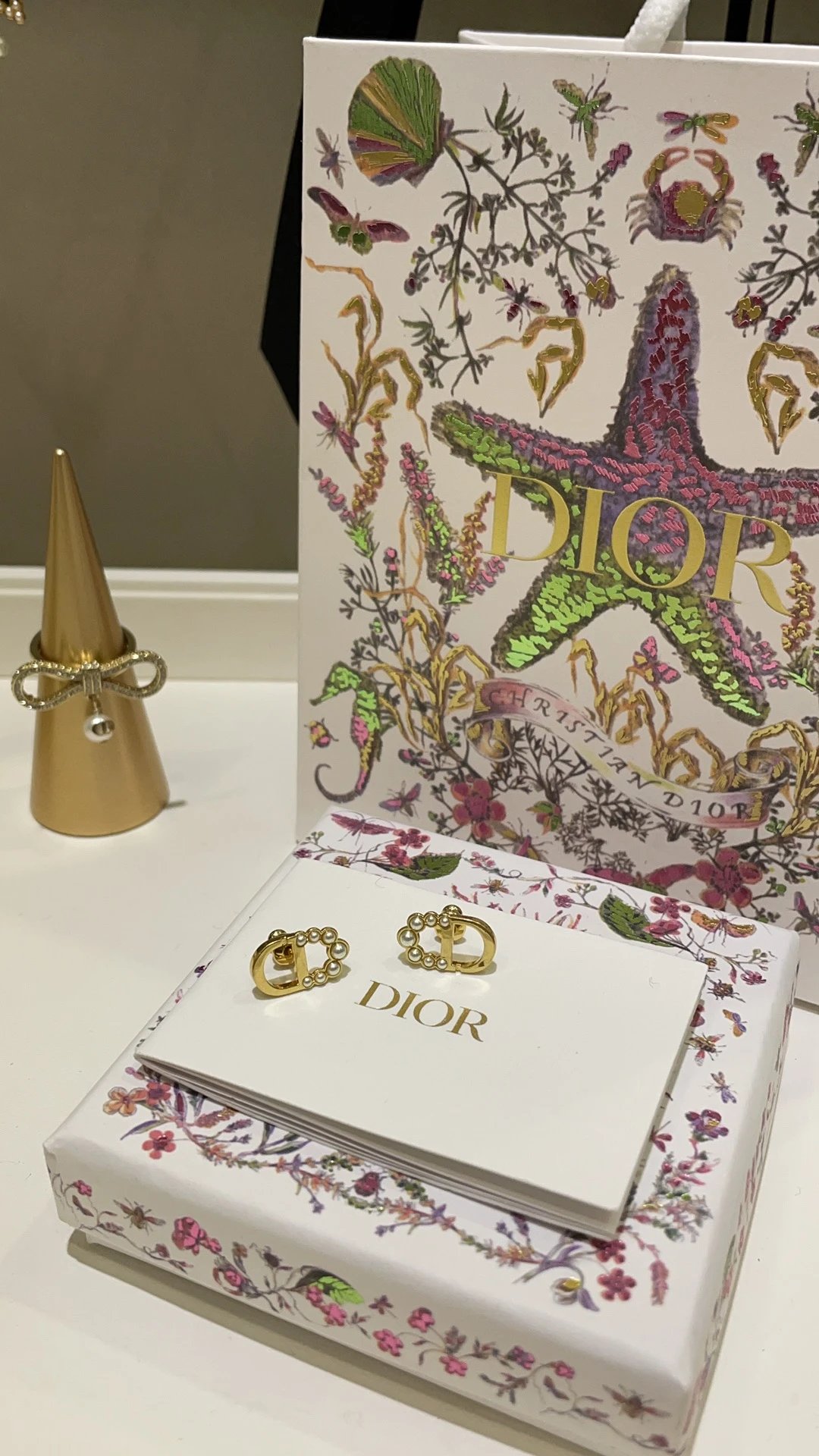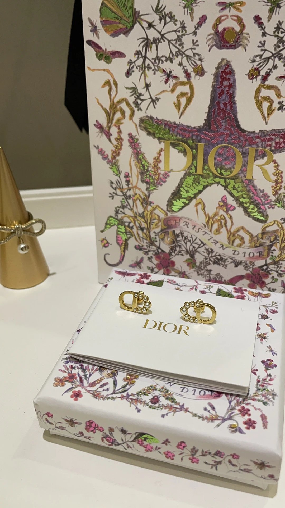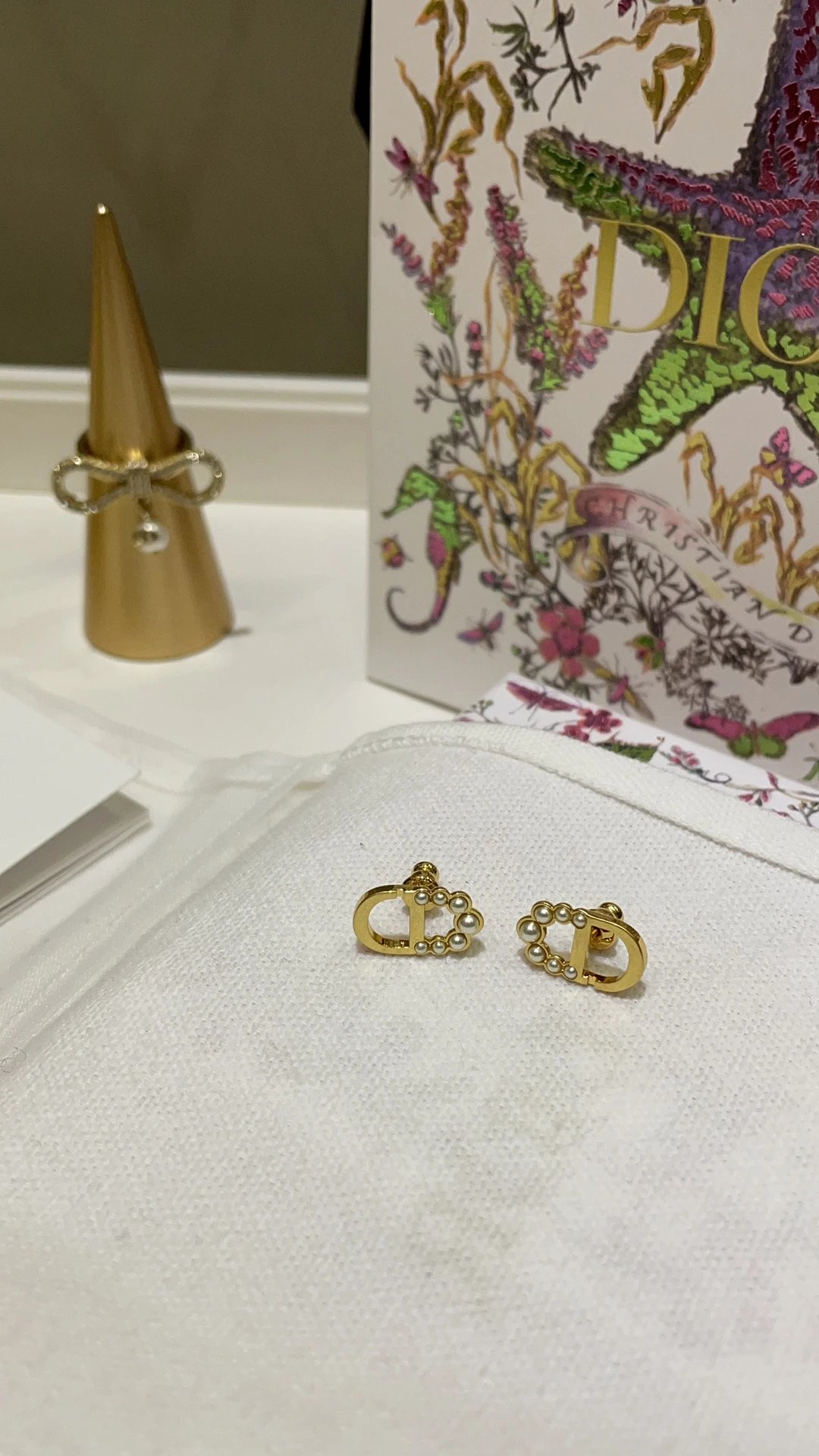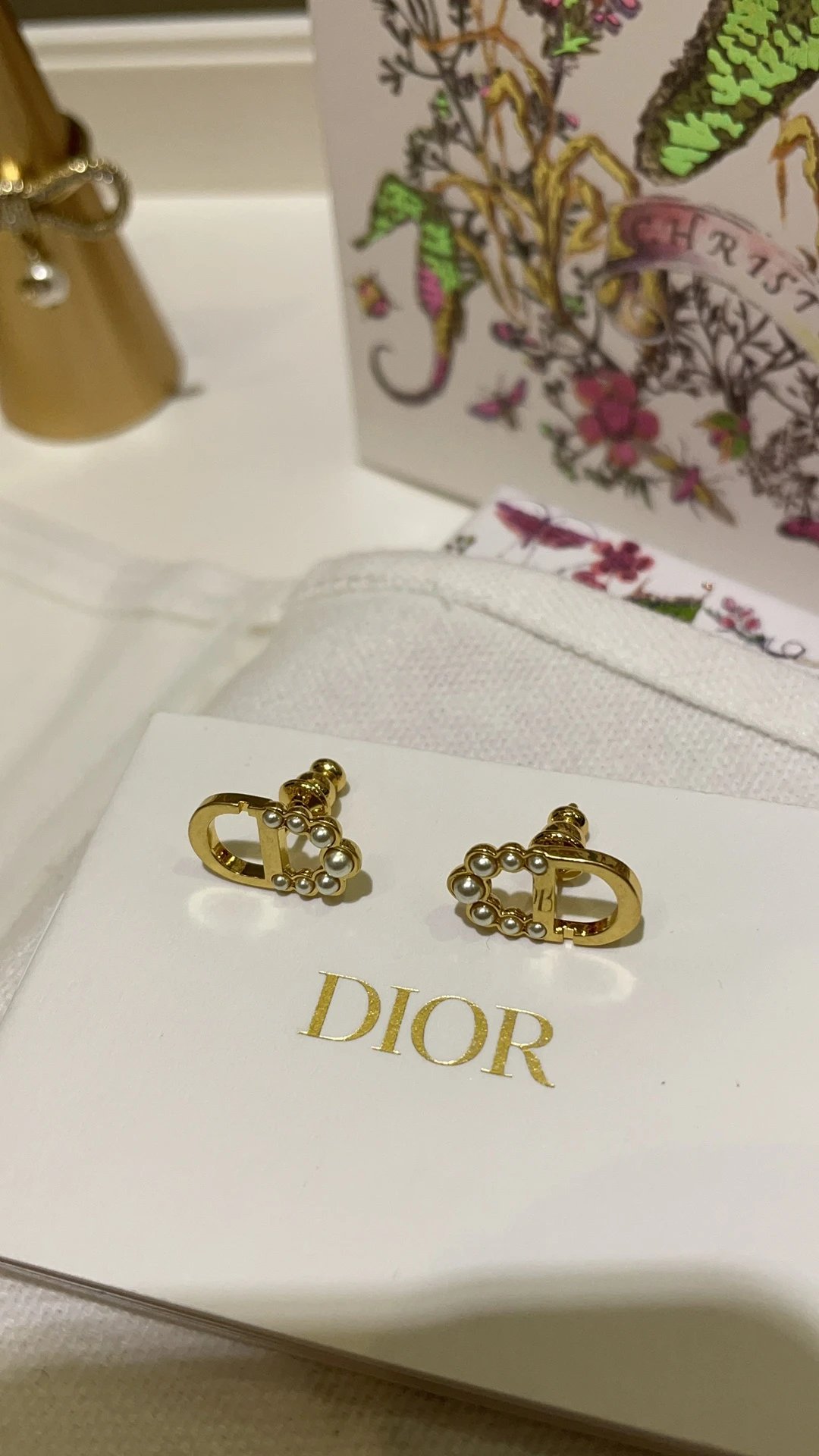 Dior 2025 New Basic Gold CD Mini Bead Stud Earrings feature a classic design.