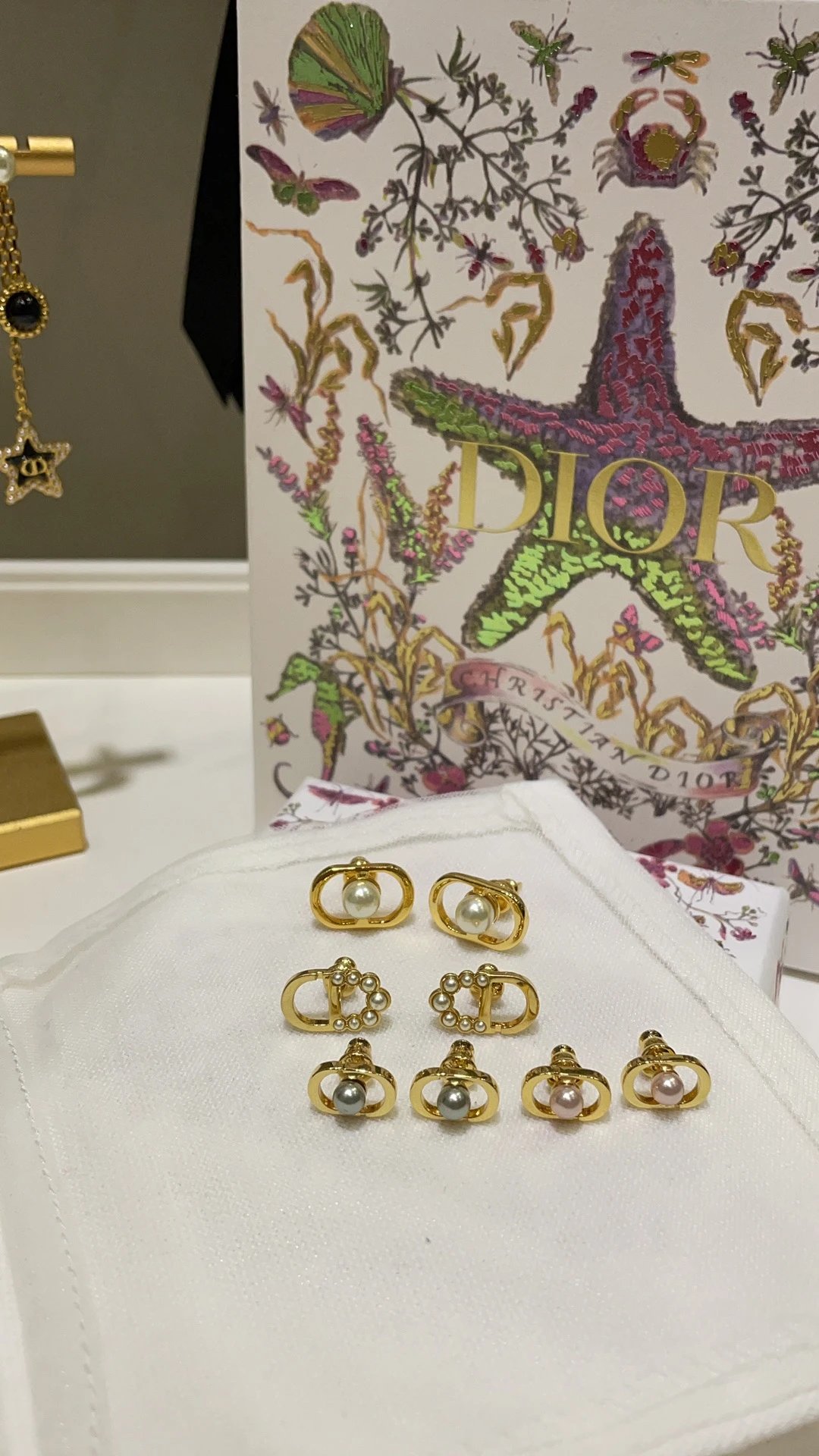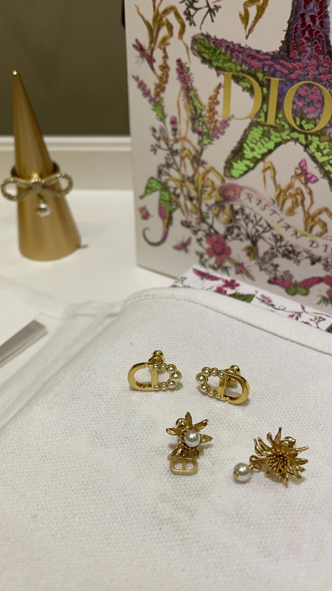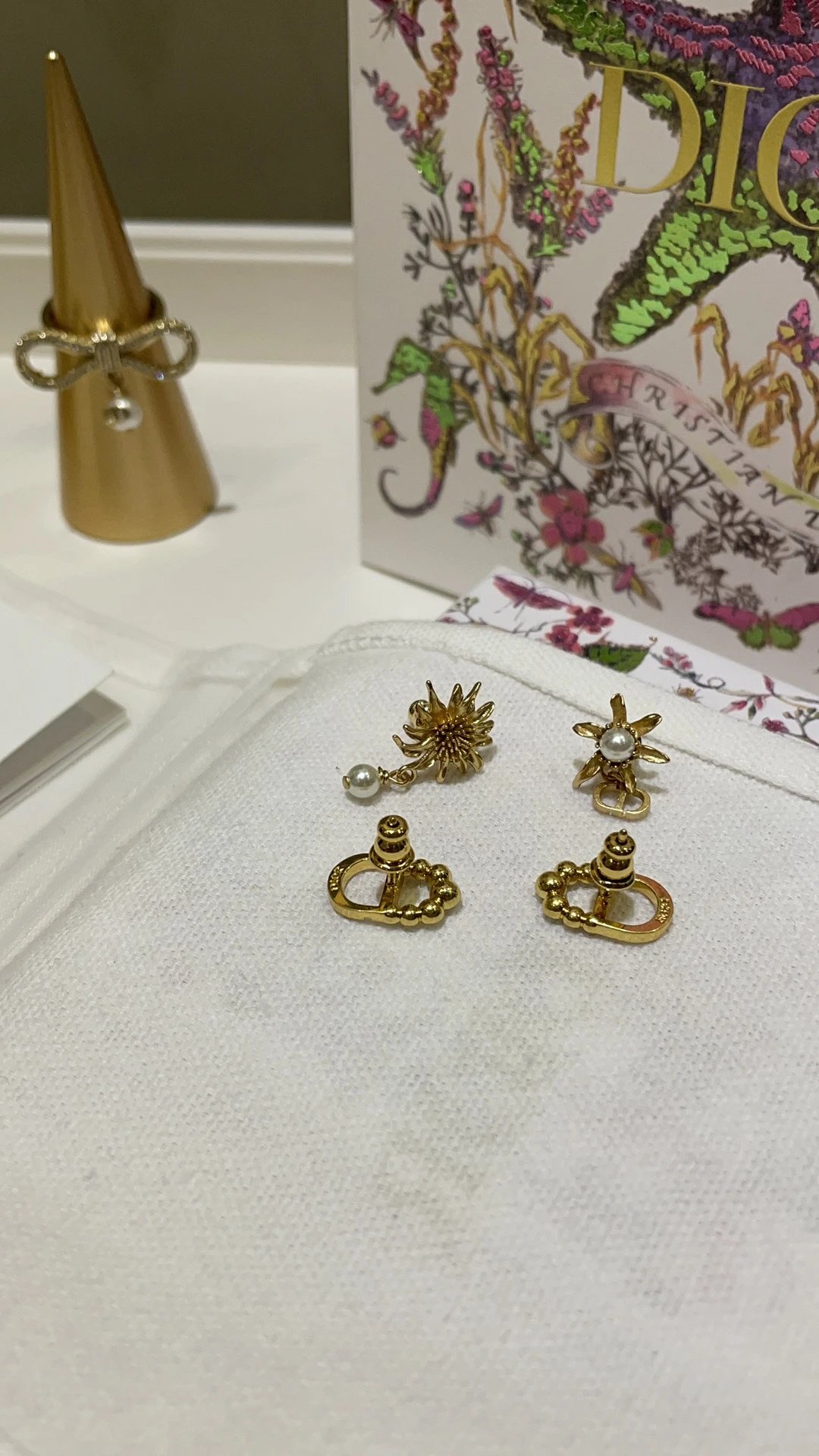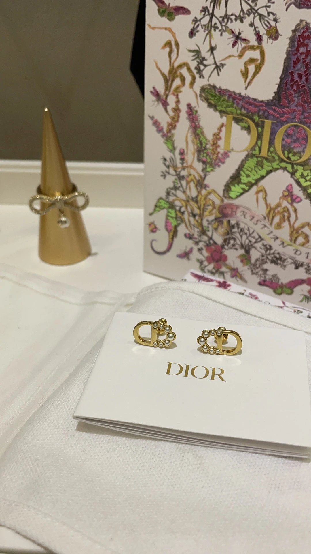 Dior 2025 New Basic Gold CD Mini Bead Stud Earrings feature a classic design.