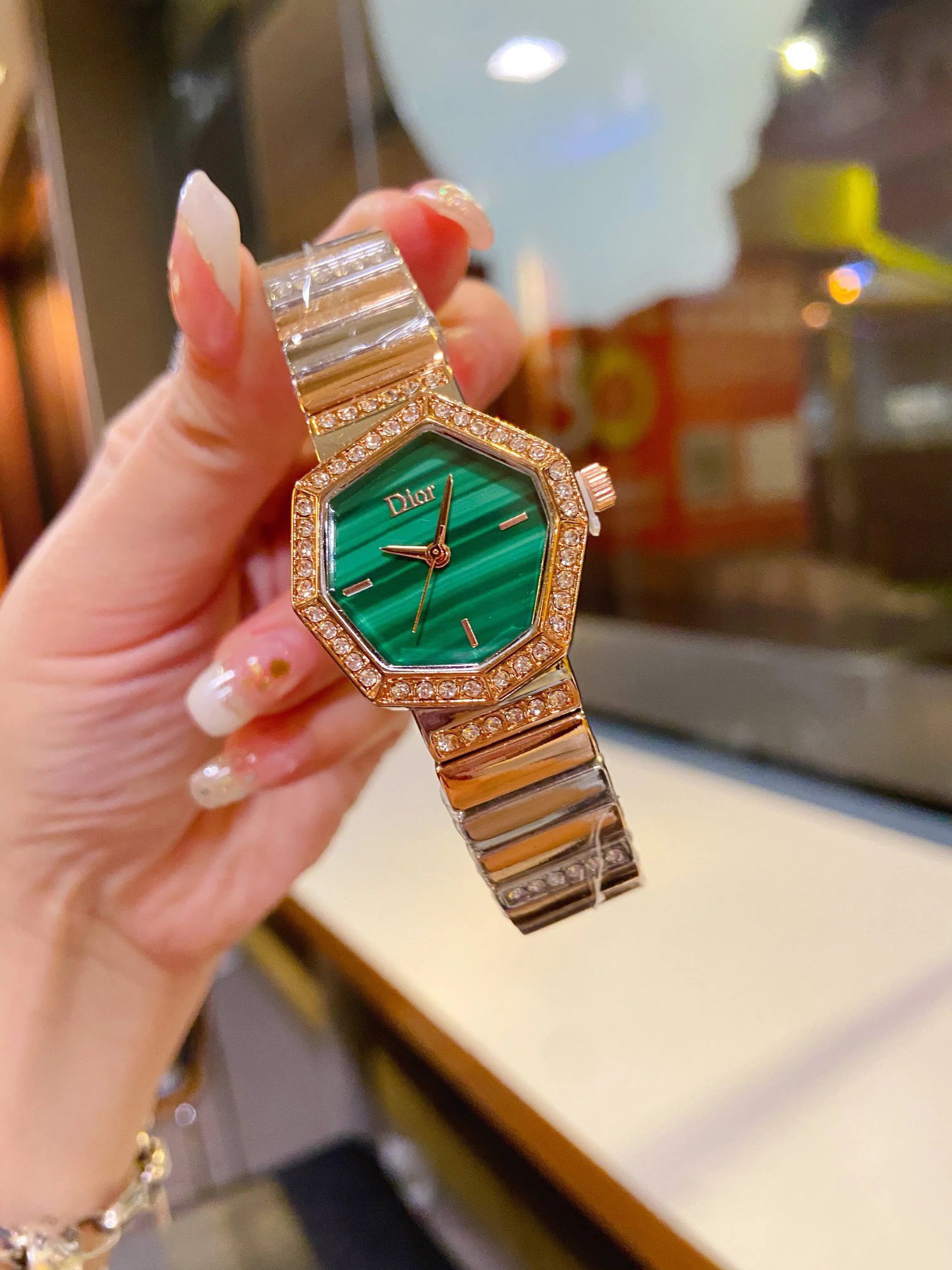 Dior’s new collection watch showcases an irregular case shaped like tourmaline crystal sections.