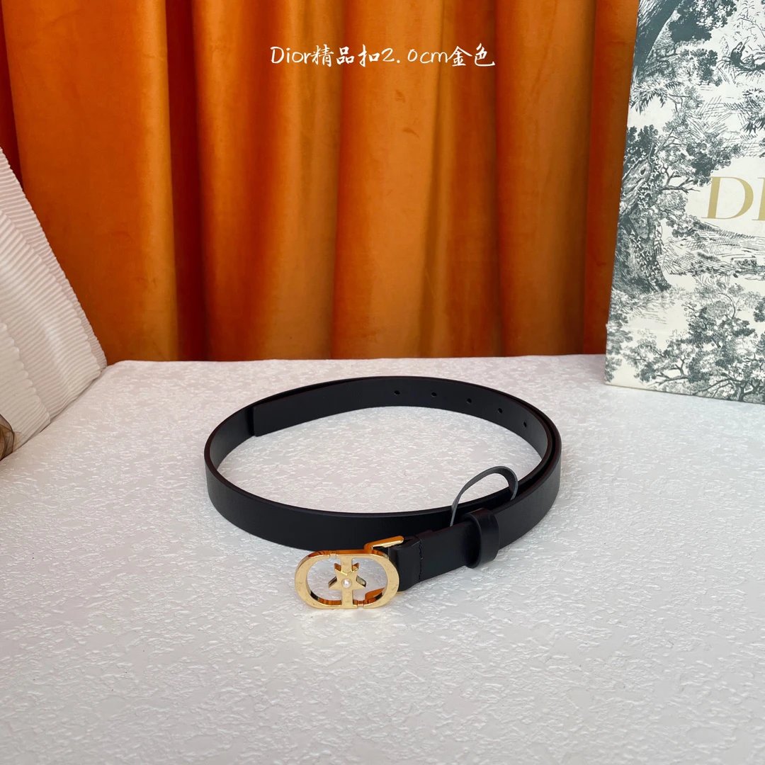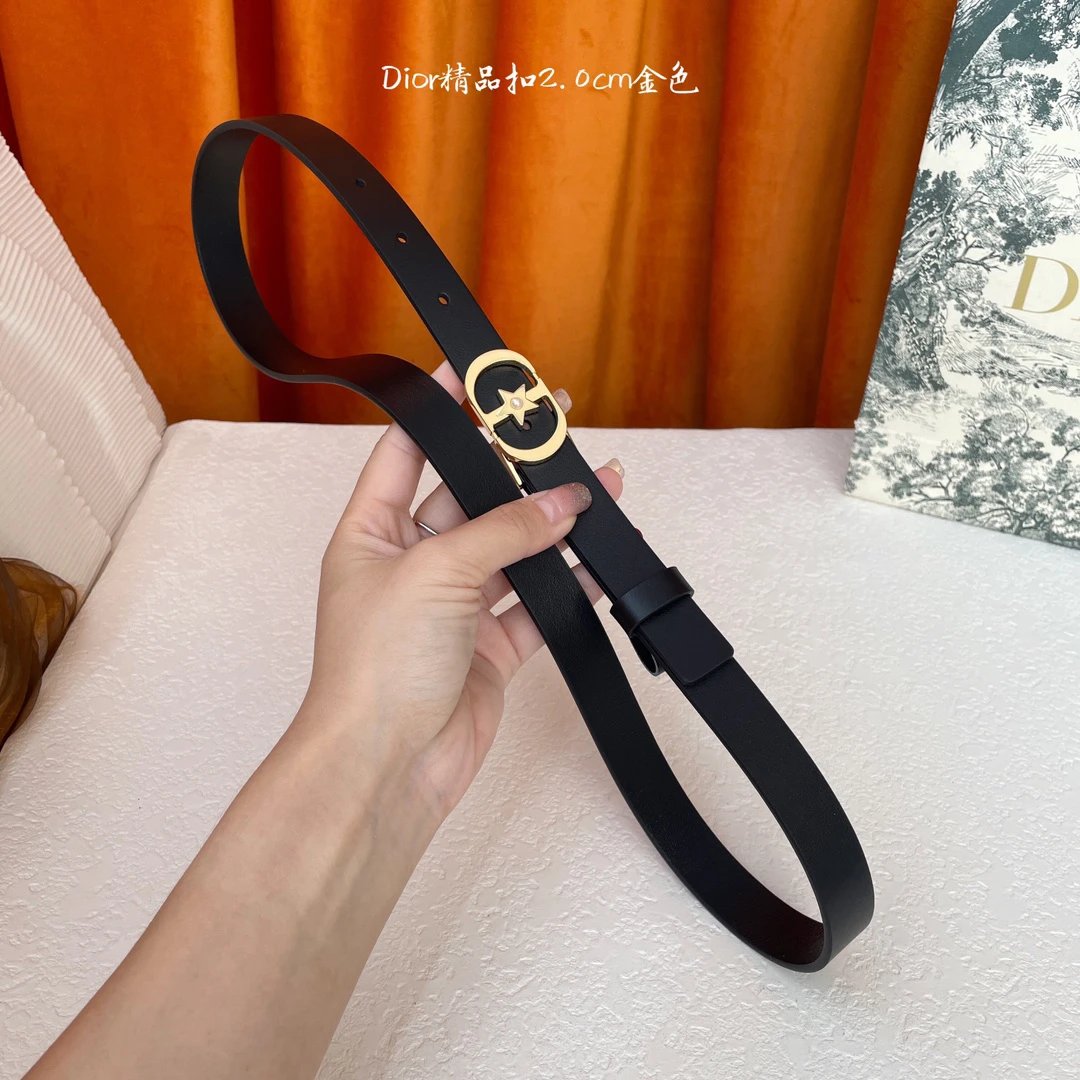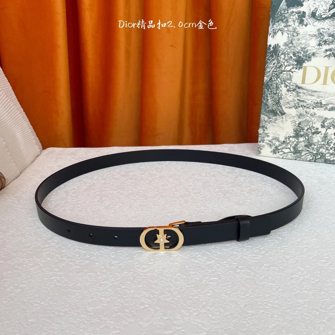 Dior New Belt uses full-grain leather for soft, comfortable touch. Exquisite star pearl buckle adds elegance, 2.0cm width.
