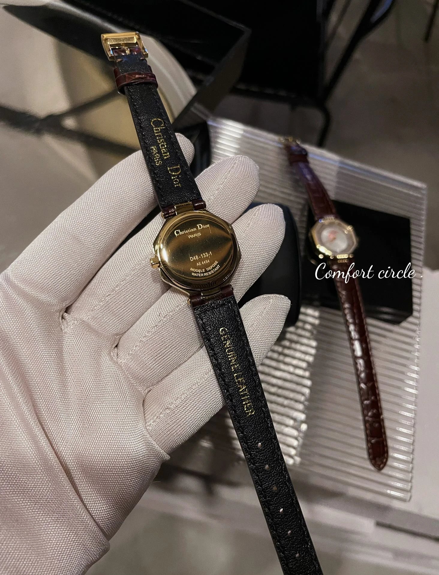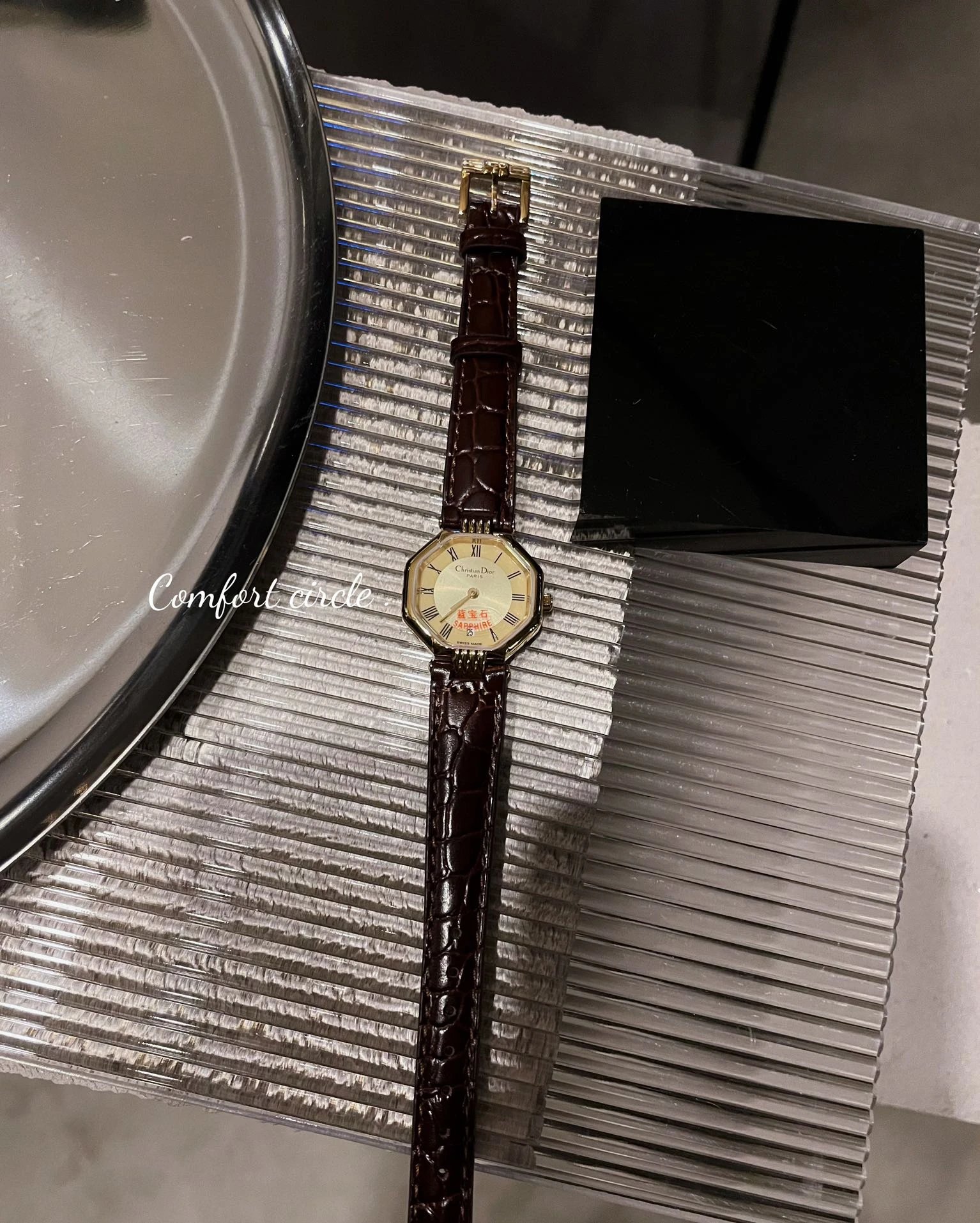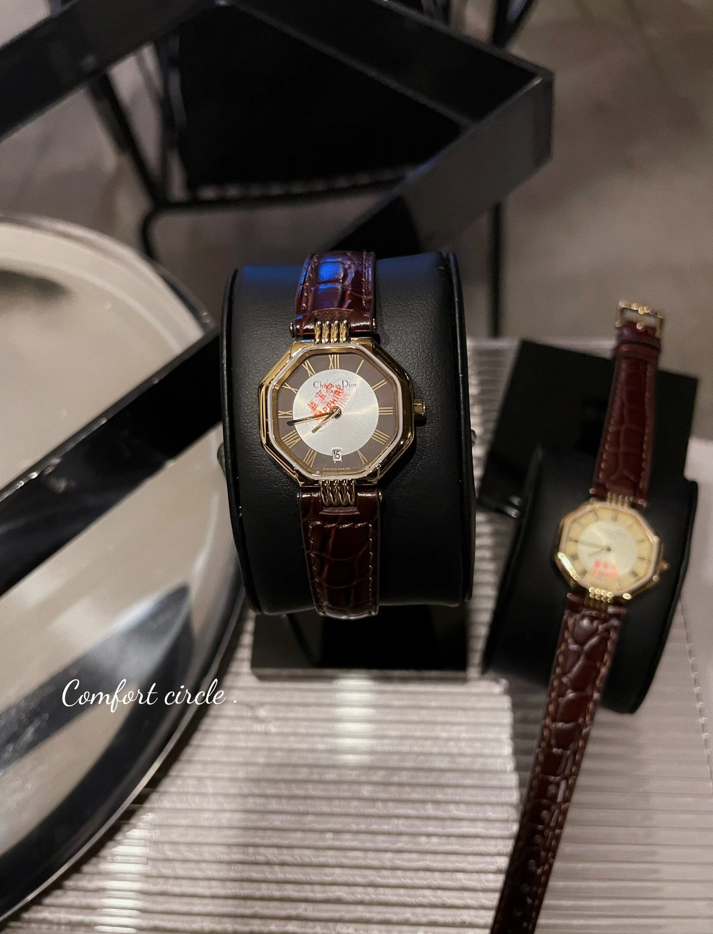 Dior CD Calendar Style Vintage Watch has unique octagonal shape, gray-white dial & retro textured strap (no collision worries).