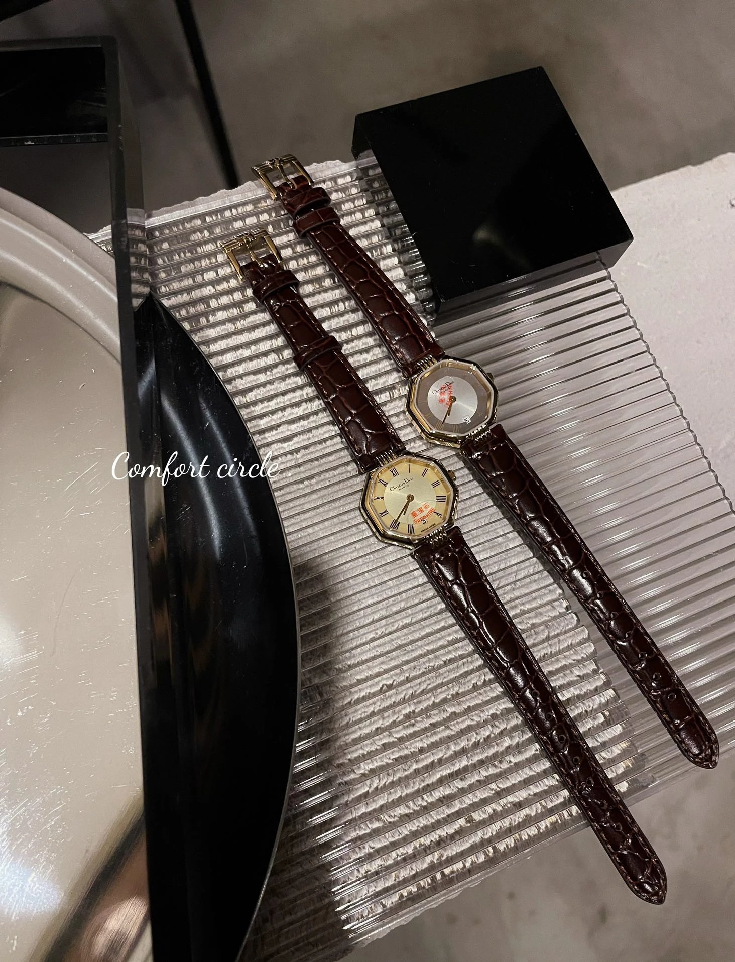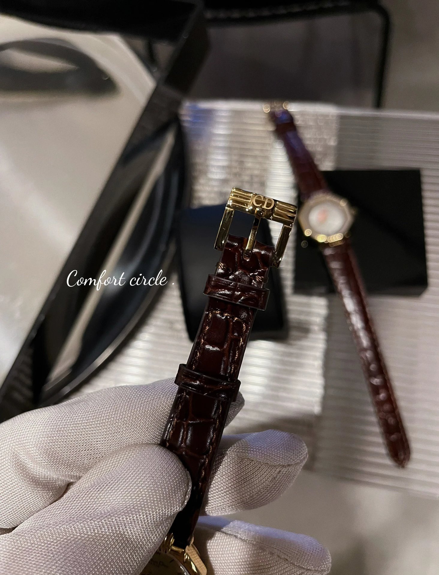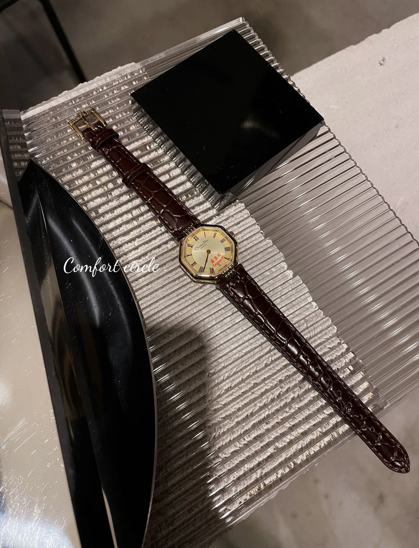 Dior CD Calendar Style Vintage Watch has unique octagonal shape, gray-white dial & retro textured strap (no collision worries).