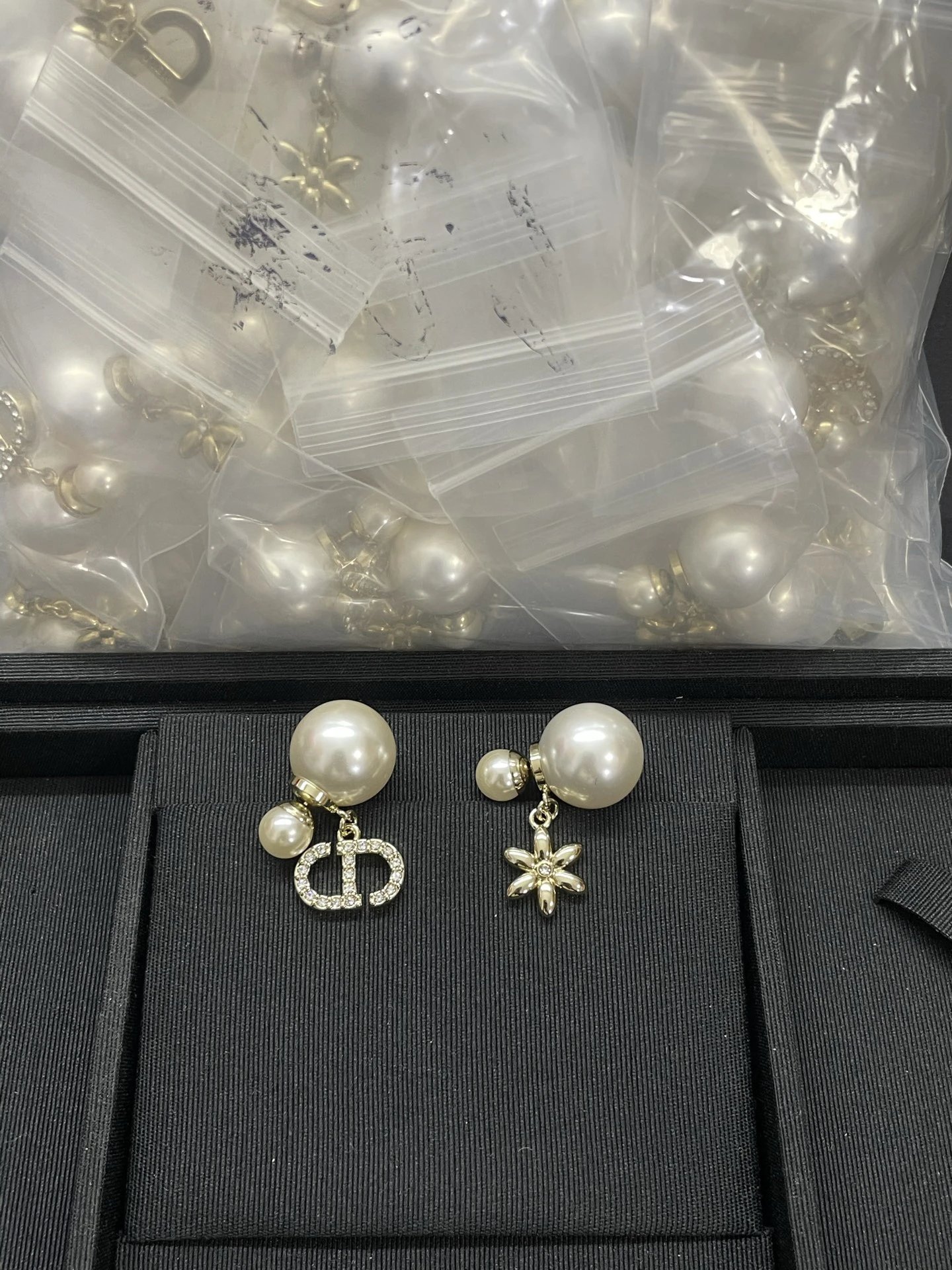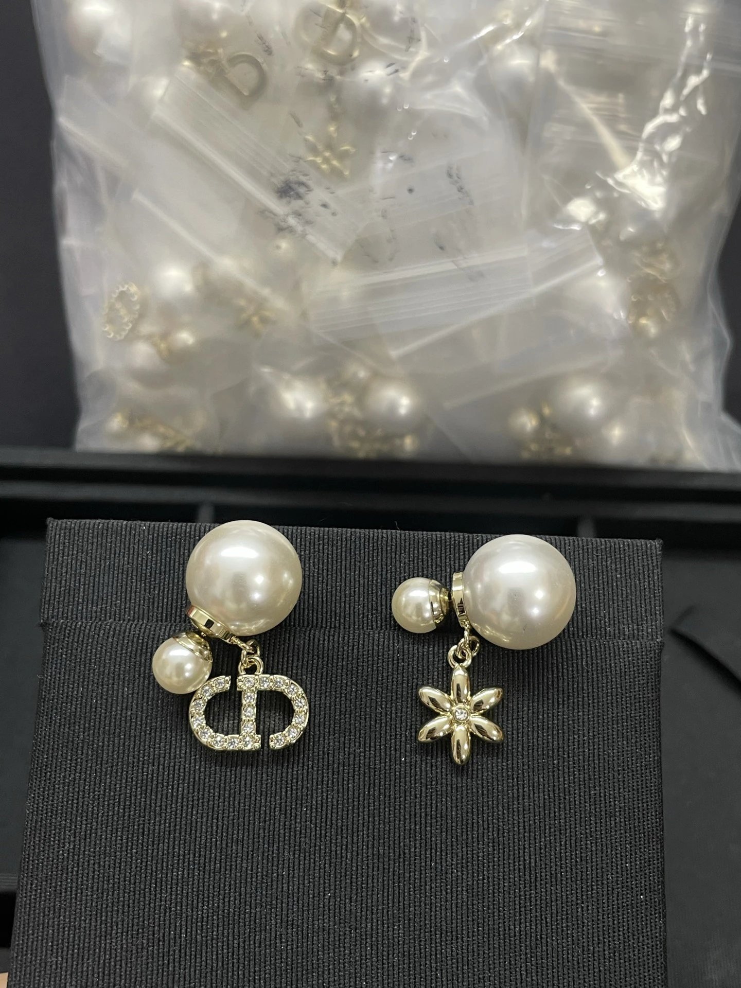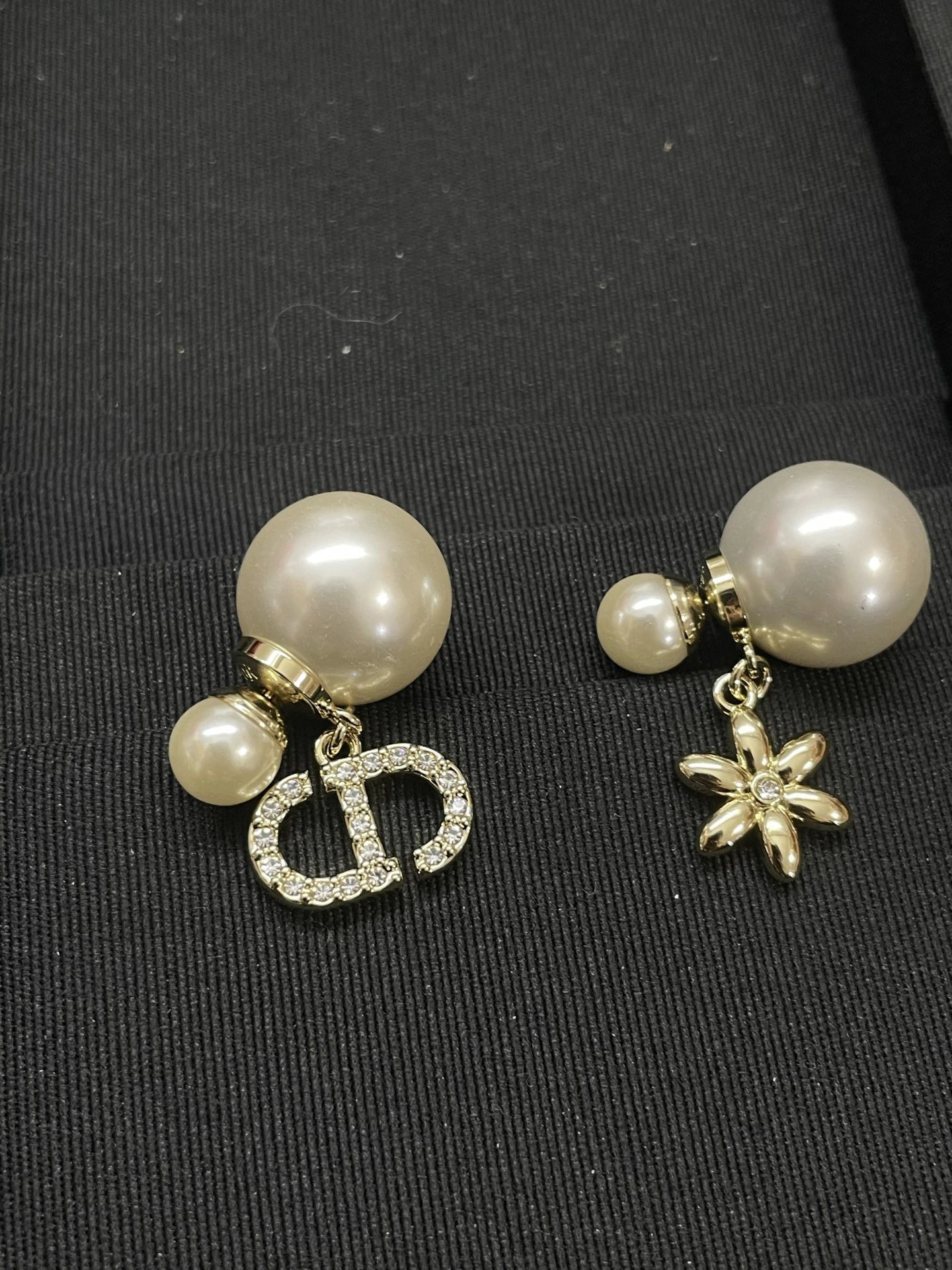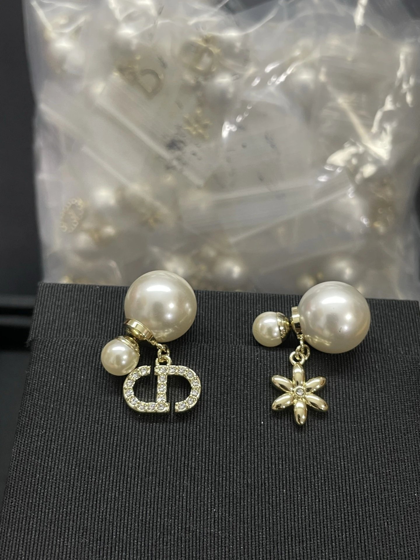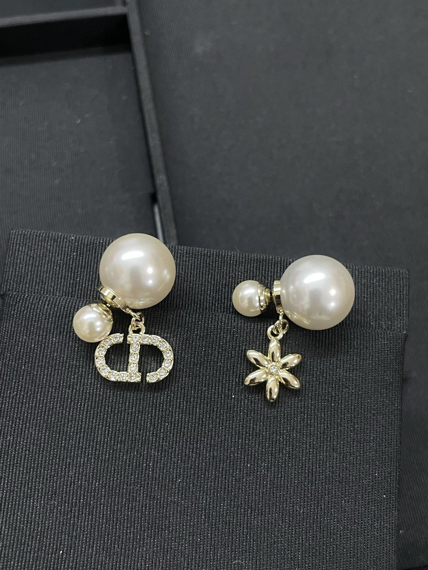 Dior CD Full Diamond Sunflower Asymmetric Earrings feature sparkling full diamonds and a unique sunflower asymmetric design.