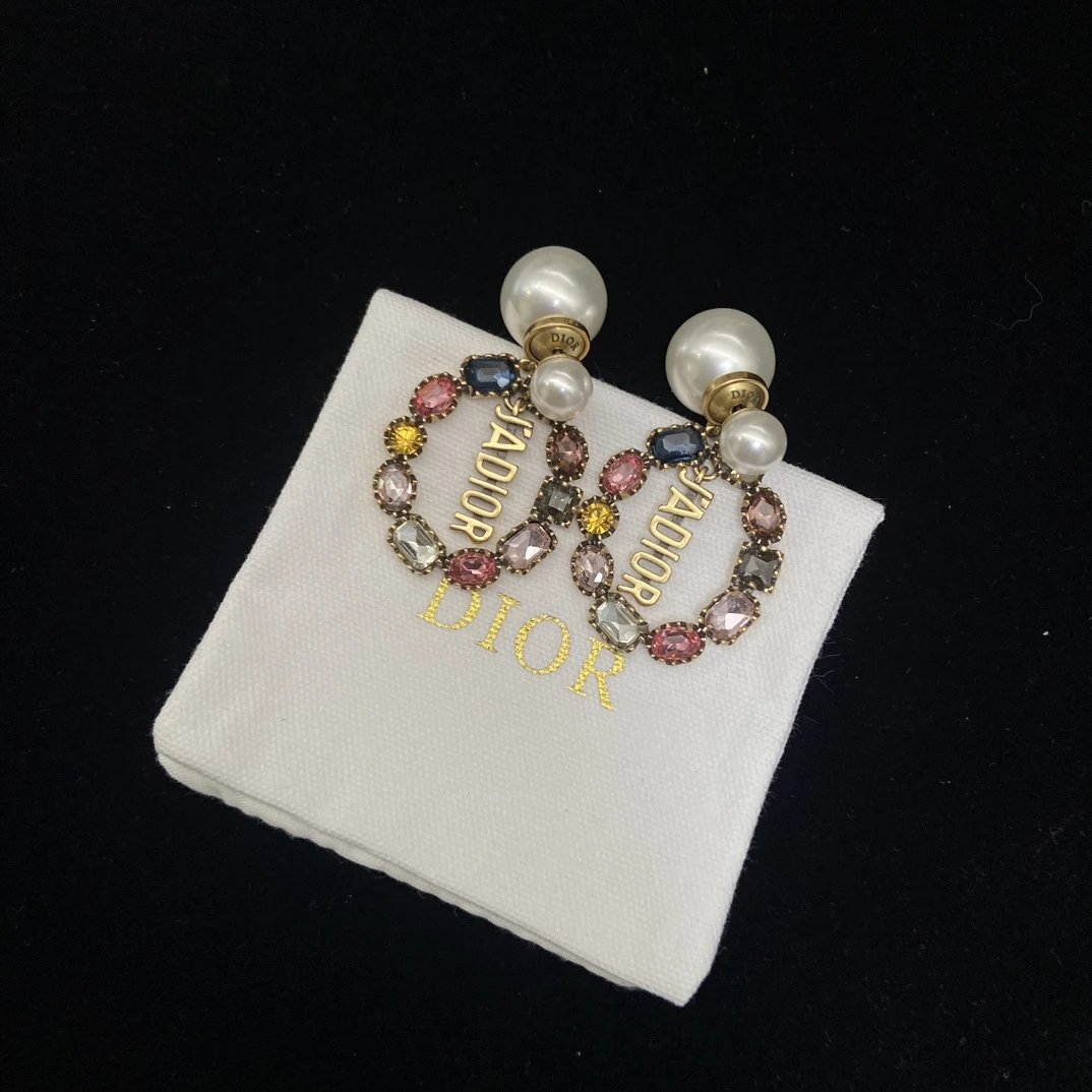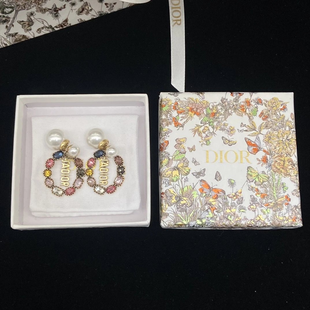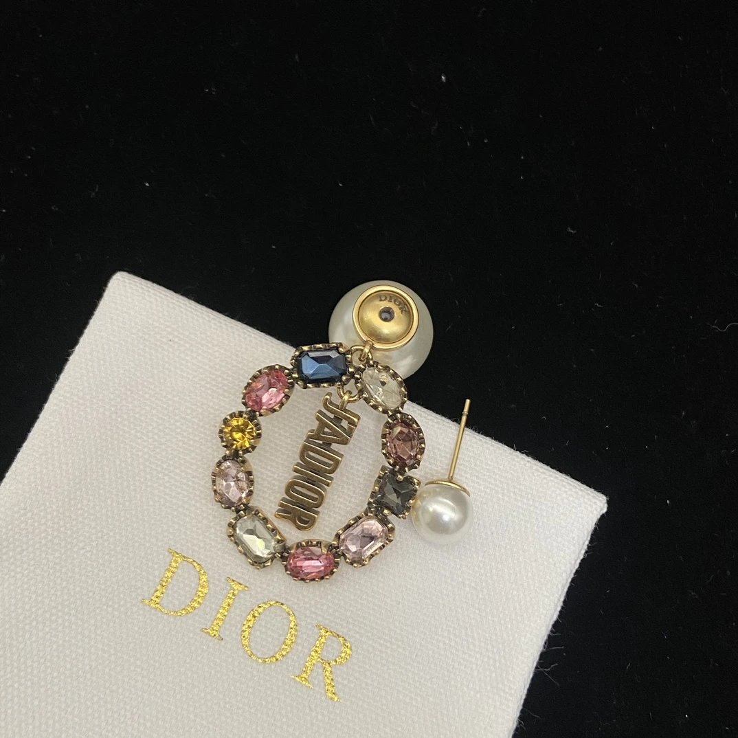 Dior Classic Double Bead Colored Diamond Earrings feature a timeless double-bead design with sparkling colored diamonds.