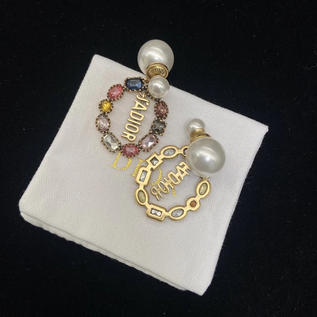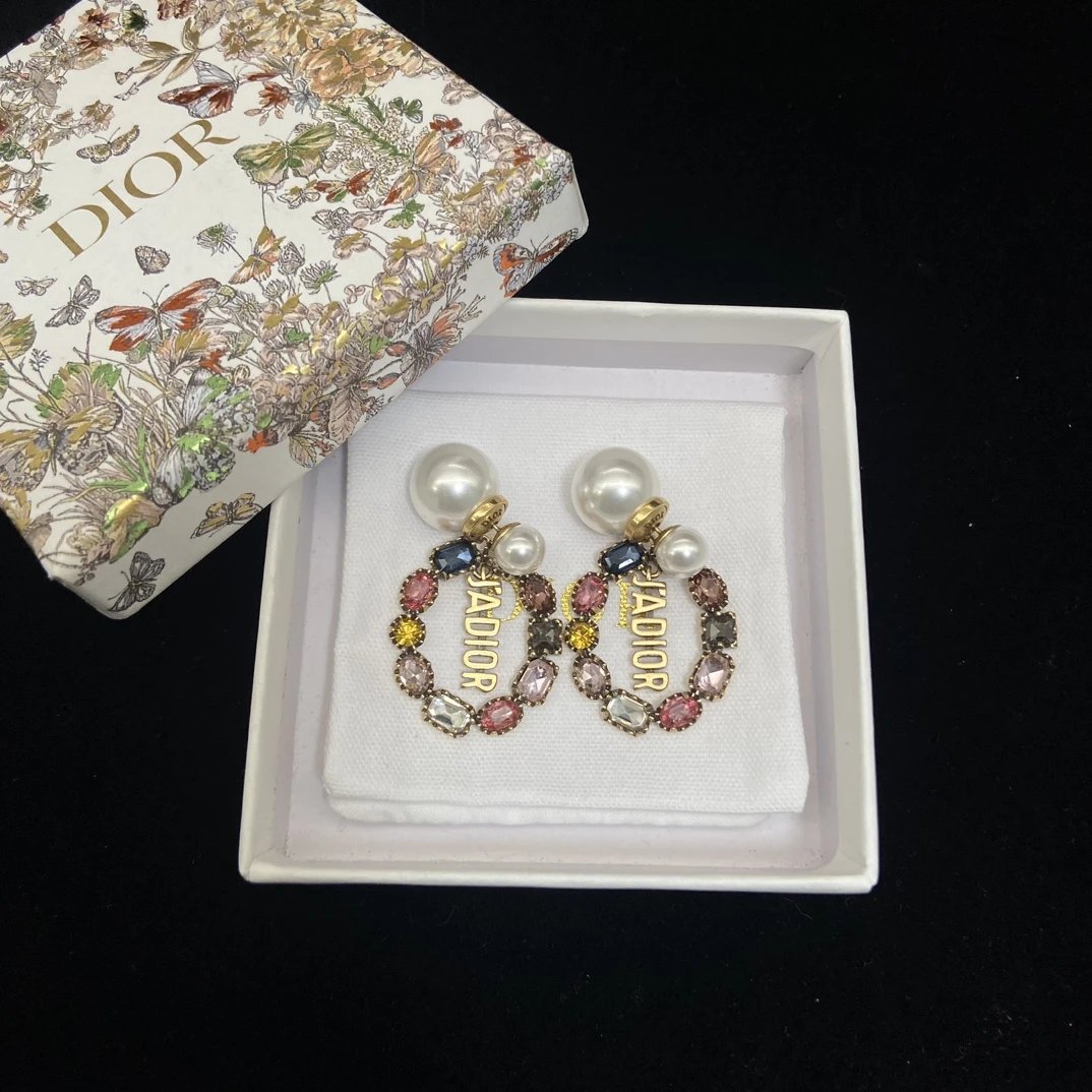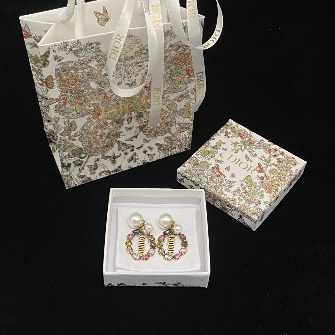 Dior Classic Double Bead Colored Diamond Earrings feature a timeless double-bead design with sparkling colored diamonds.