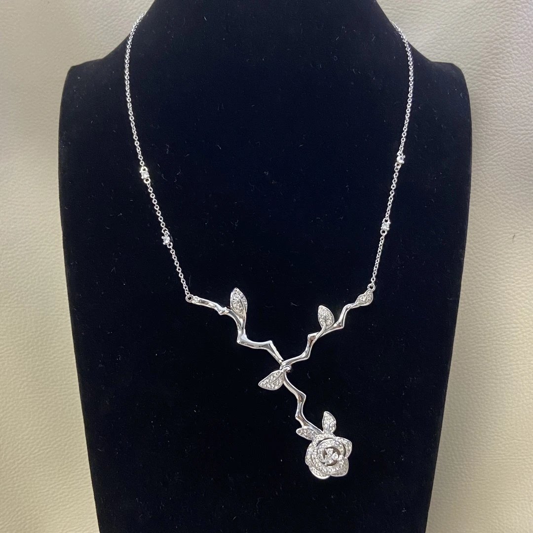 Dior New Rose Pendant Necklace (Model EGM26055) features exquisite rose design, perfect for elegant accessorizing.