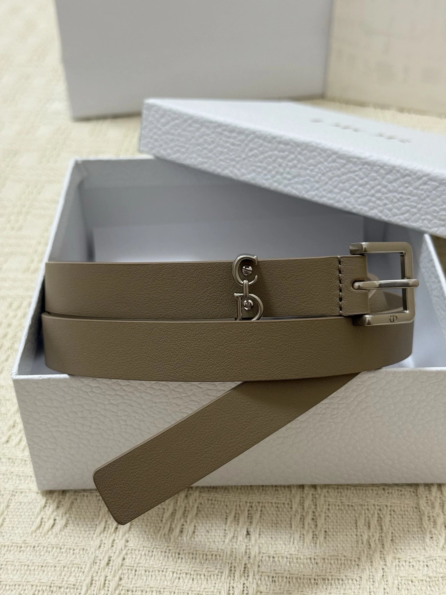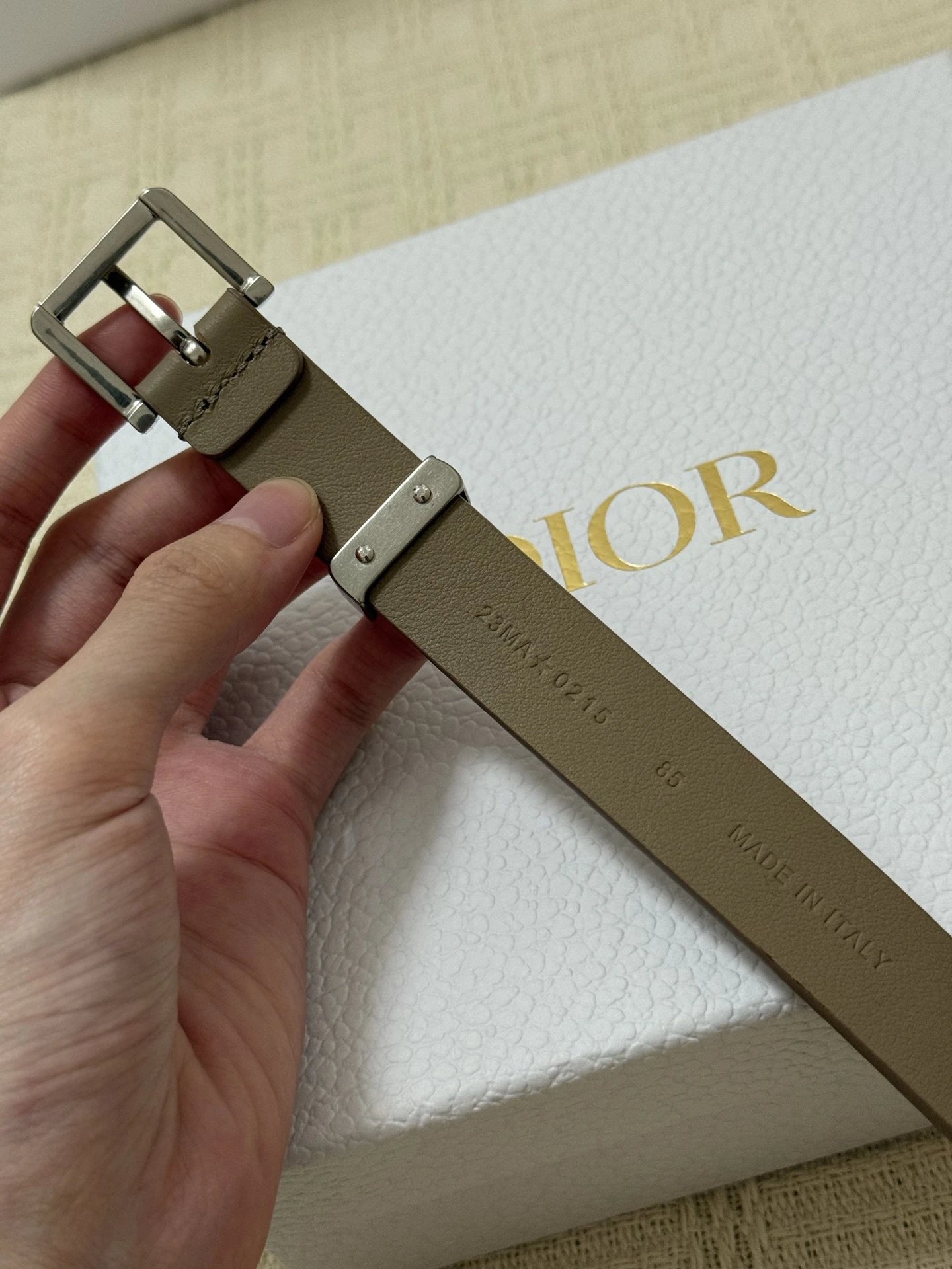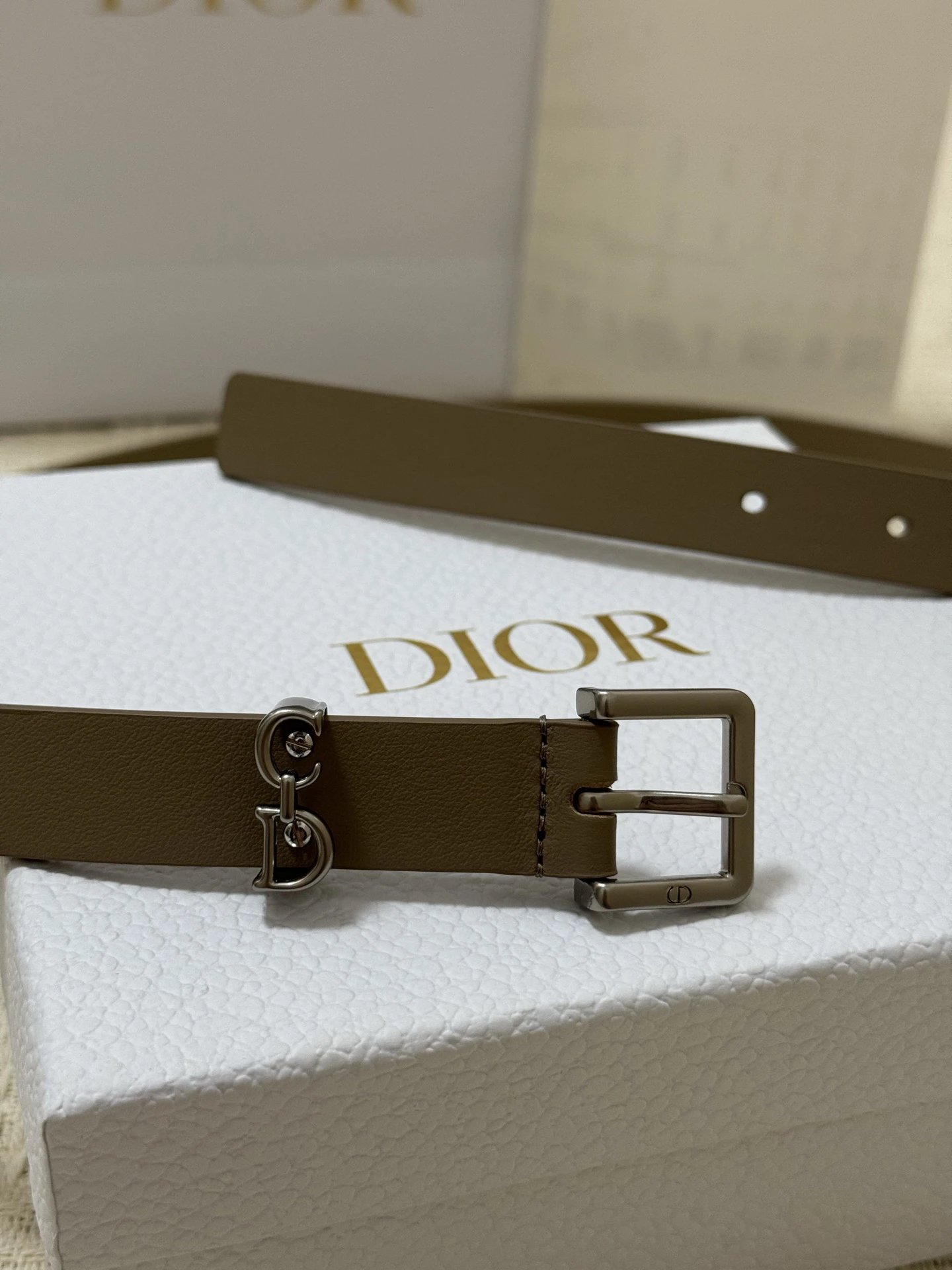 Dior New Belt features smooth cowhide leather and a shiny metal Dior buckle for elevated style.