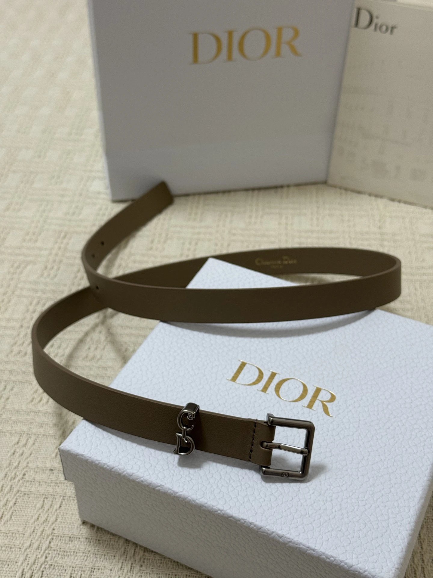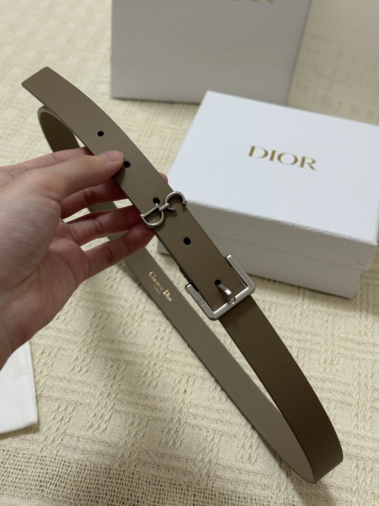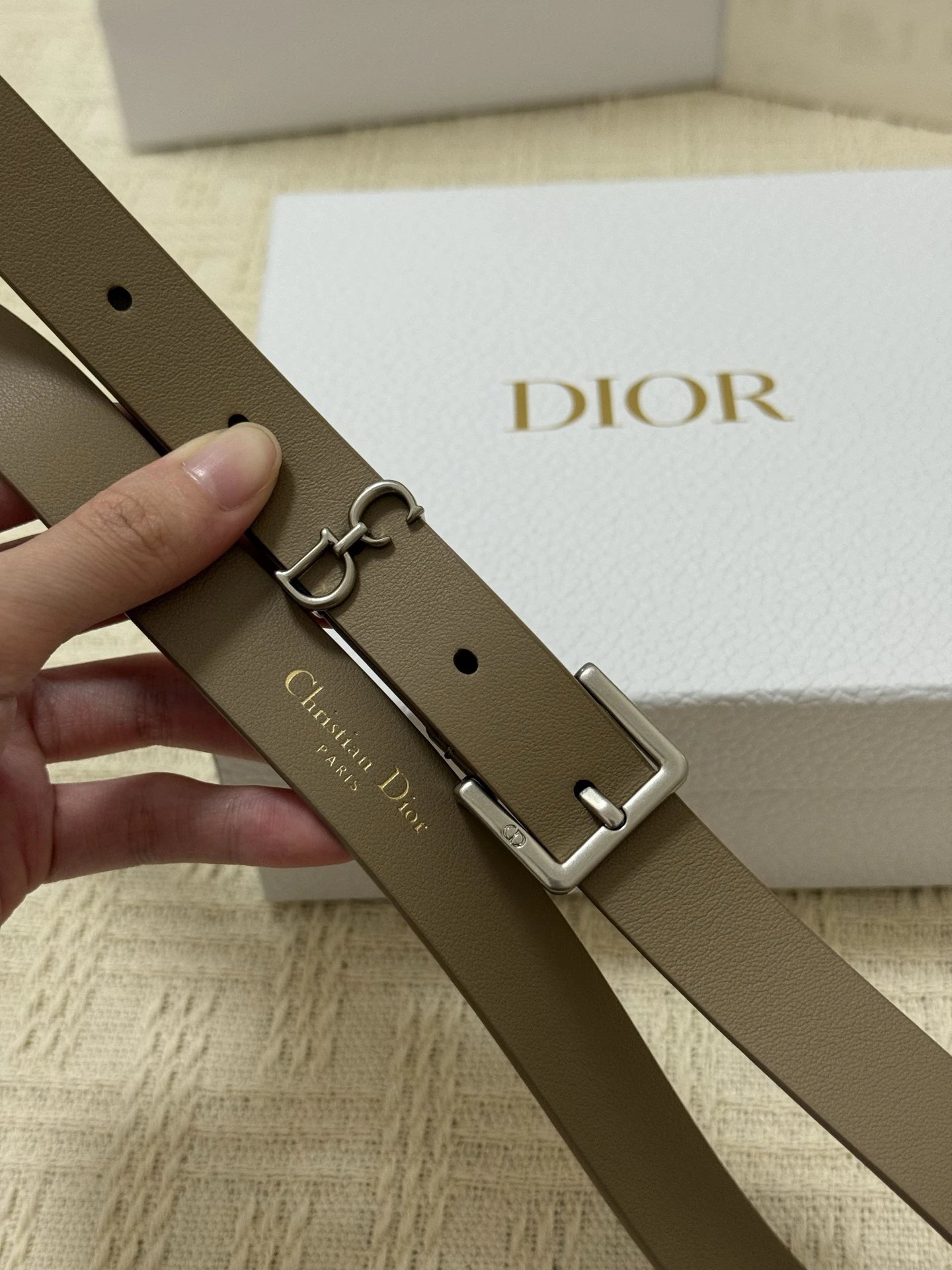 Dior New Belt features smooth cowhide leather and a shiny metal Dior buckle for elevated style.