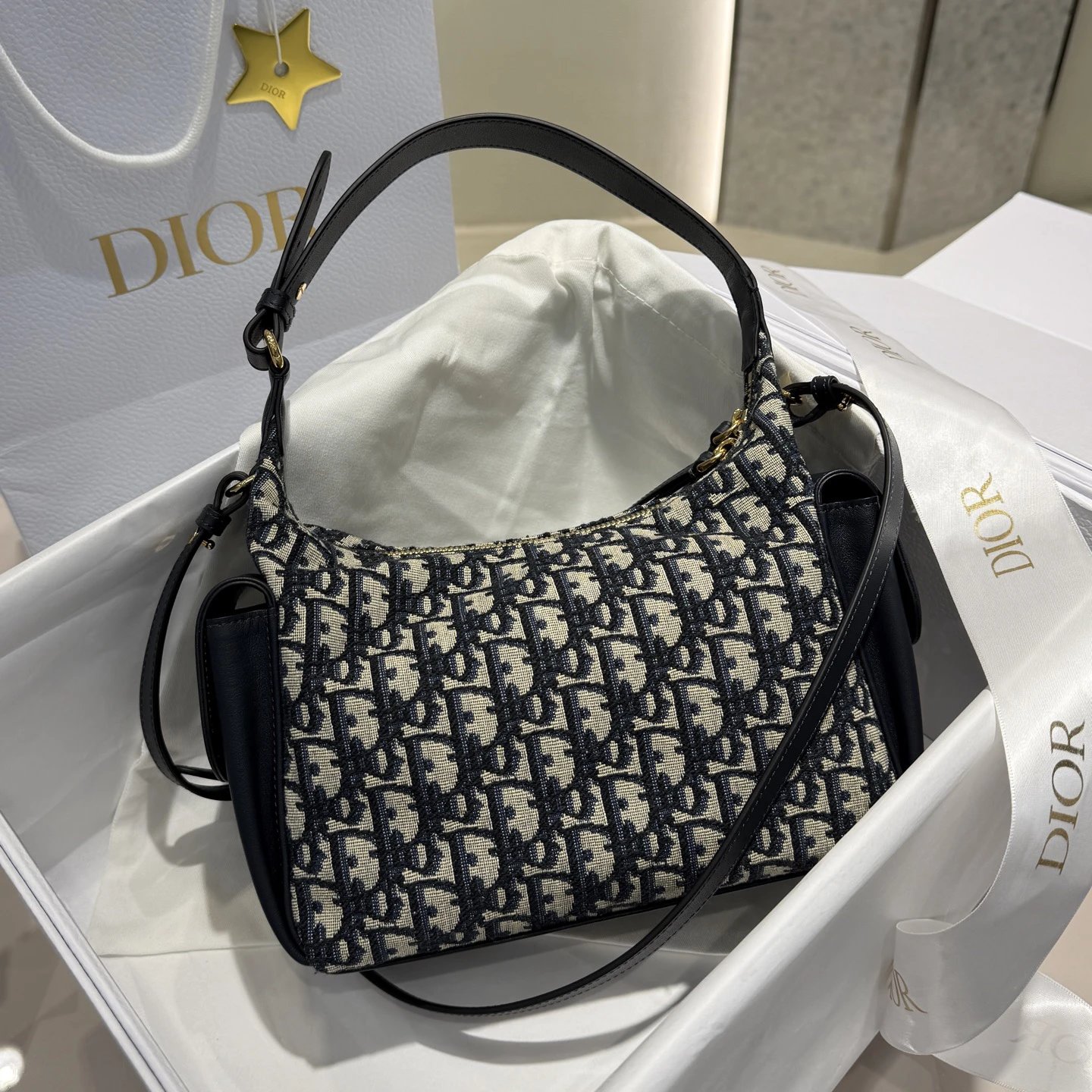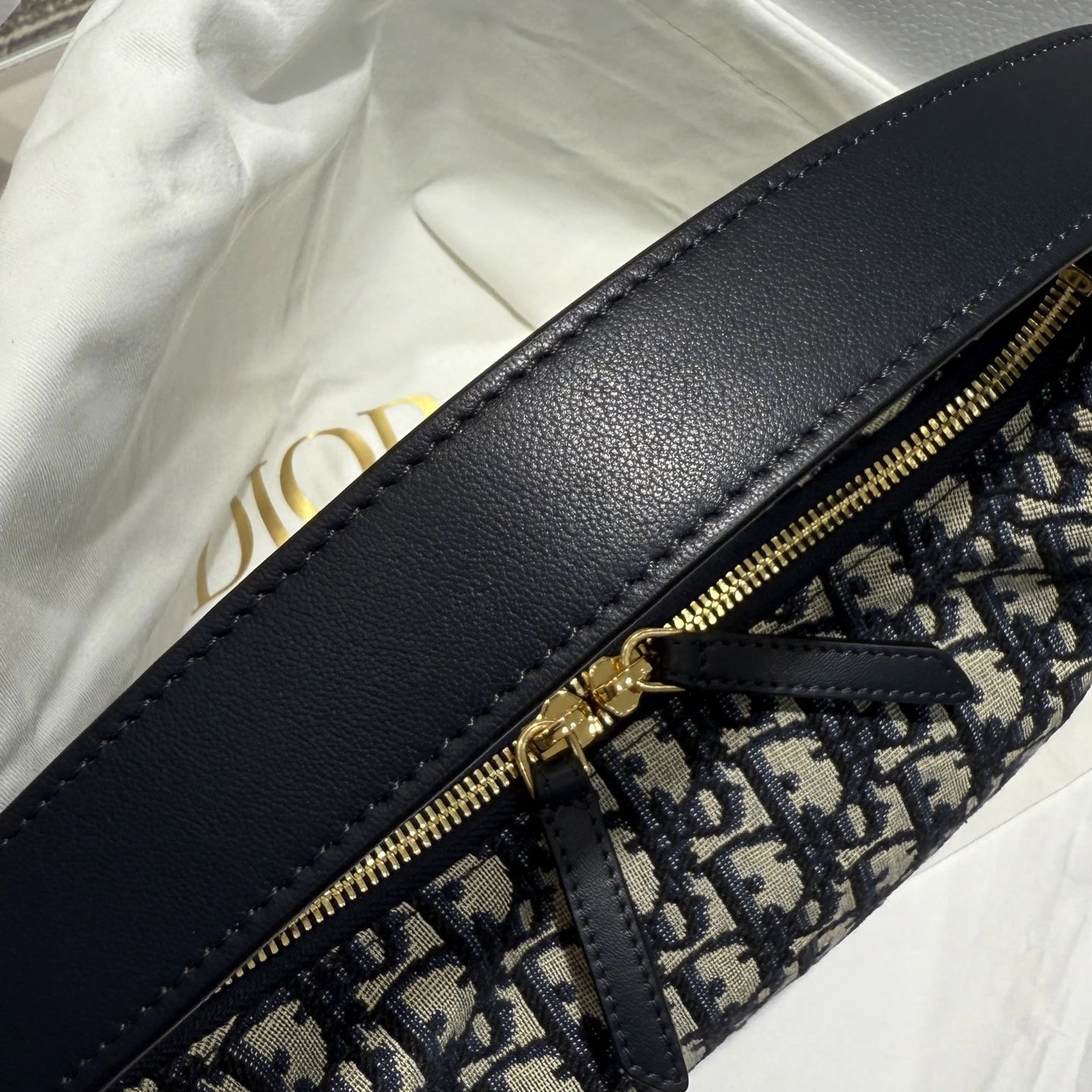 Dior Medium Motorcycle Bag features authentic yarn-embroidered monogram and brass hardware.