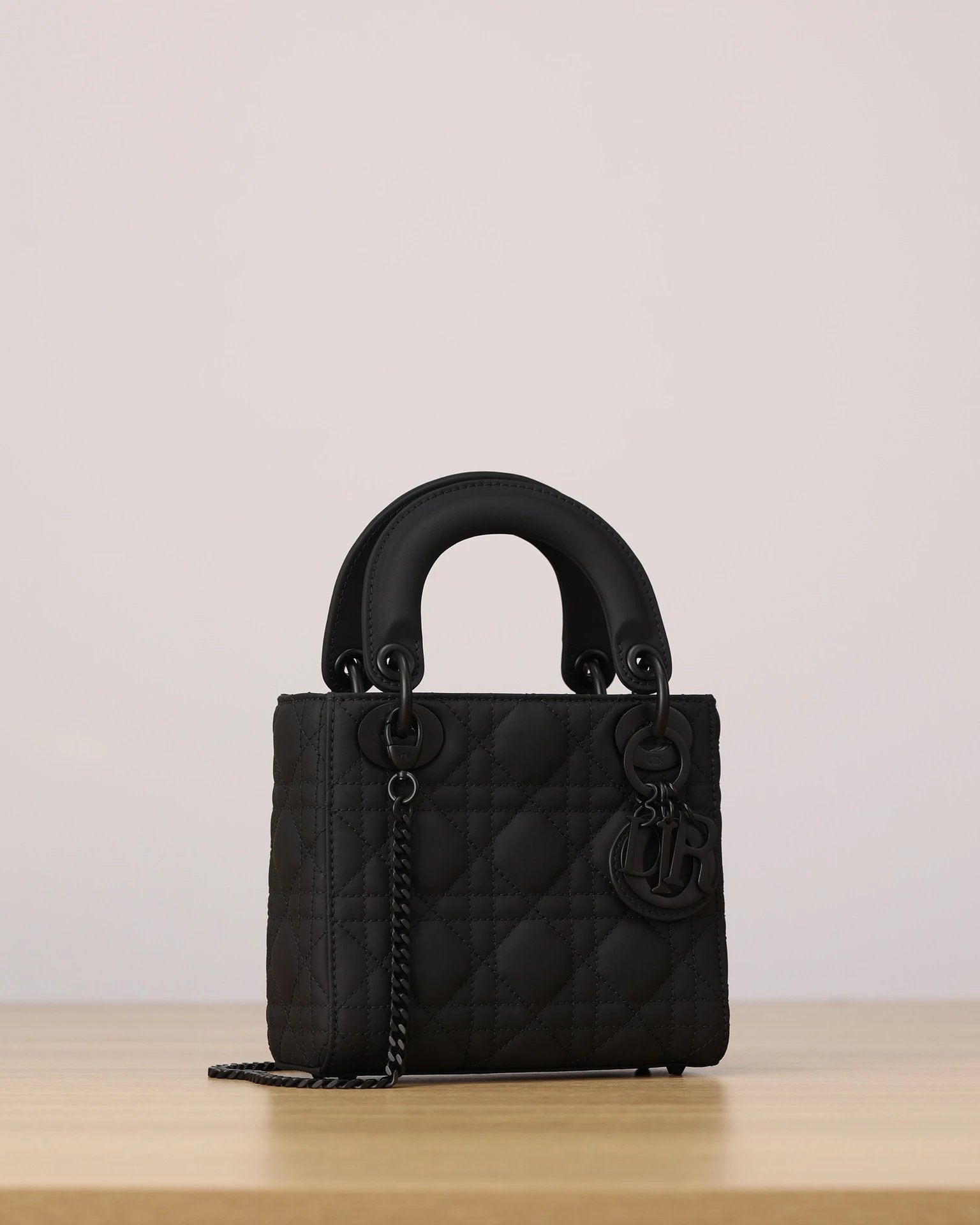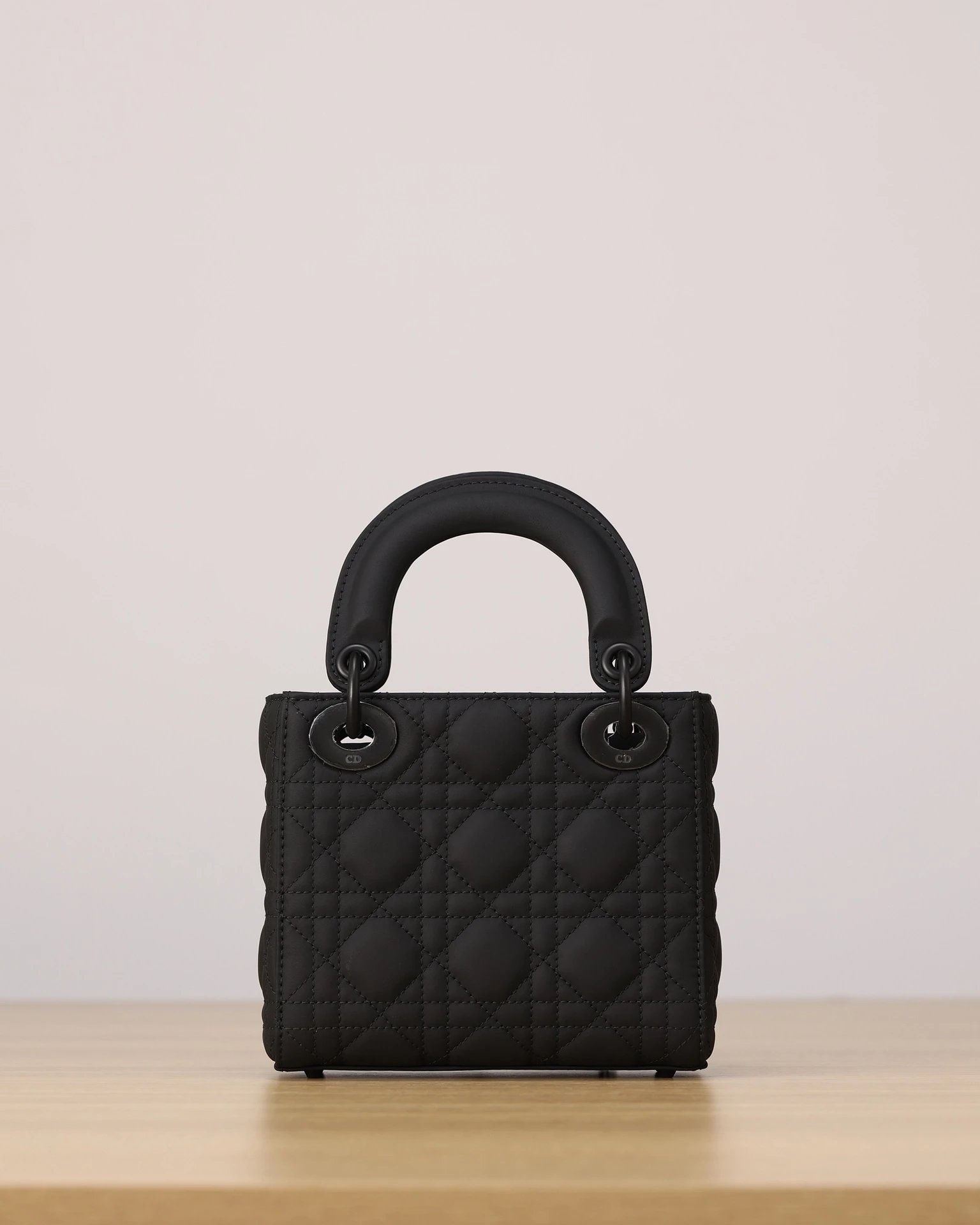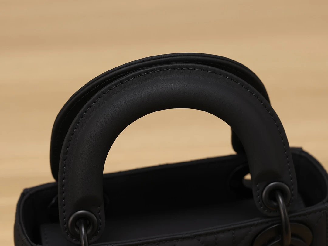 Dior Mini Lady Dior handbag in black matte calfskin with 3-grid cannage.
