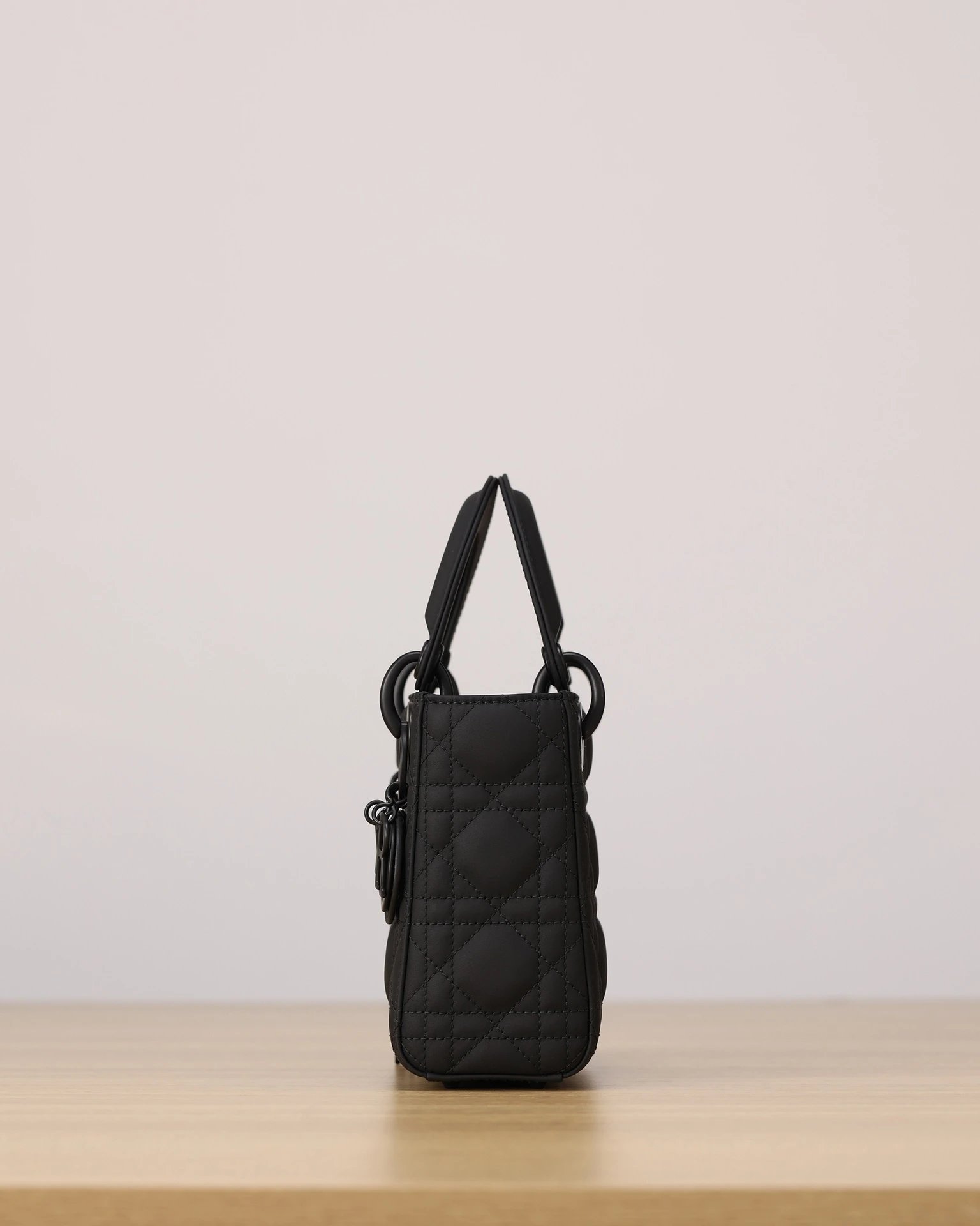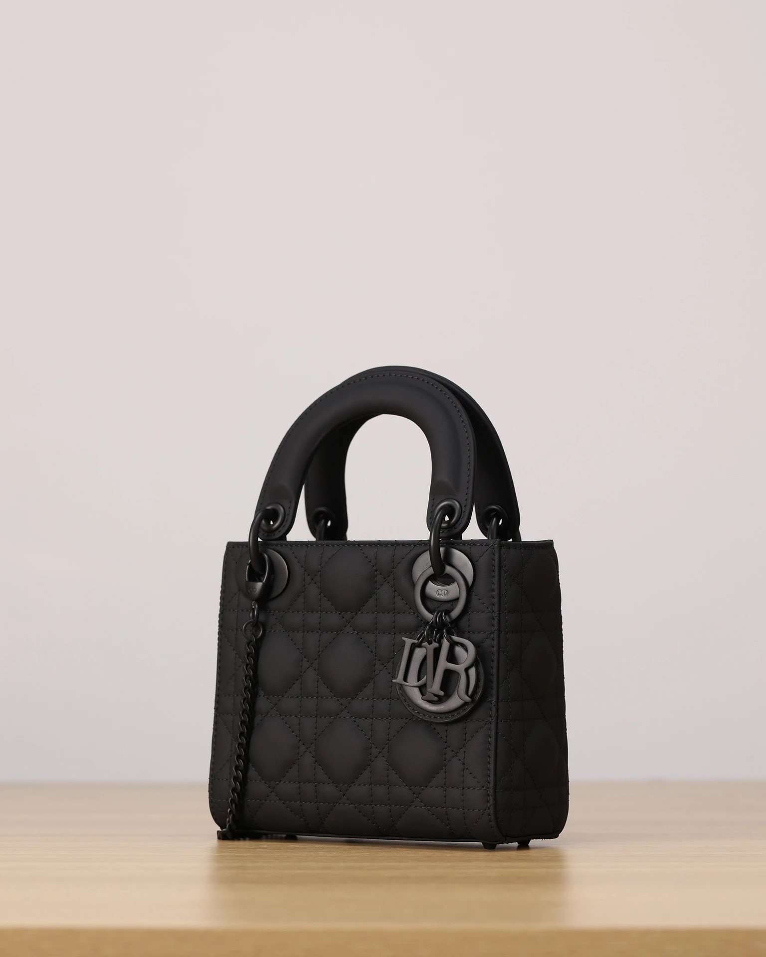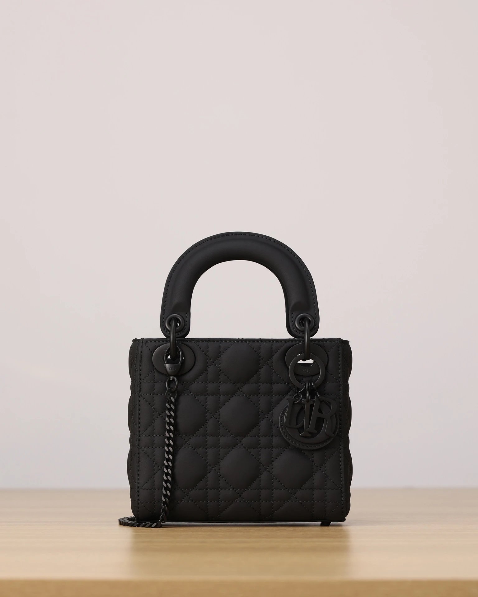 Dior Mini Lady Dior handbag in black matte calfskin with 3-grid cannage.