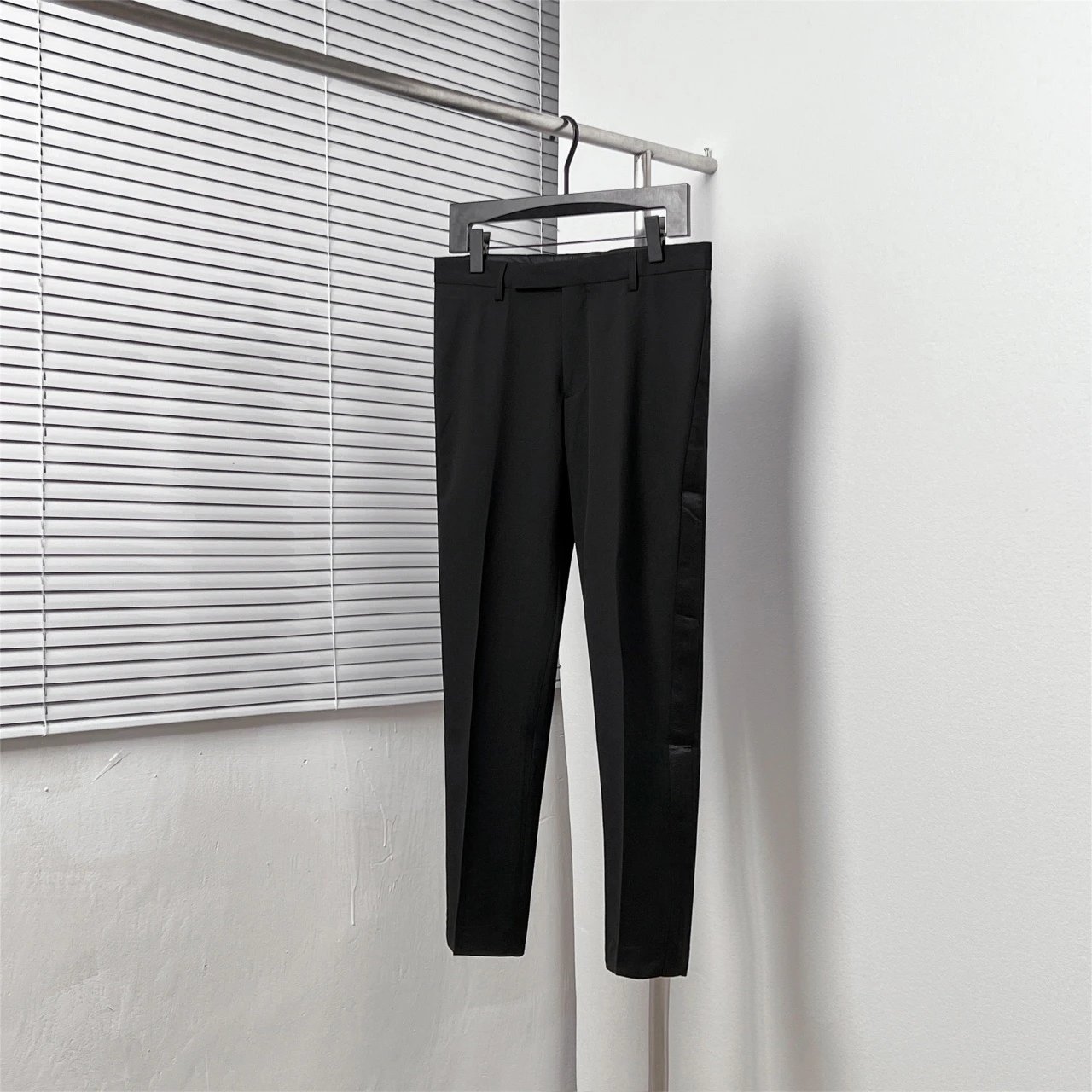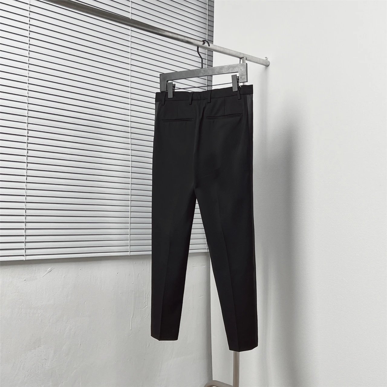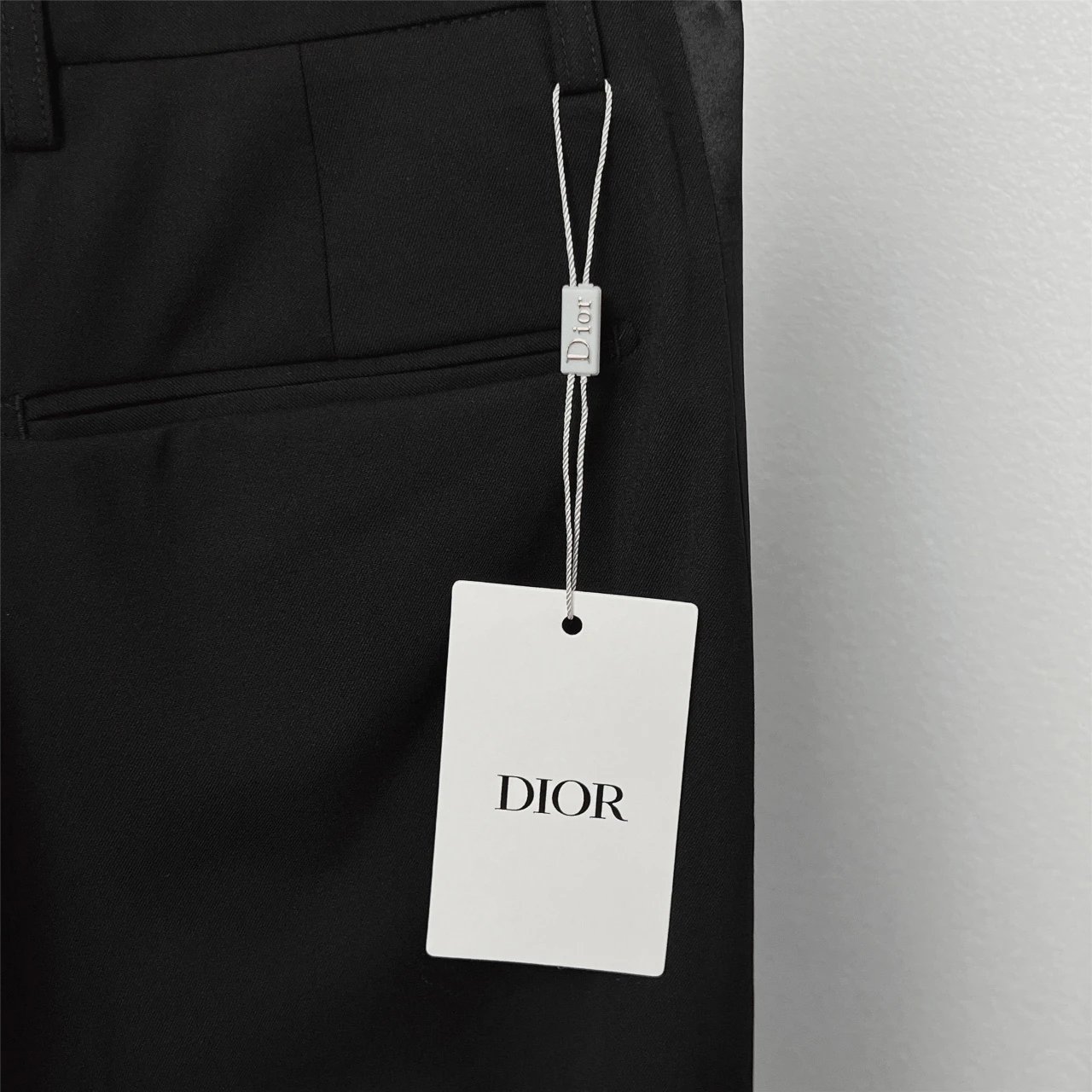 Dior Black Satin Side Double-Breasted Trousers feature satin side details and double-breasted front.