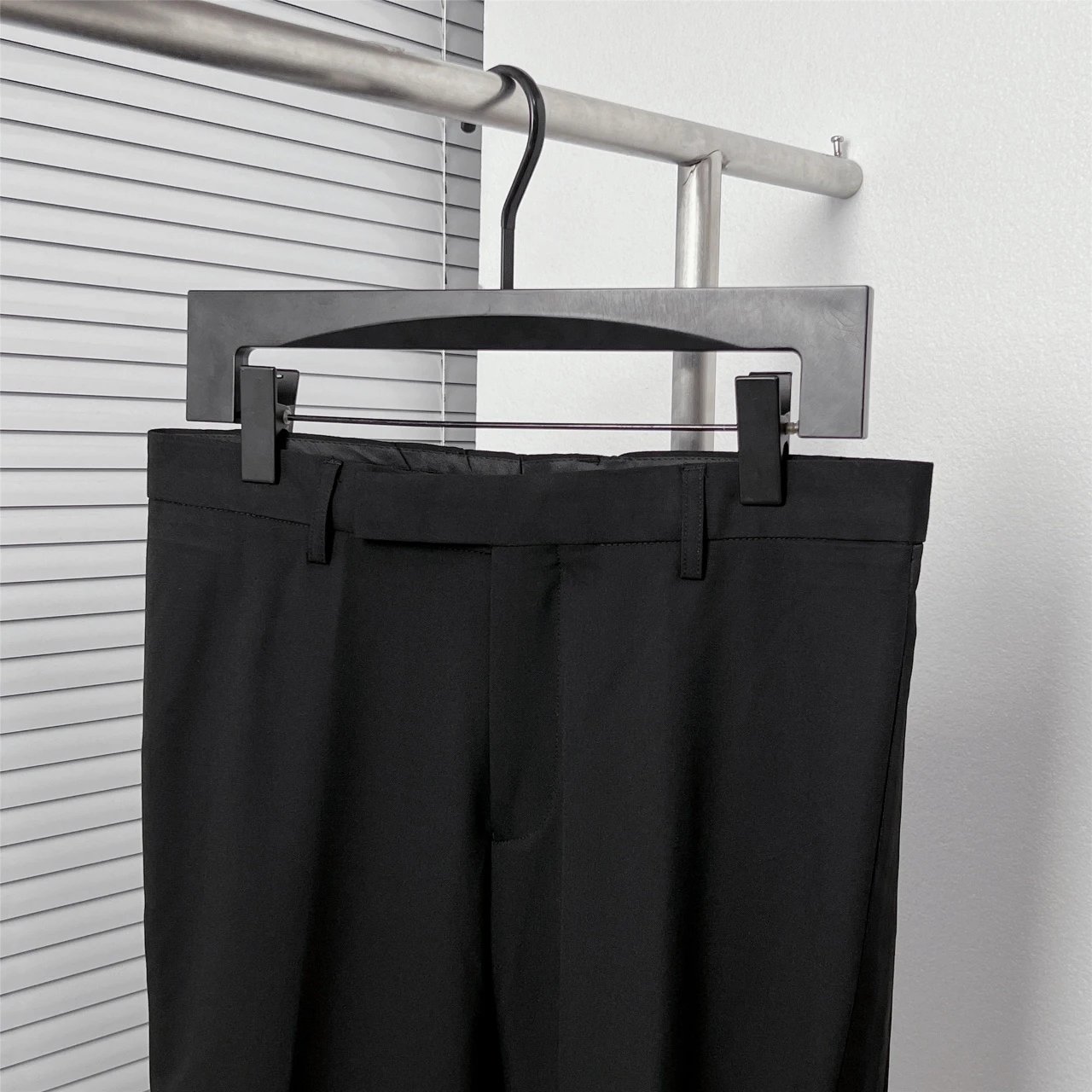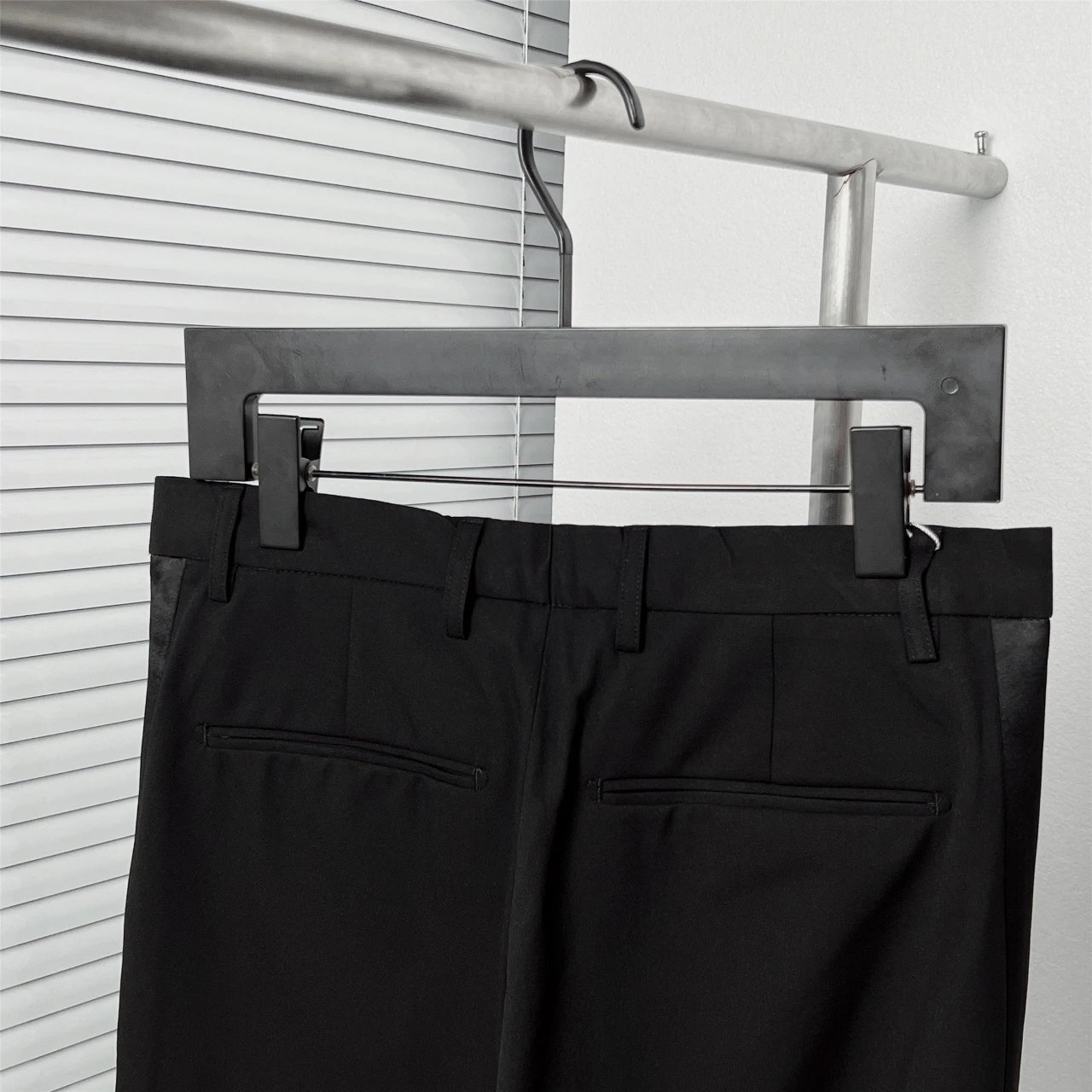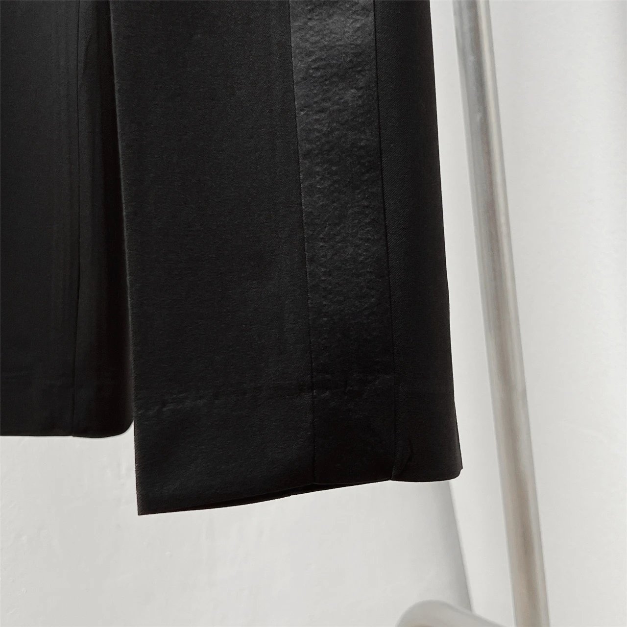 Dior Black Satin Side Double-Breasted Trousers feature satin side details and double-breasted front.