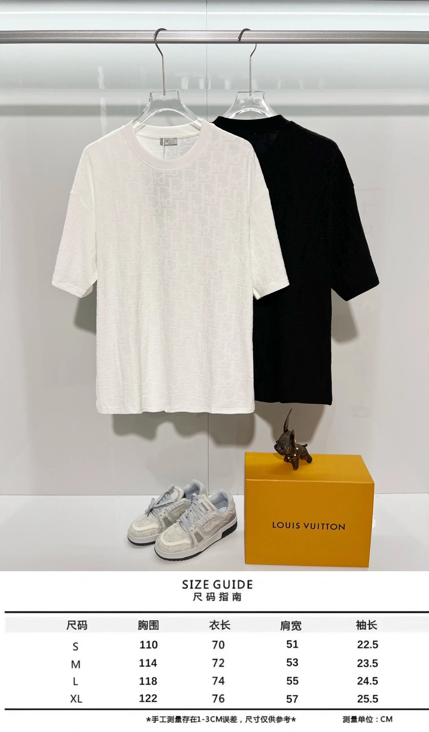 Available in black/white, sizes S/M/L/XL, complete tags, versatile for daily wear.