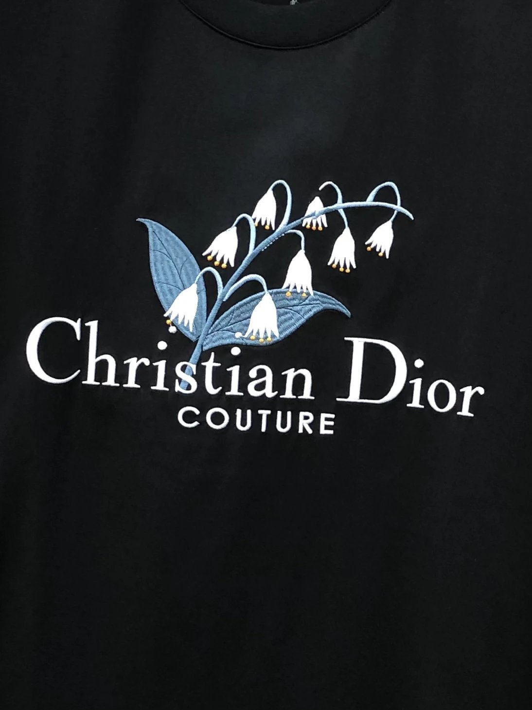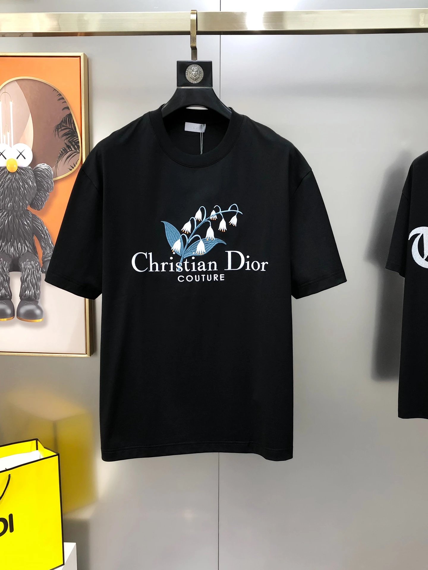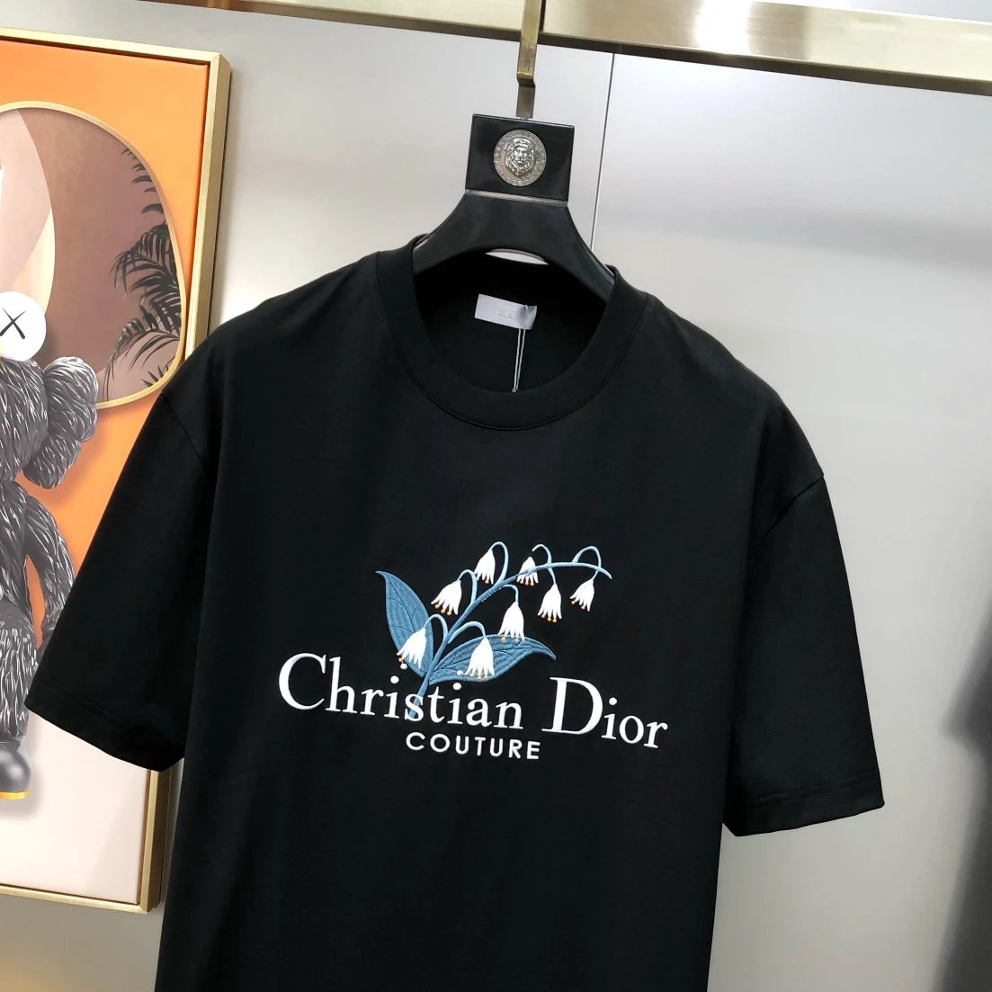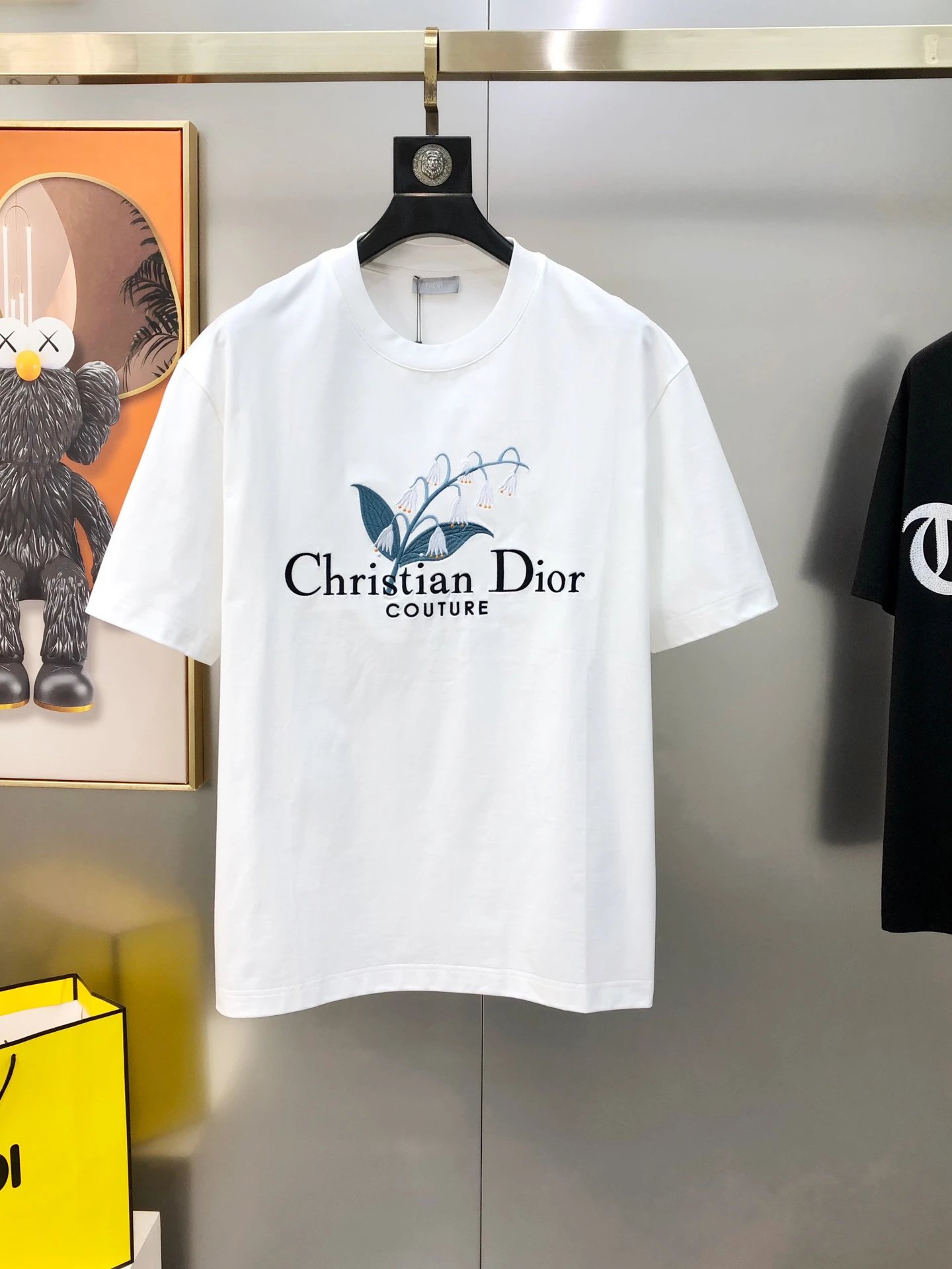 Dior 2026 Spring Summer Men's Crew Neck T-Shirt: 100% cotton (soft, skin-friendly), OS loose fit, embroidered logo. Available in Black/White, sizes M-3XL (fits up to 200lbs). Complete tags, high quality.