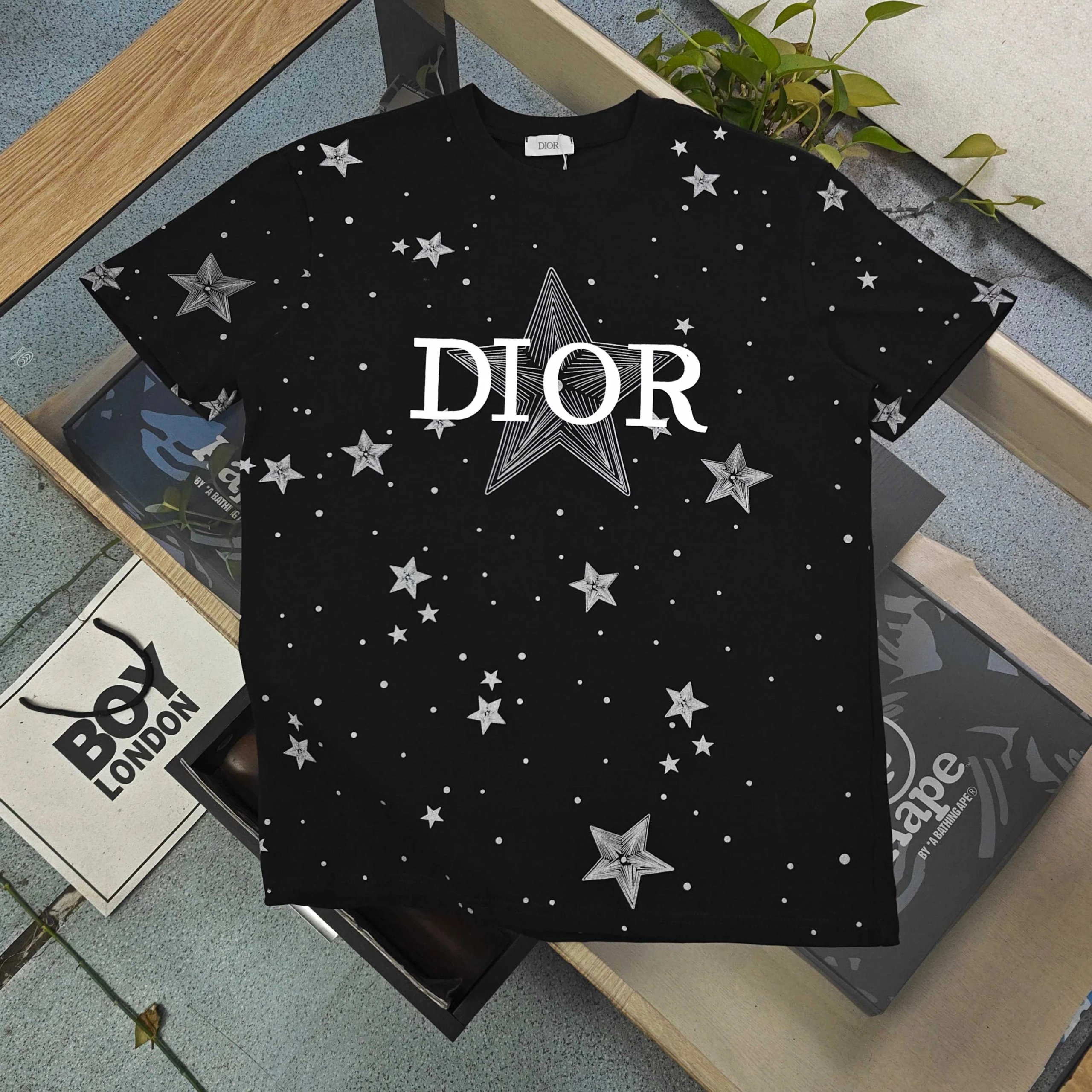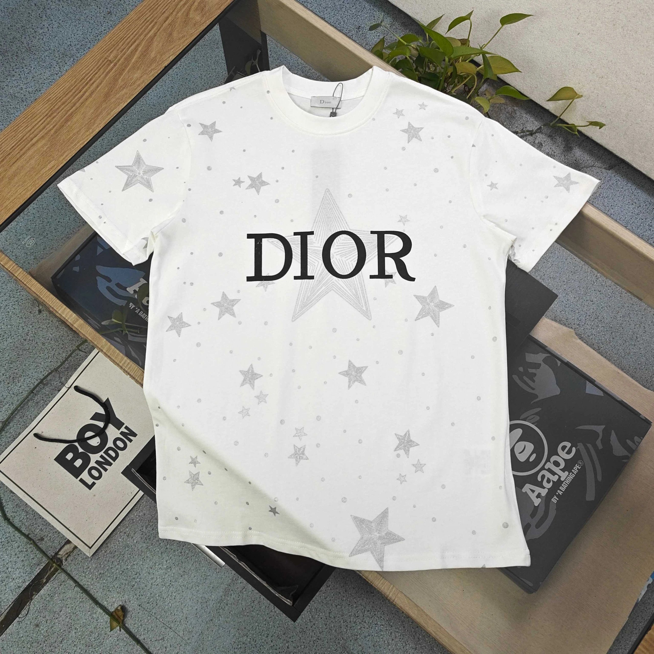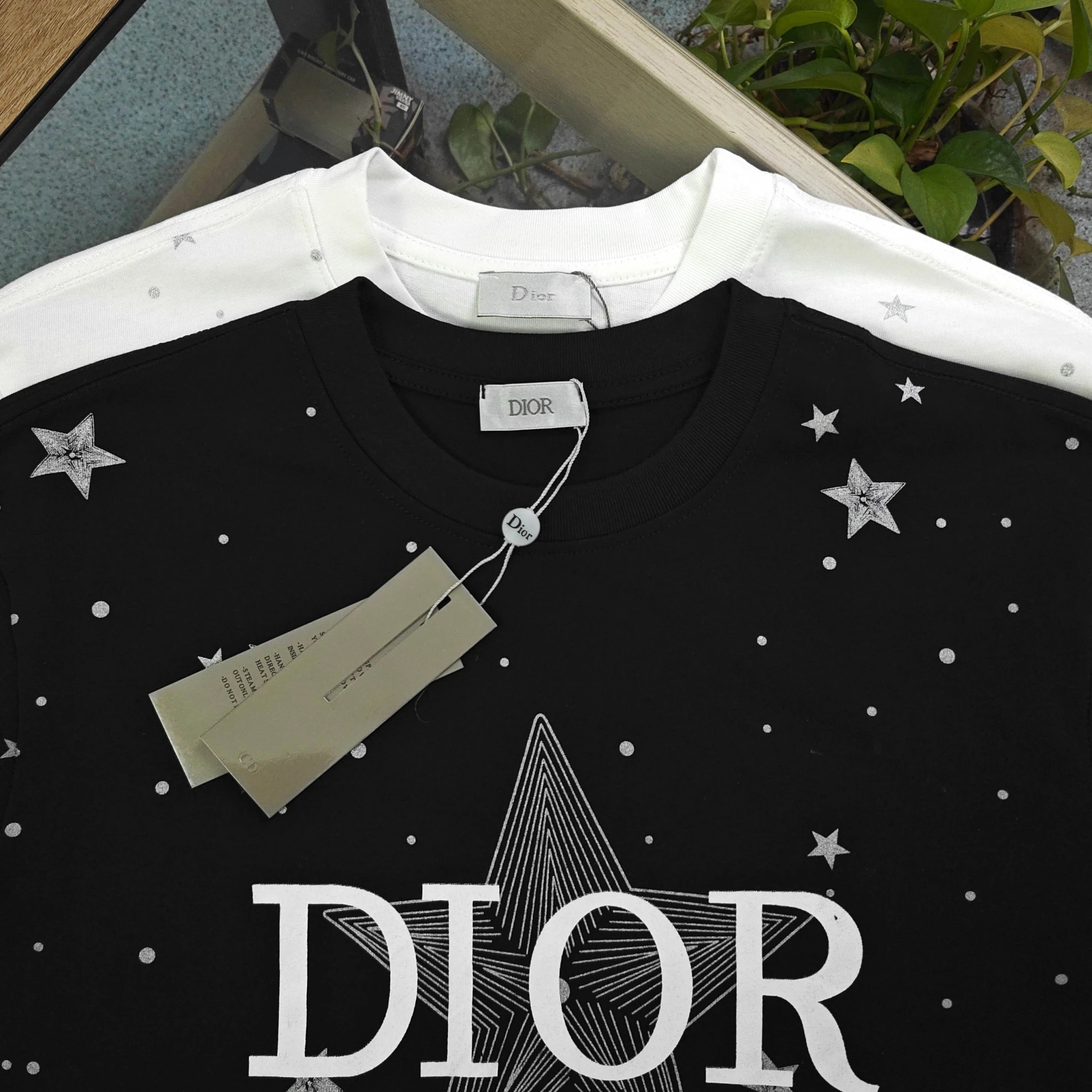 Dior 2026 new reflective star logo print unisex T-shirt, high version with 32-count combed cotton.