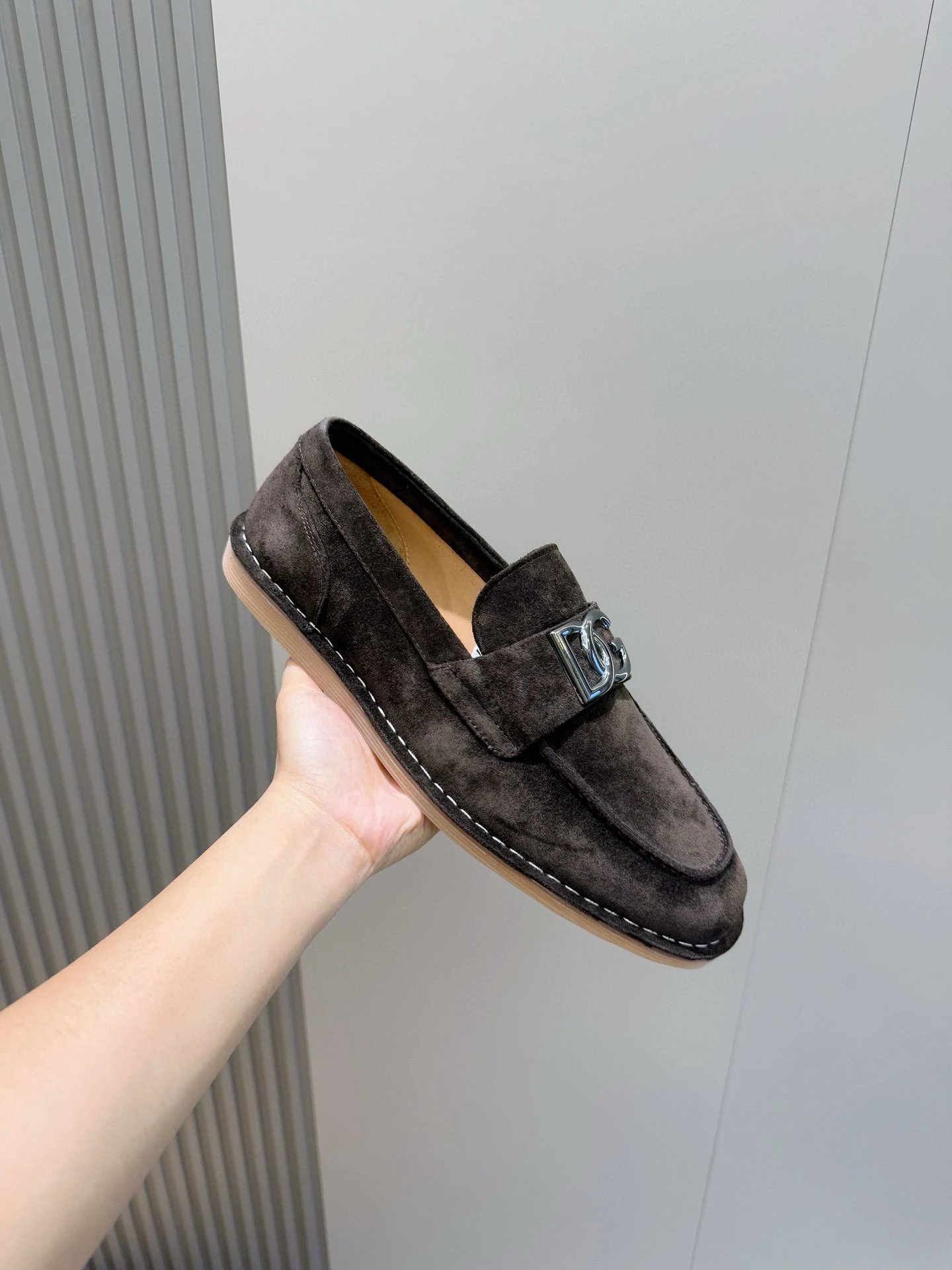 Dolce Gabbana New Florio Suede Moccasins feature classic stylish design with personalized logo.