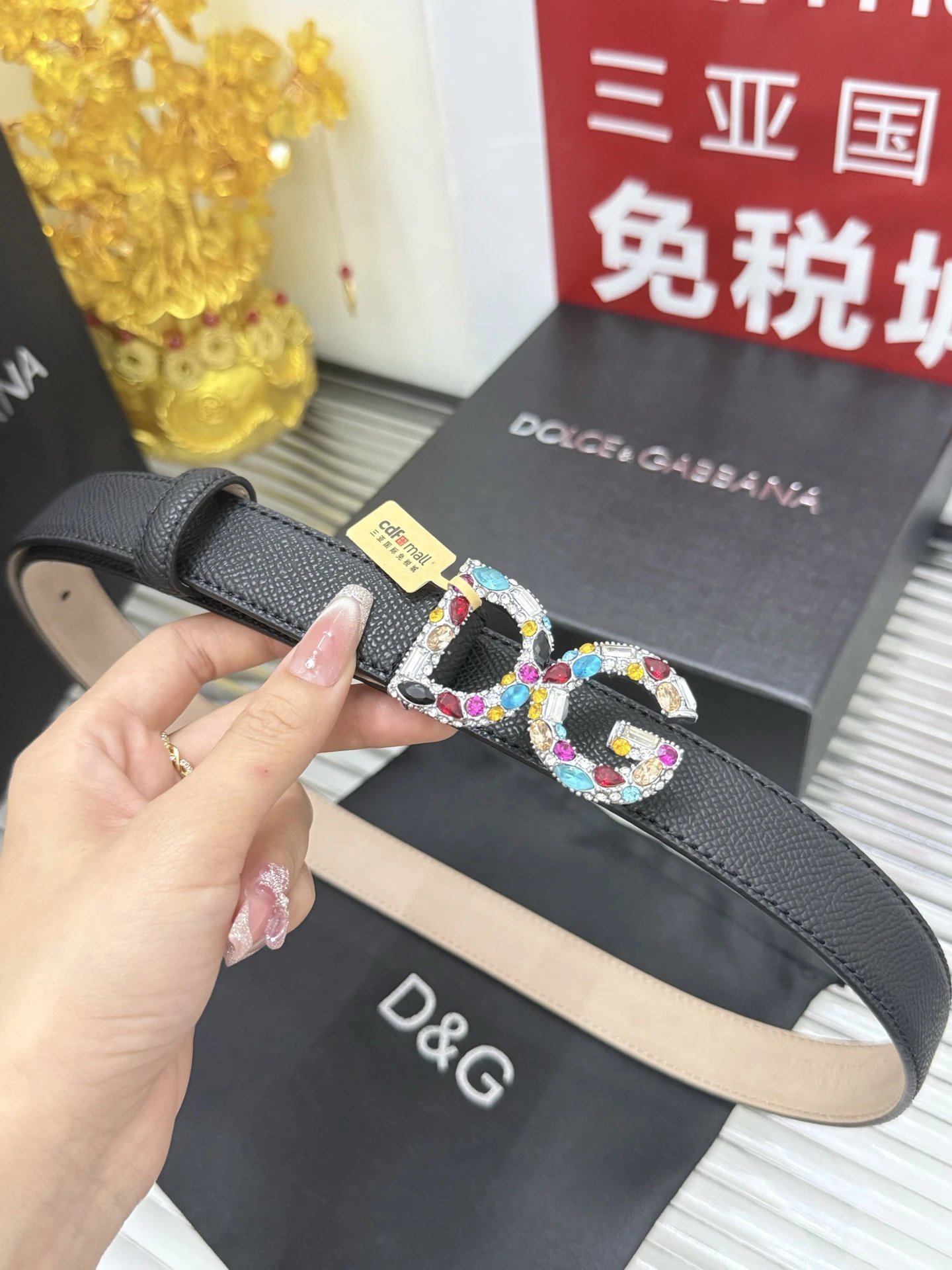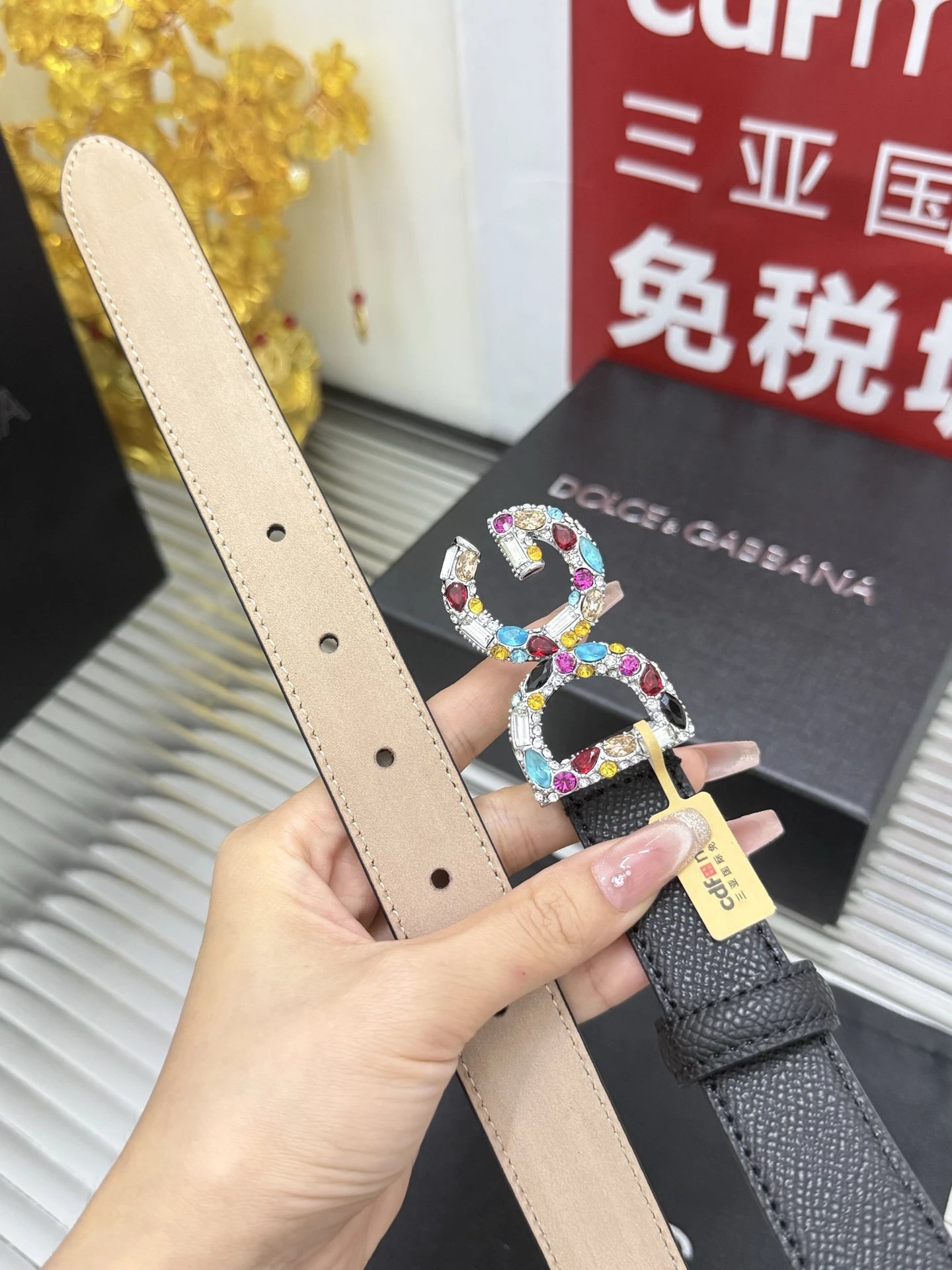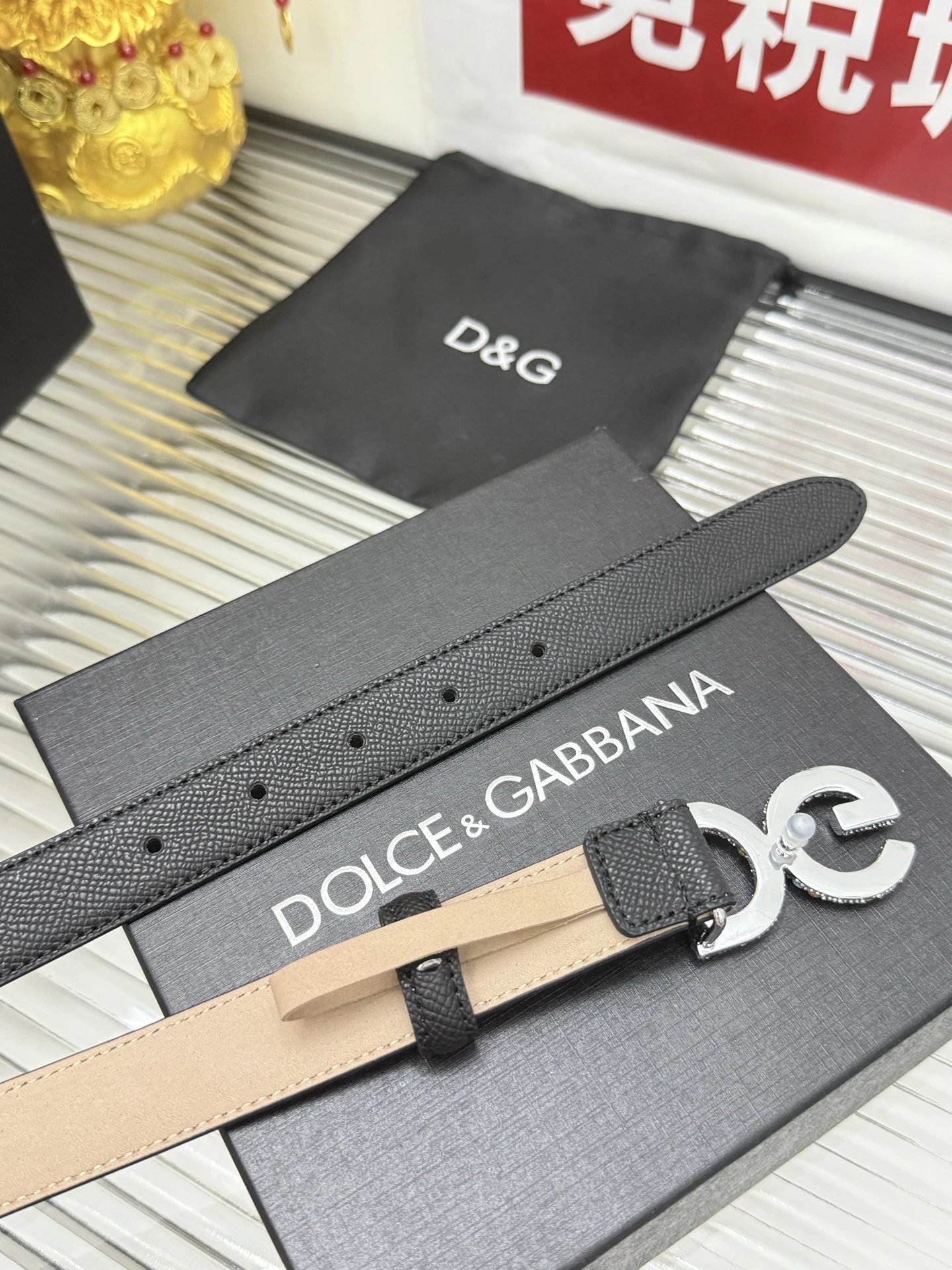 Dolce Gabbana Women's Narrow Belt uses genuine calfskin, precise stitching & crystal-embellished brass buckle.