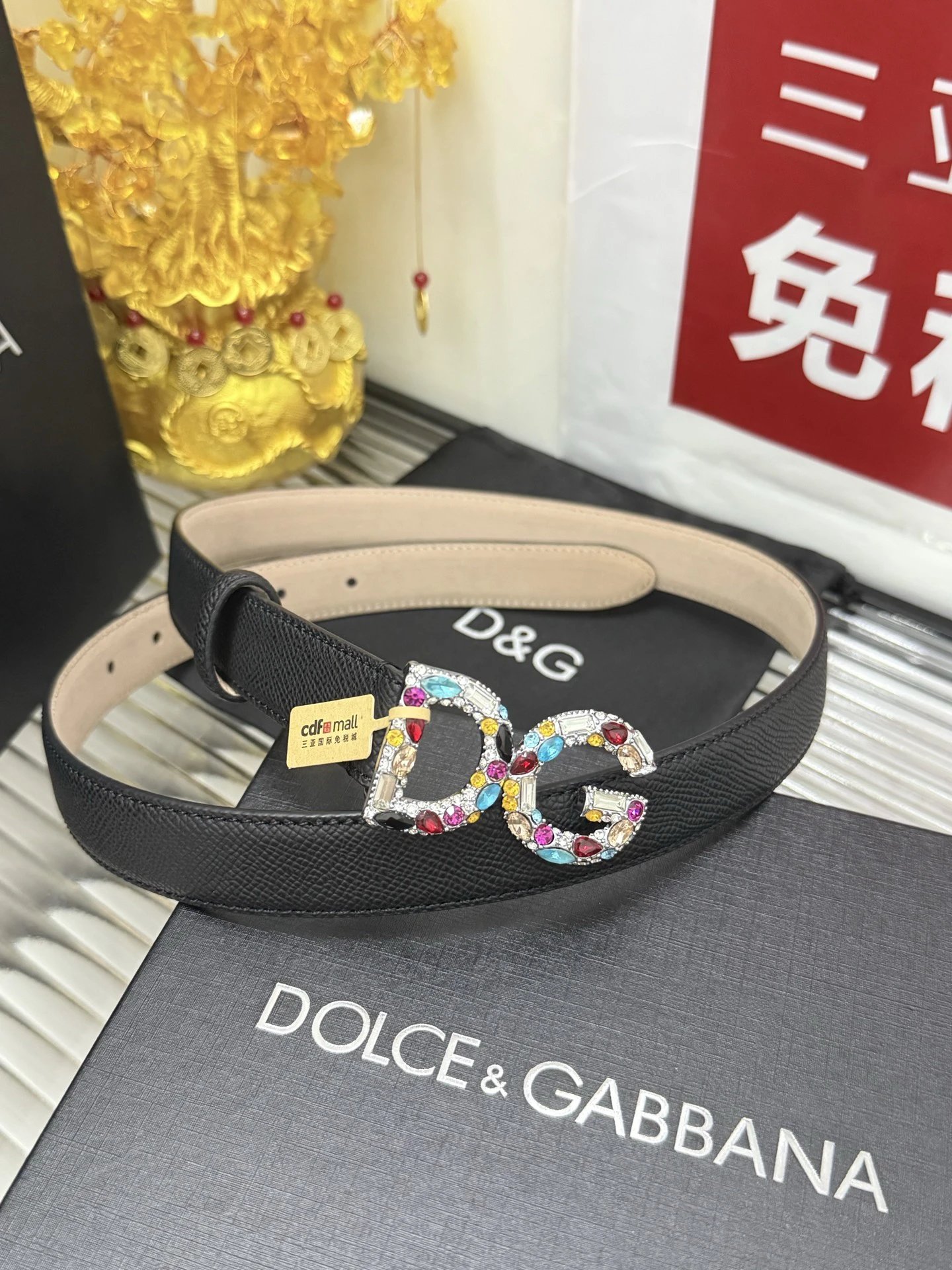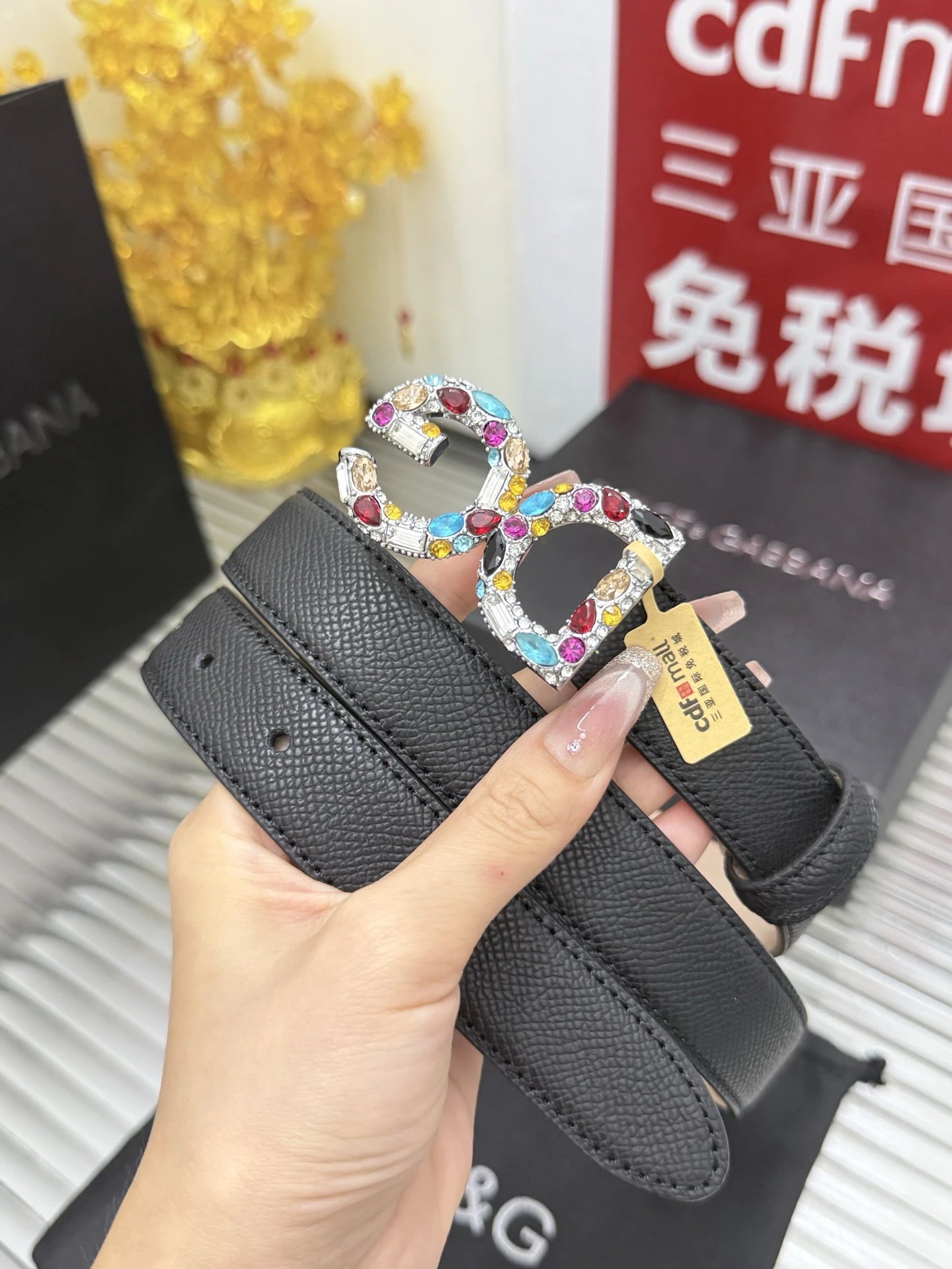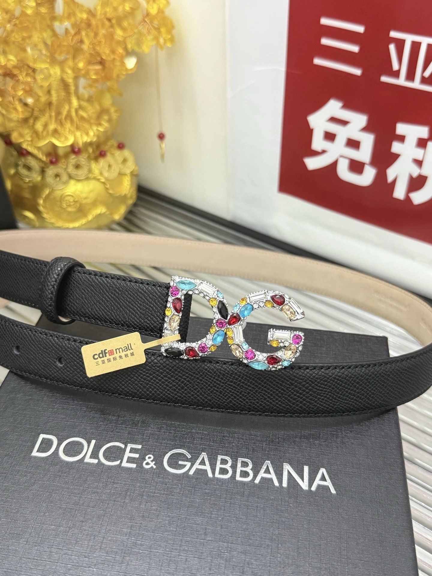Dolce Gabbana Women's Narrow Belt uses genuine calfskin, precise stitching & crystal-embellished brass buckle.