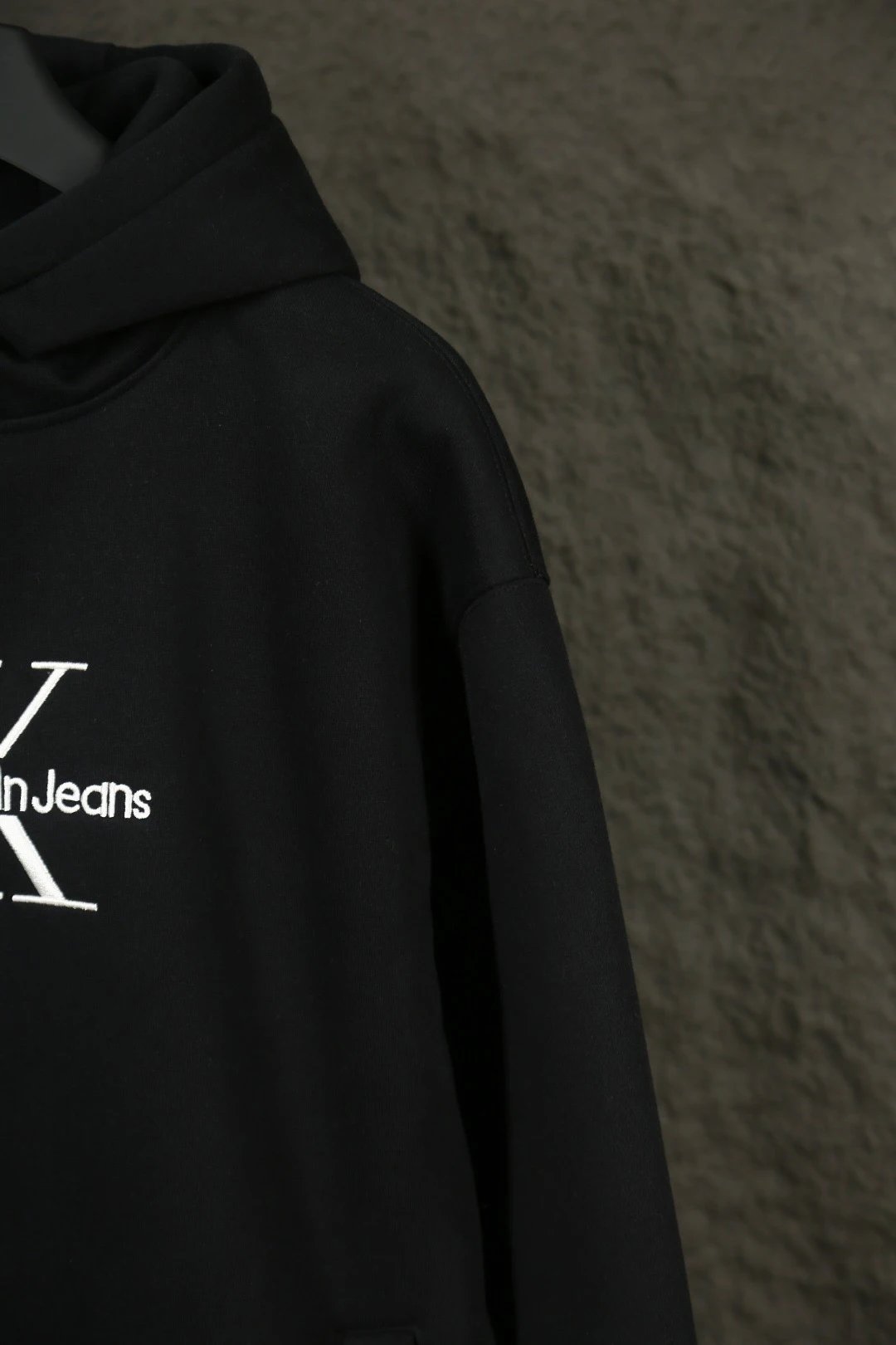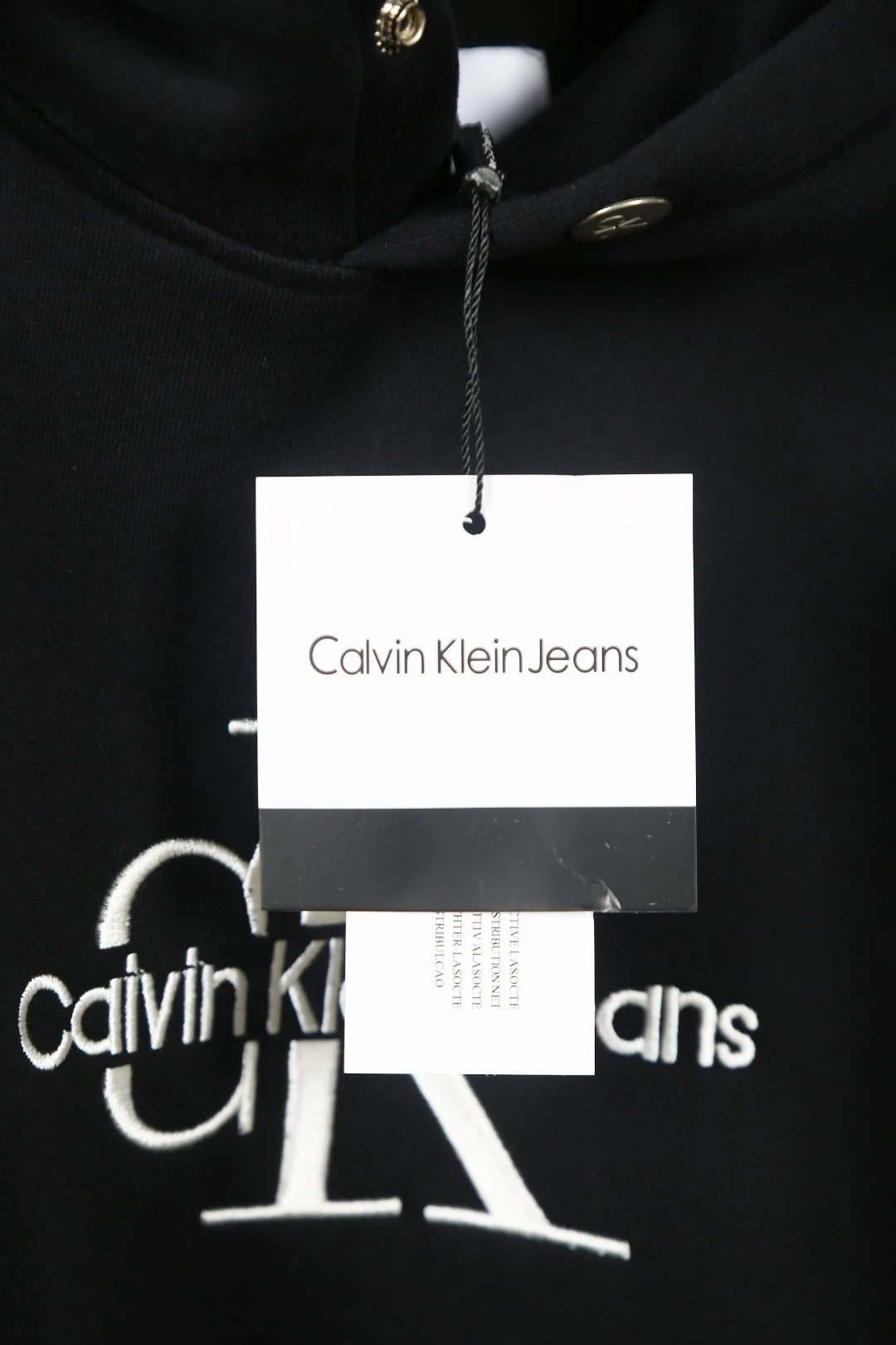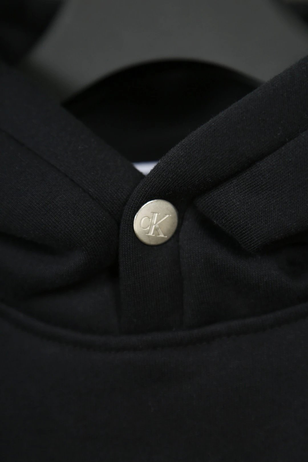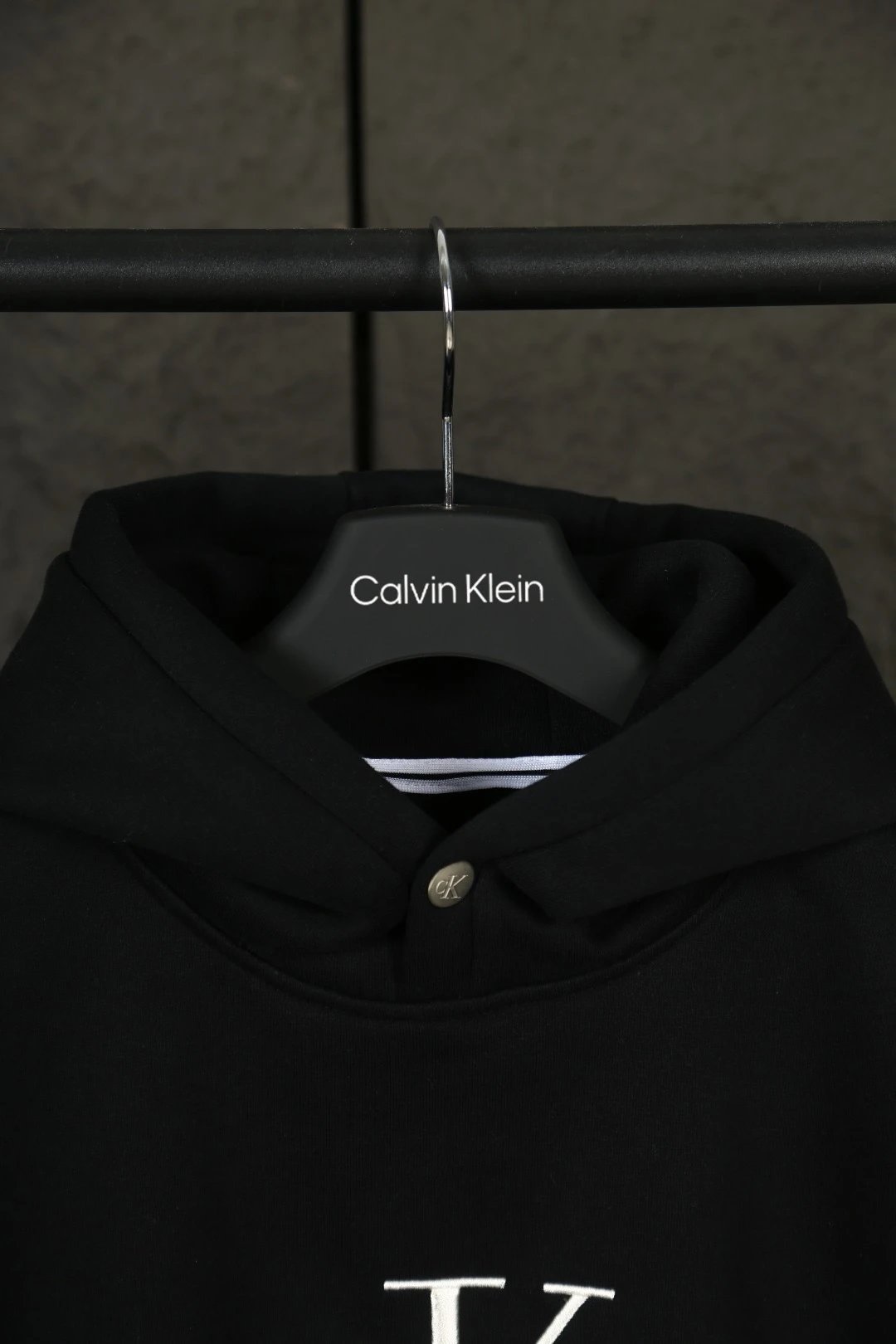 Calvin Klein 2024AW Black Fleece Hoodie: Embroidered logo, snap buttons, 420g fabric.