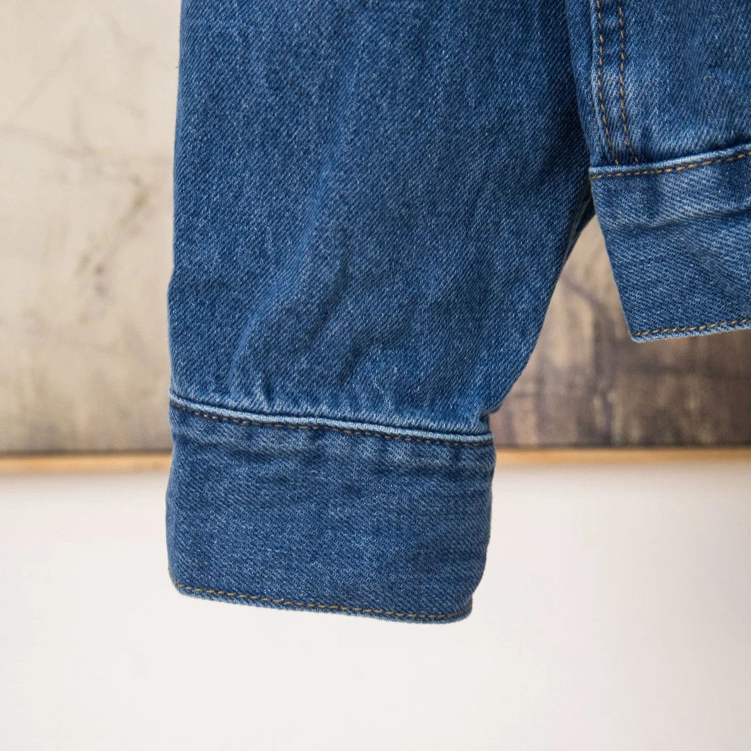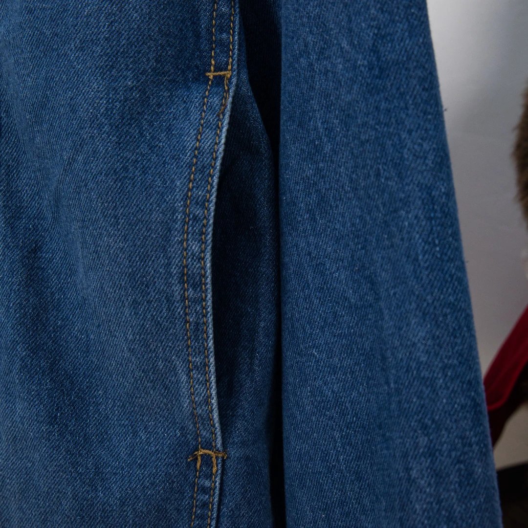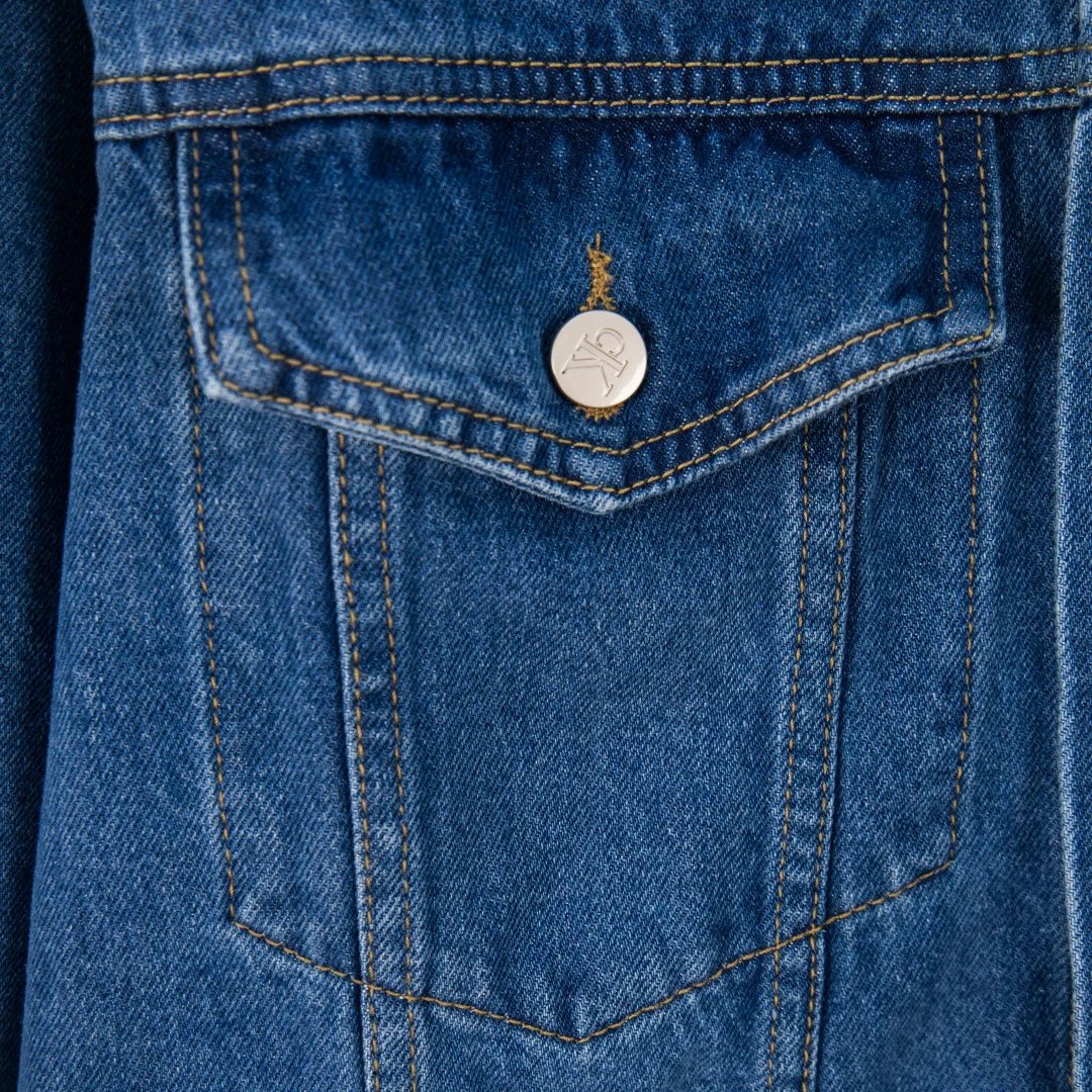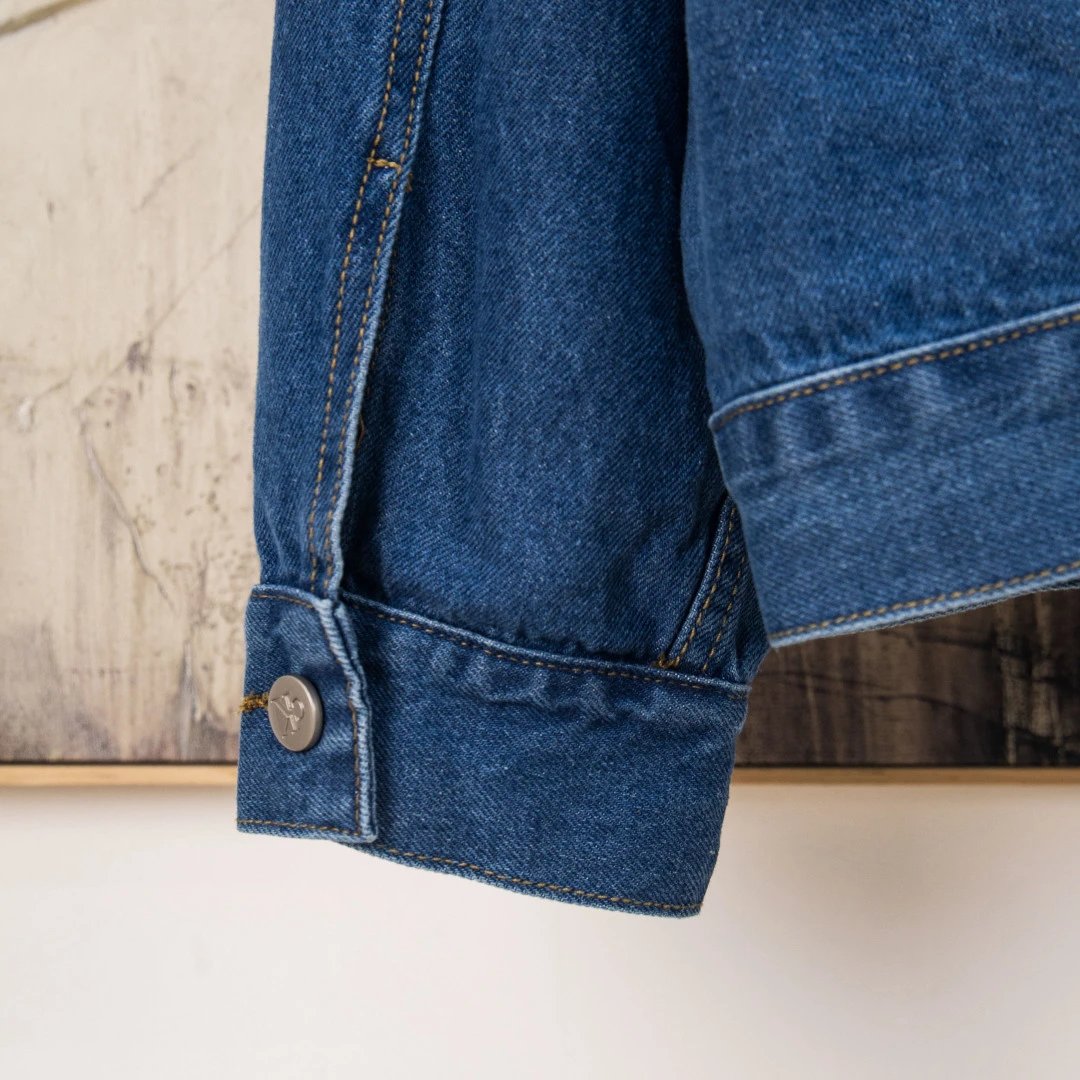 346A4 dark blue 14OZ denim, custom woven label, pearl nickel button, clean stitching