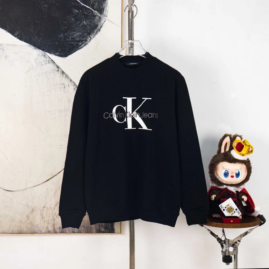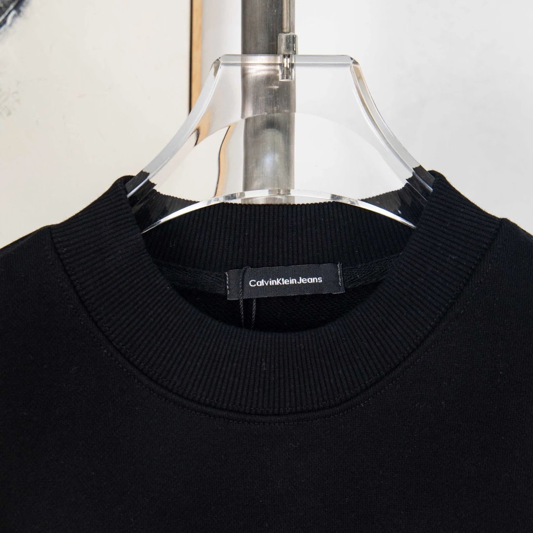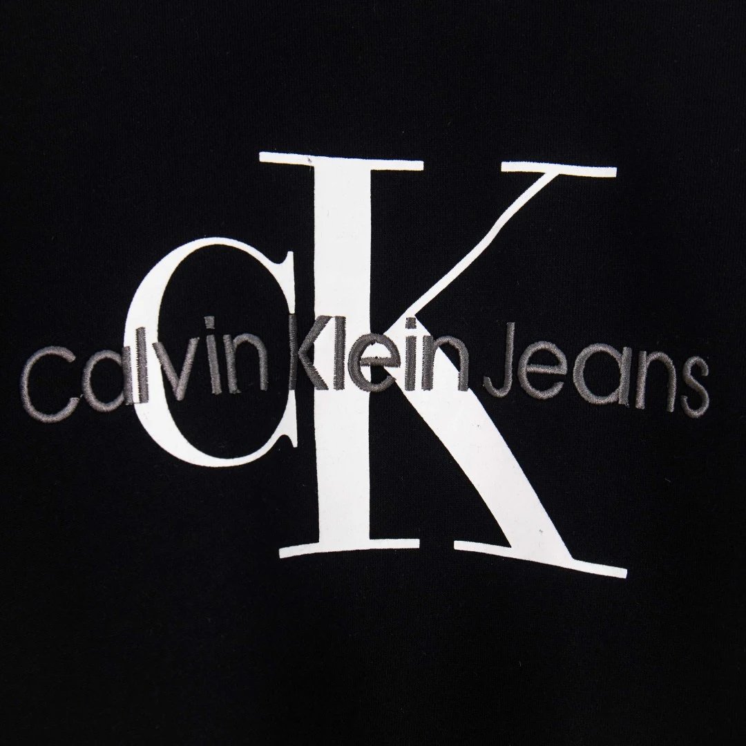 Calvin Klein exclusive crewneck sweatshirt with letter embroidery logo, black & white.