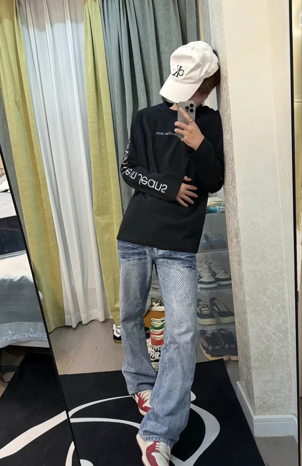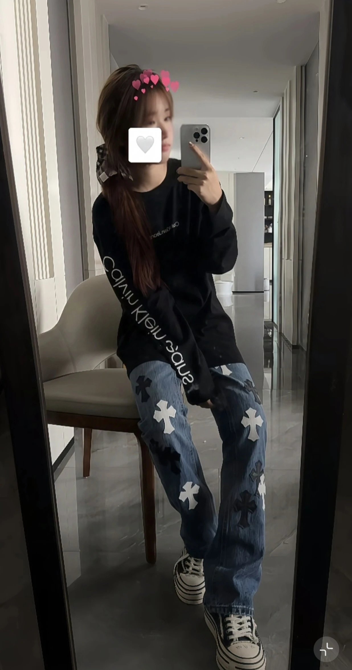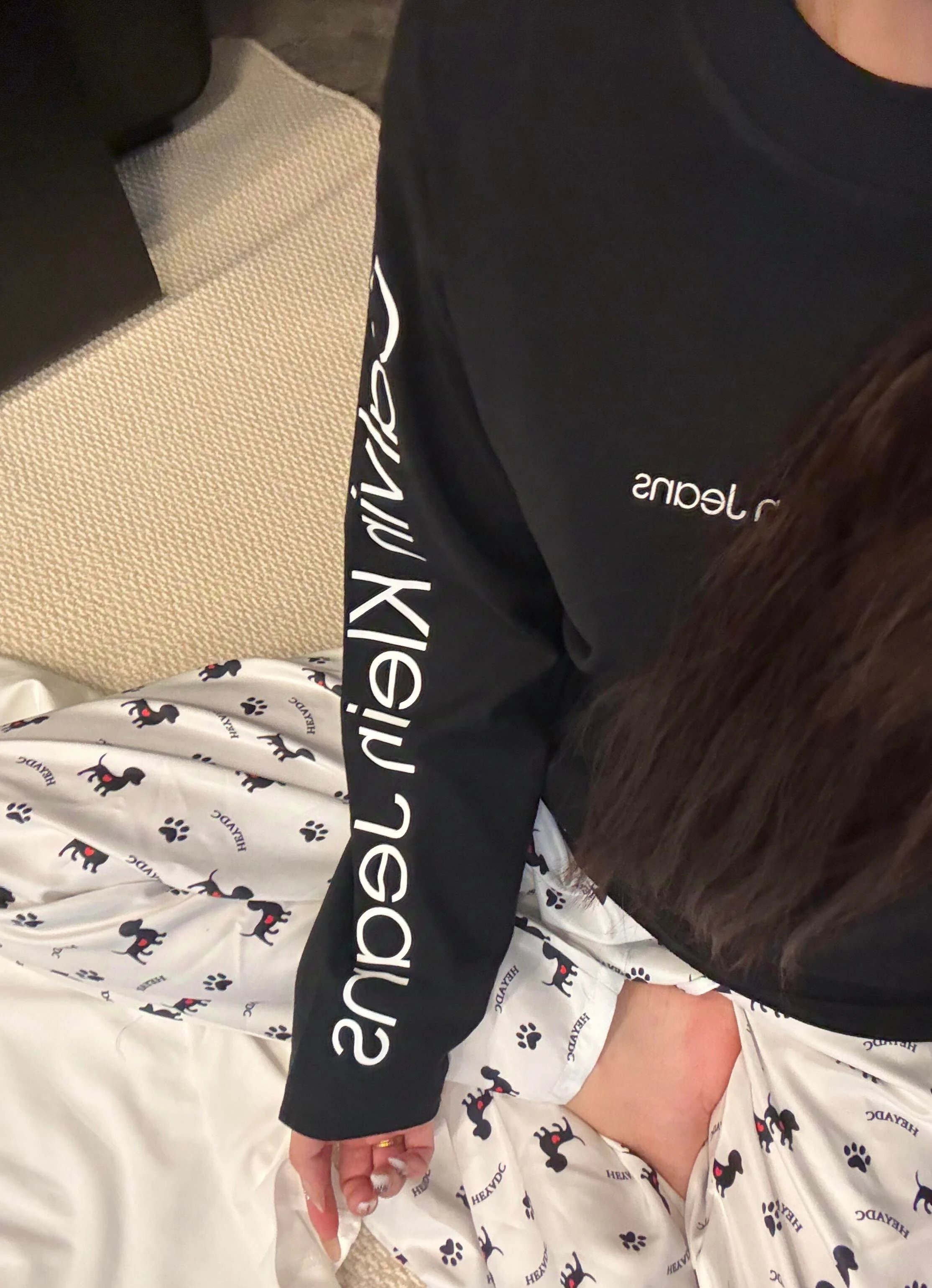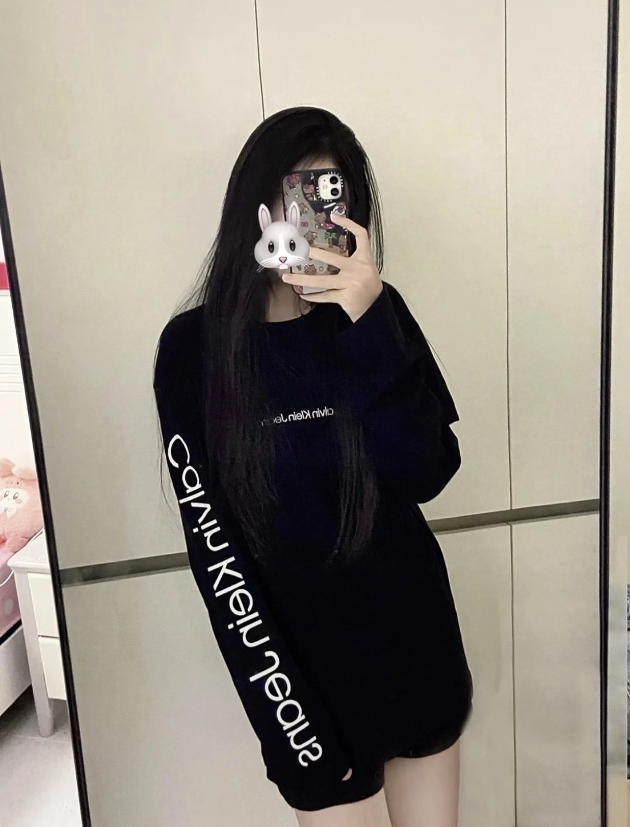 Calvin Klein 25 New Couple Long-Sleeve T-Shirt: 320g combed cotton for premium texture, loose fit for comfort.