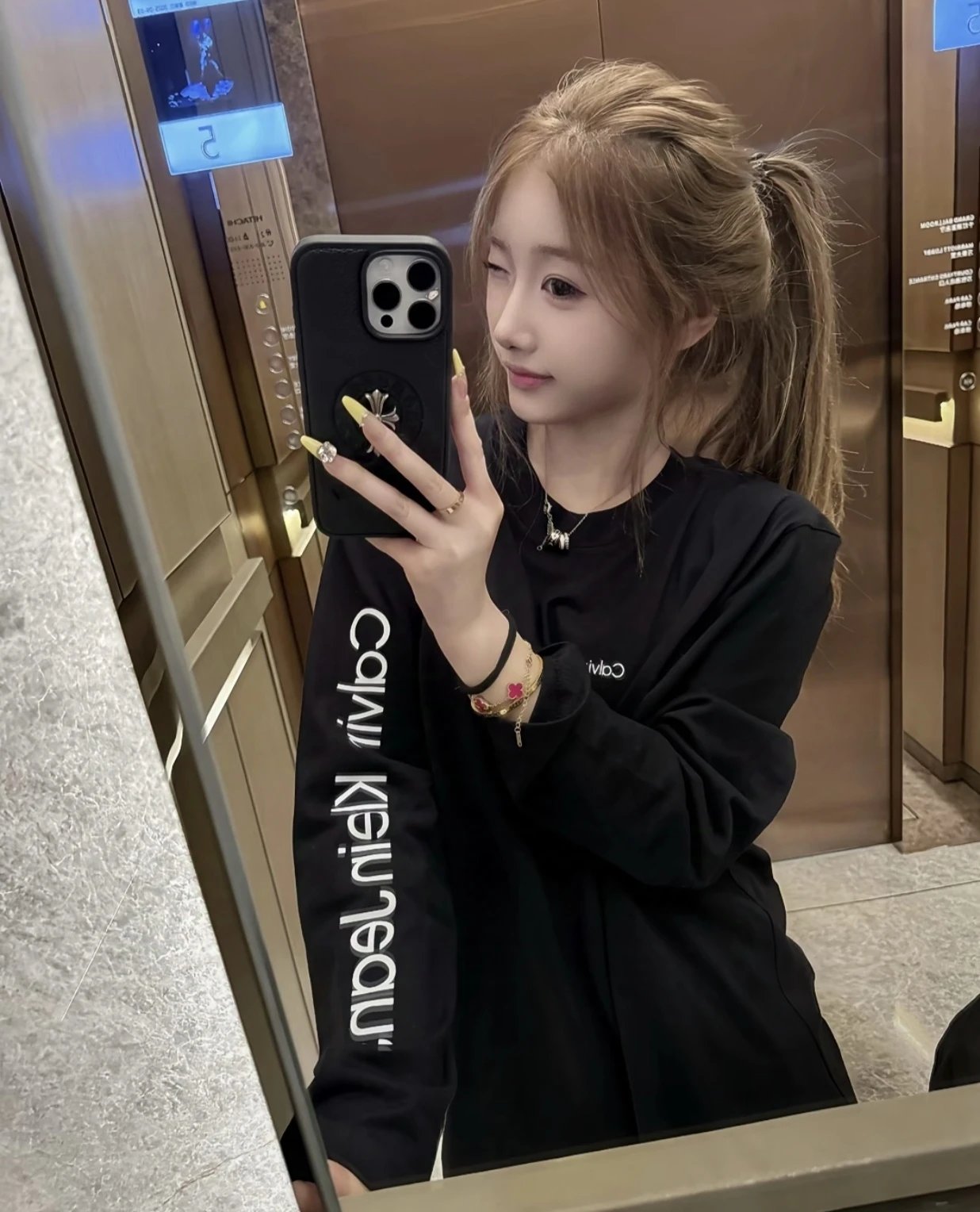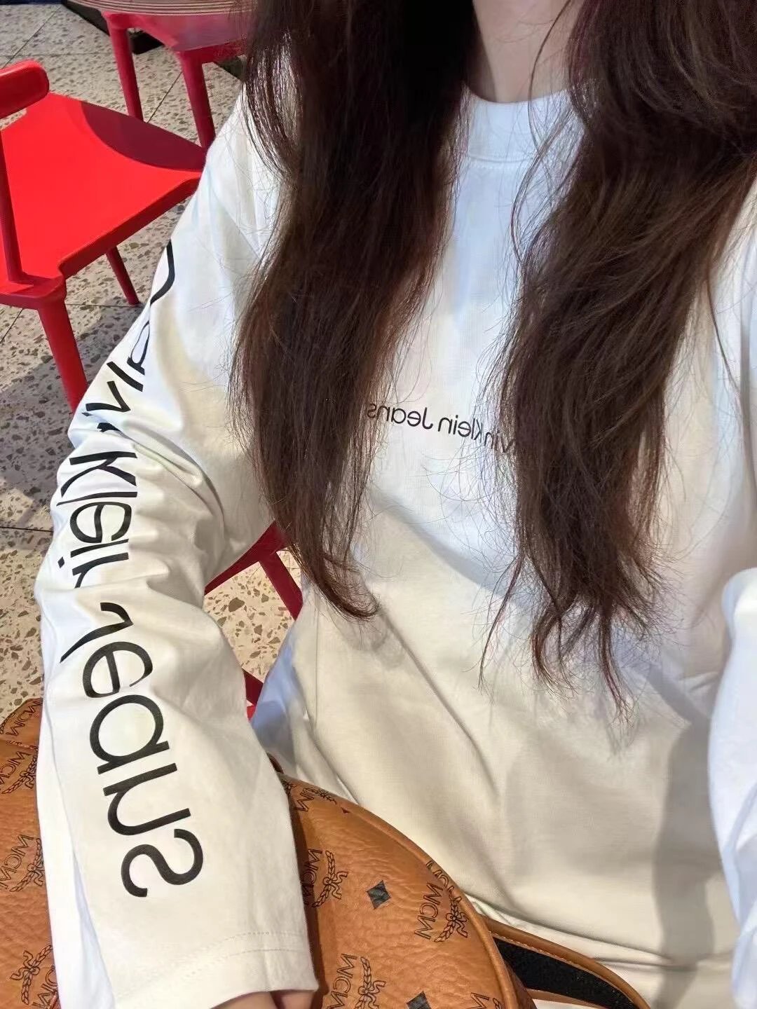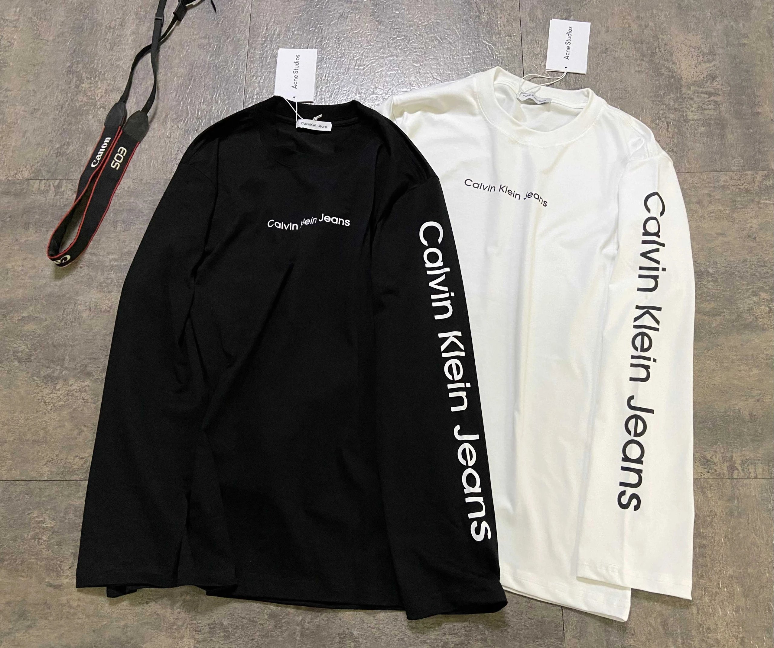 Calvin Klein 2025 new long sleeve tops with sleeve logo, loose fit, couple style.