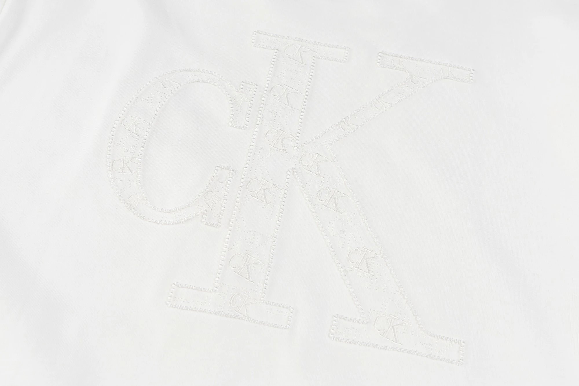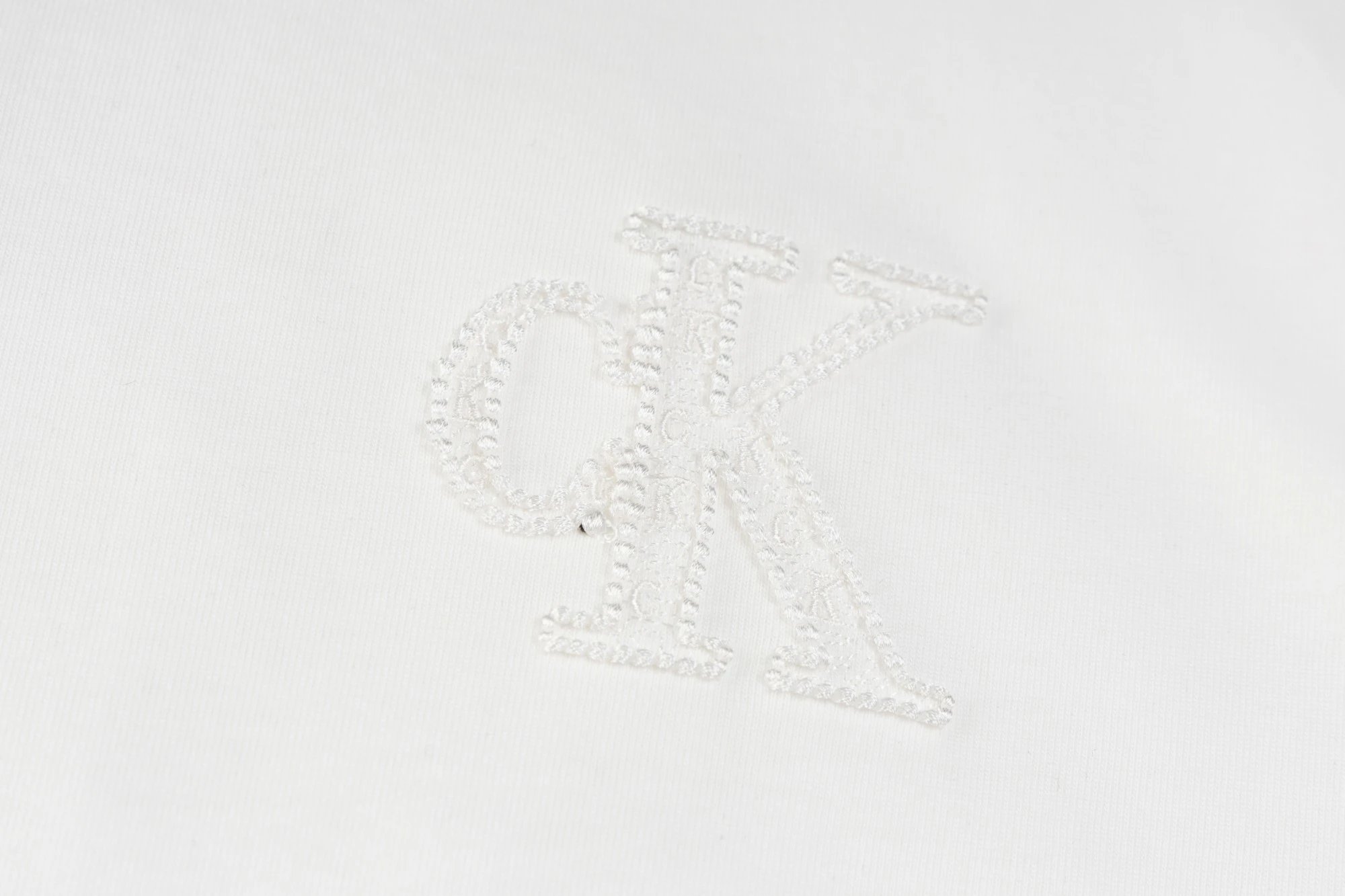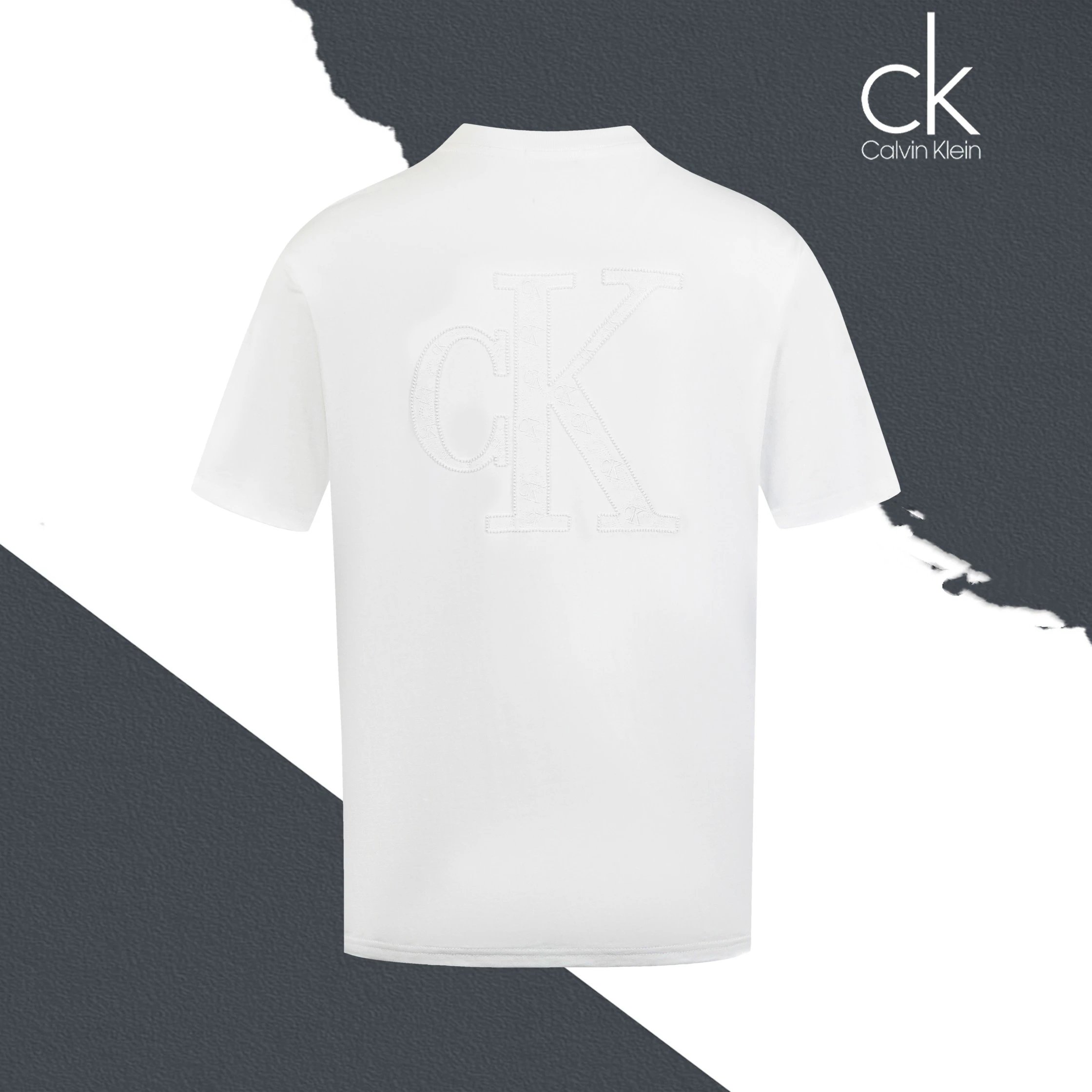 Calvin Klein SL76 crew neck short-sleeve jersey has small front & large back logo with applique embroidery.