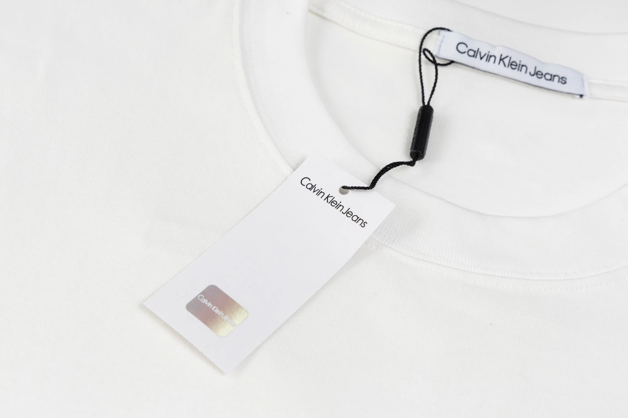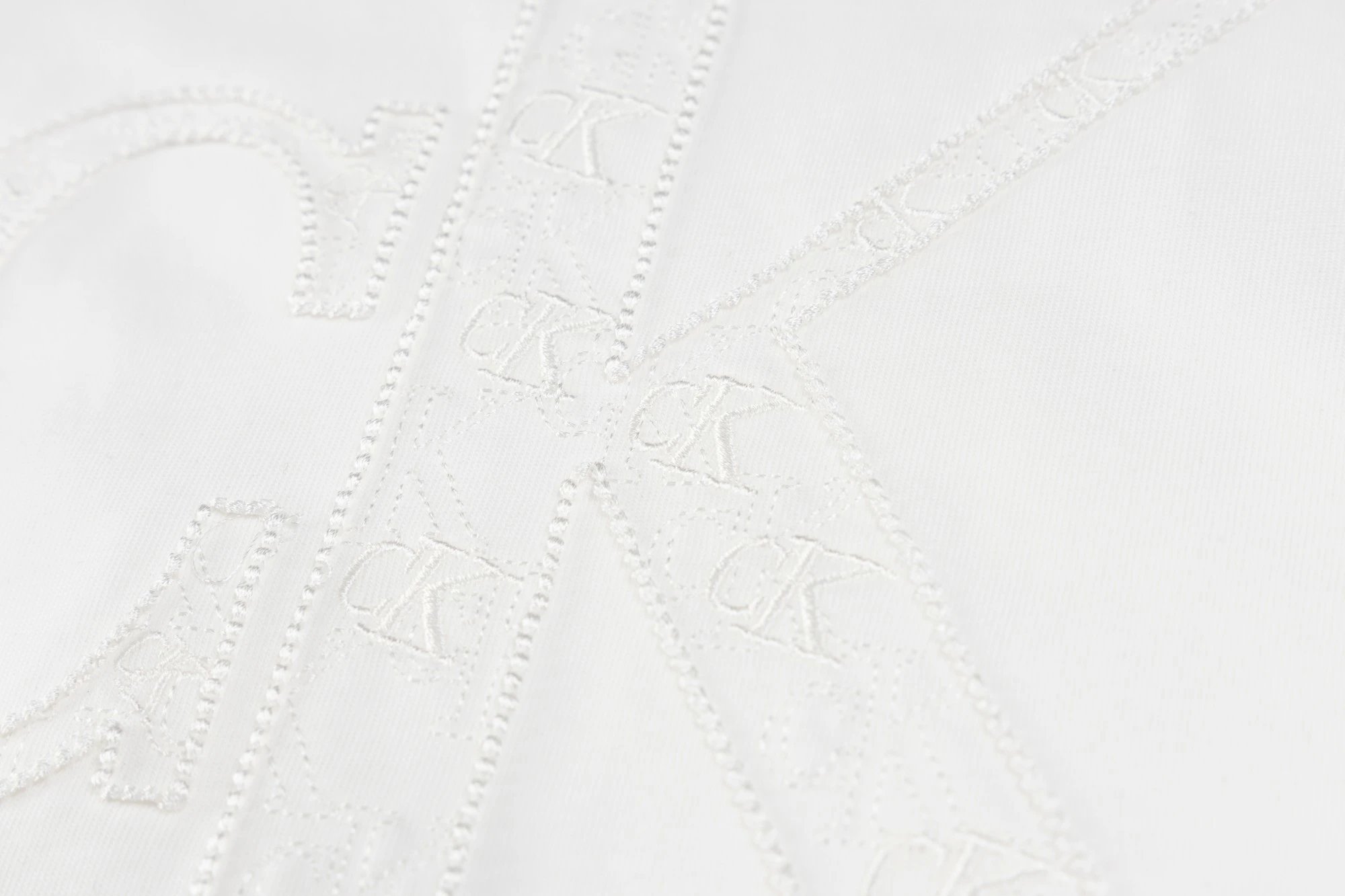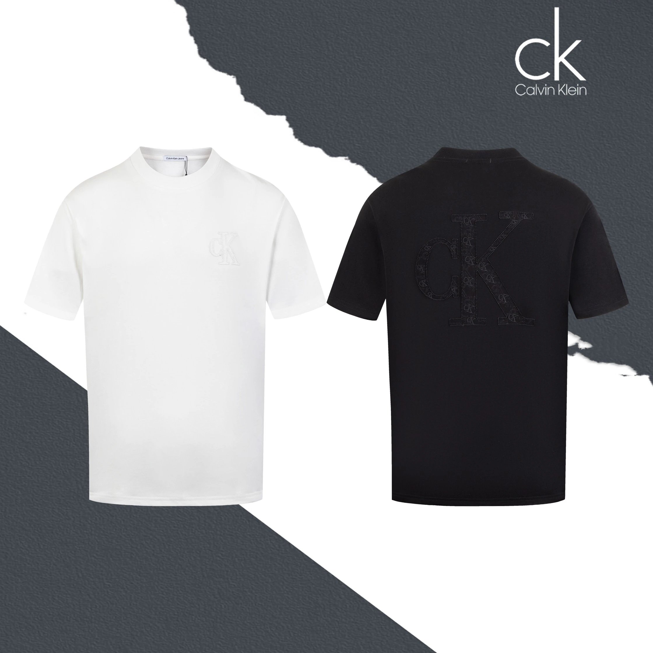 Calvin Klein SL76 crew neck short-sleeve jersey has small front & large back logo with applique embroidery.
