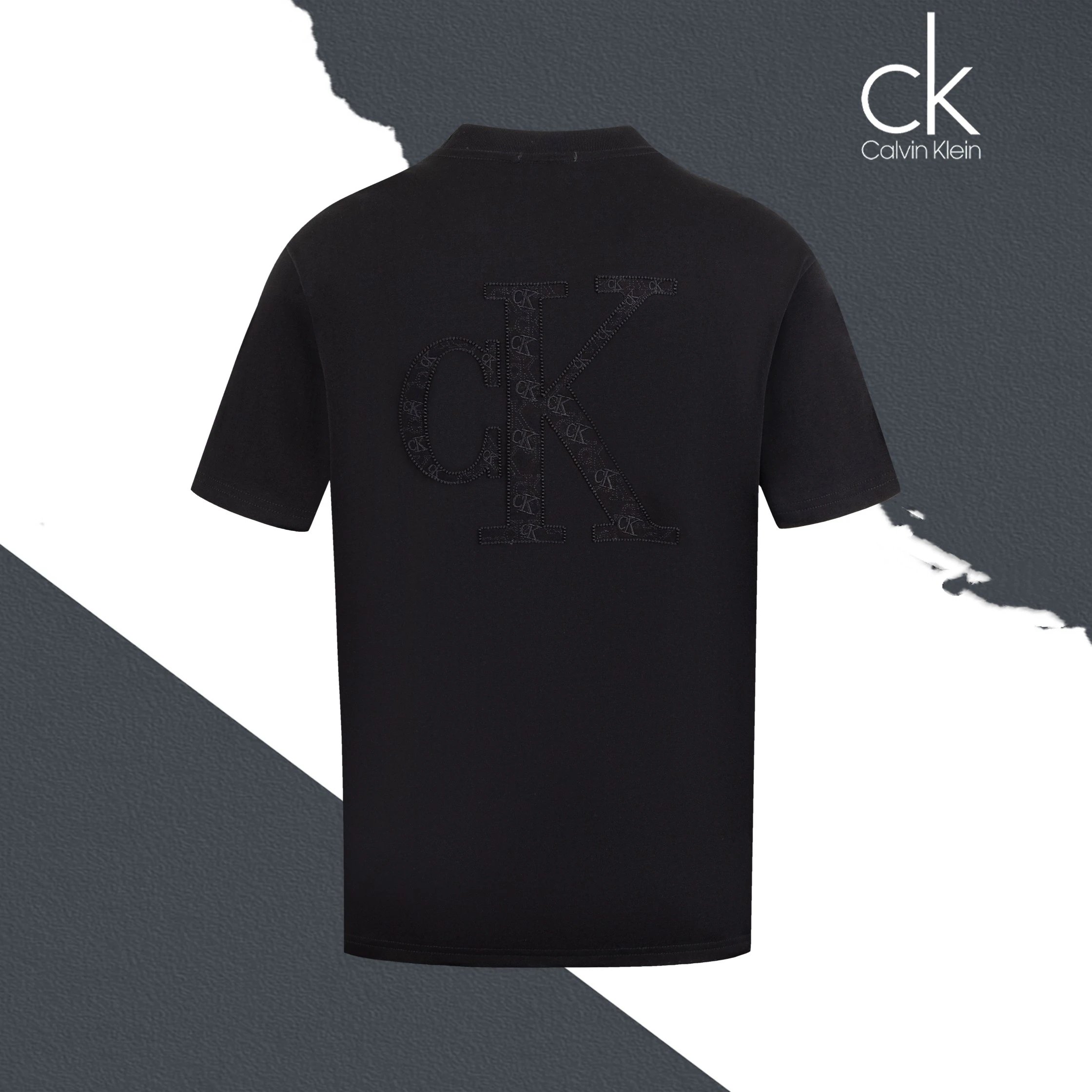 Calvin Klein SL76 T-Shirt has small chest logo, large back patch logo, crew neck, short sleeves.