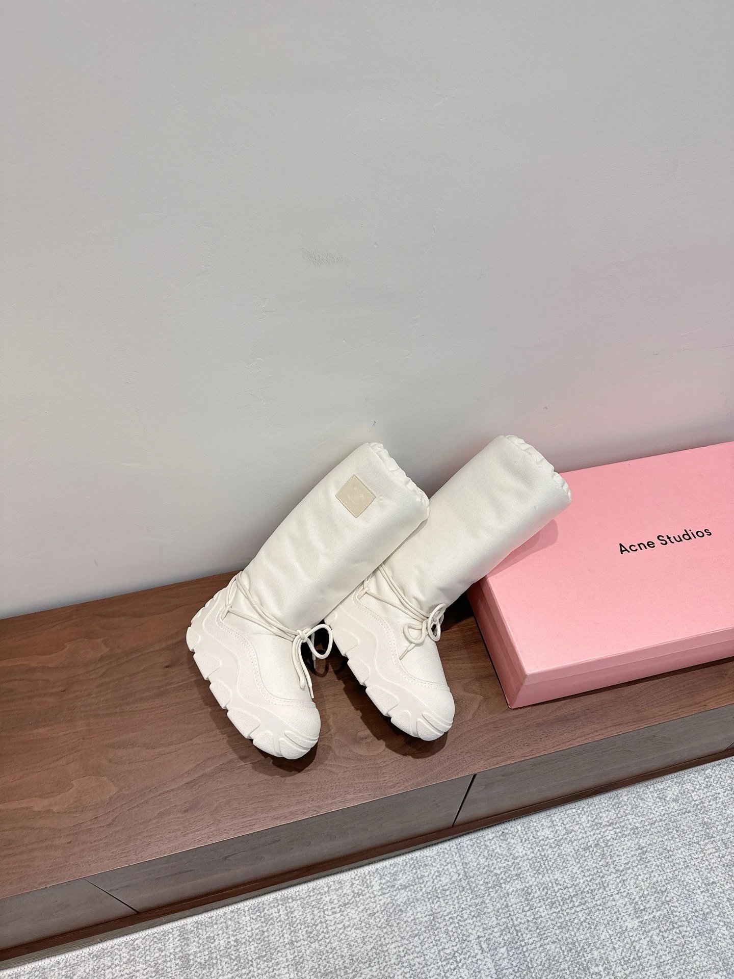Acne Studios Smiley Snow Ankle Boots feature a cute chunky winter design.