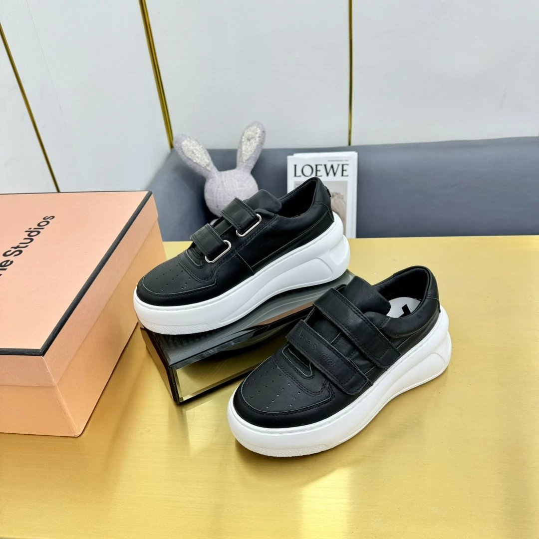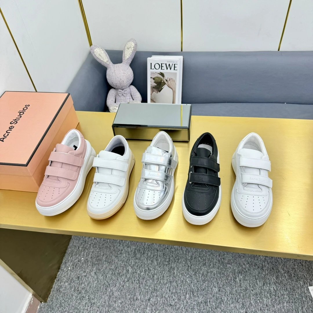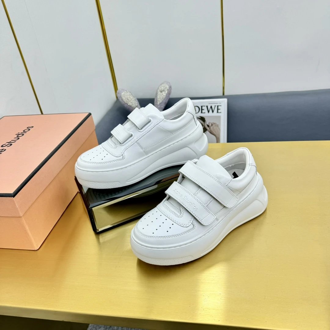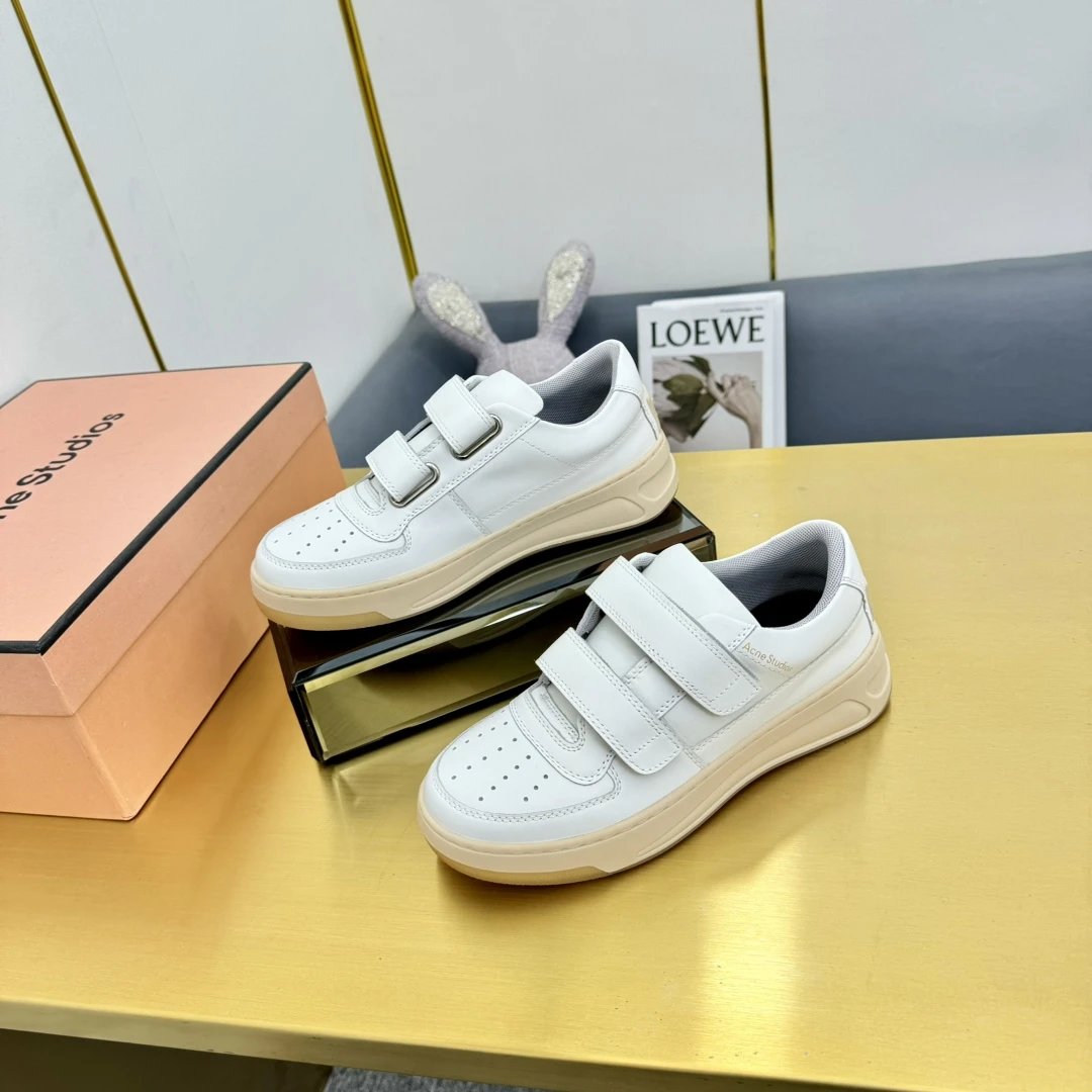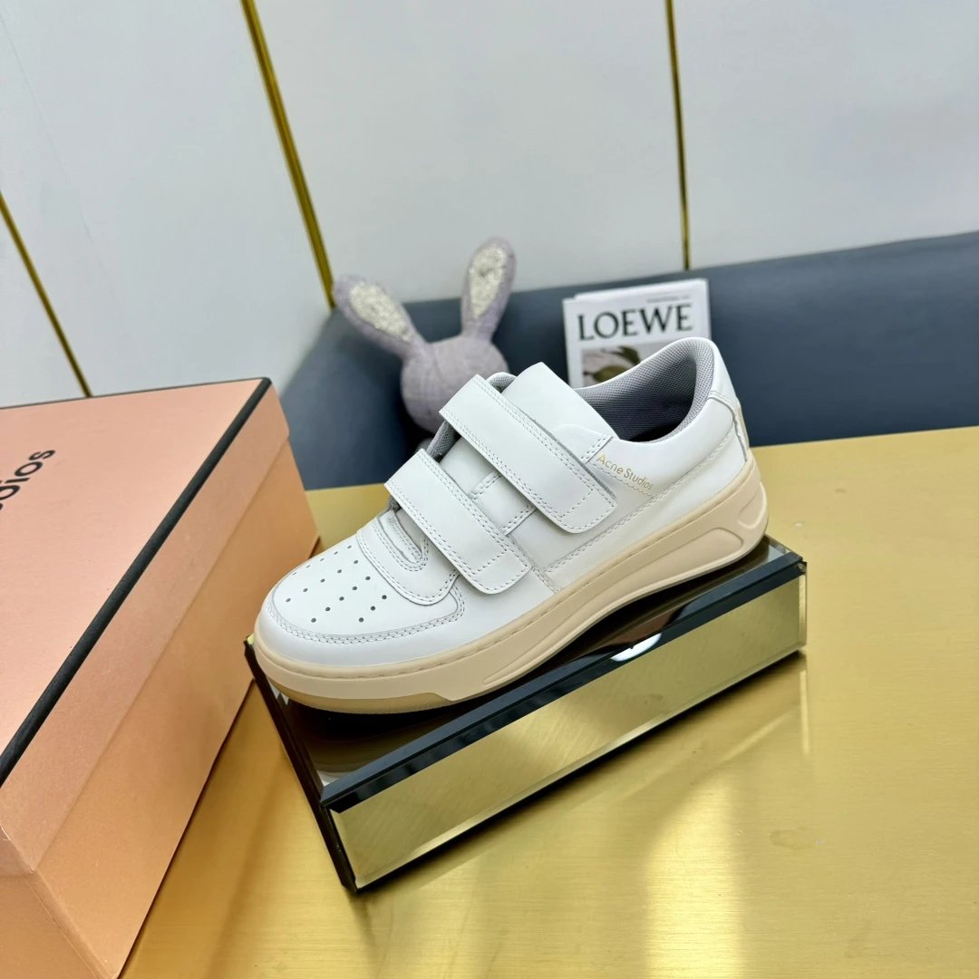 Acne Studios Authentic-Grade Women's Classic Velcro Smiley Leather White Sneakers