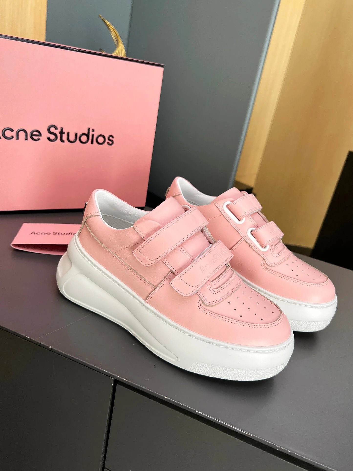 Acne Studios Smiley White Sneakers - Ma Sichun same style, thick 6cm sole for leg-lengthening.