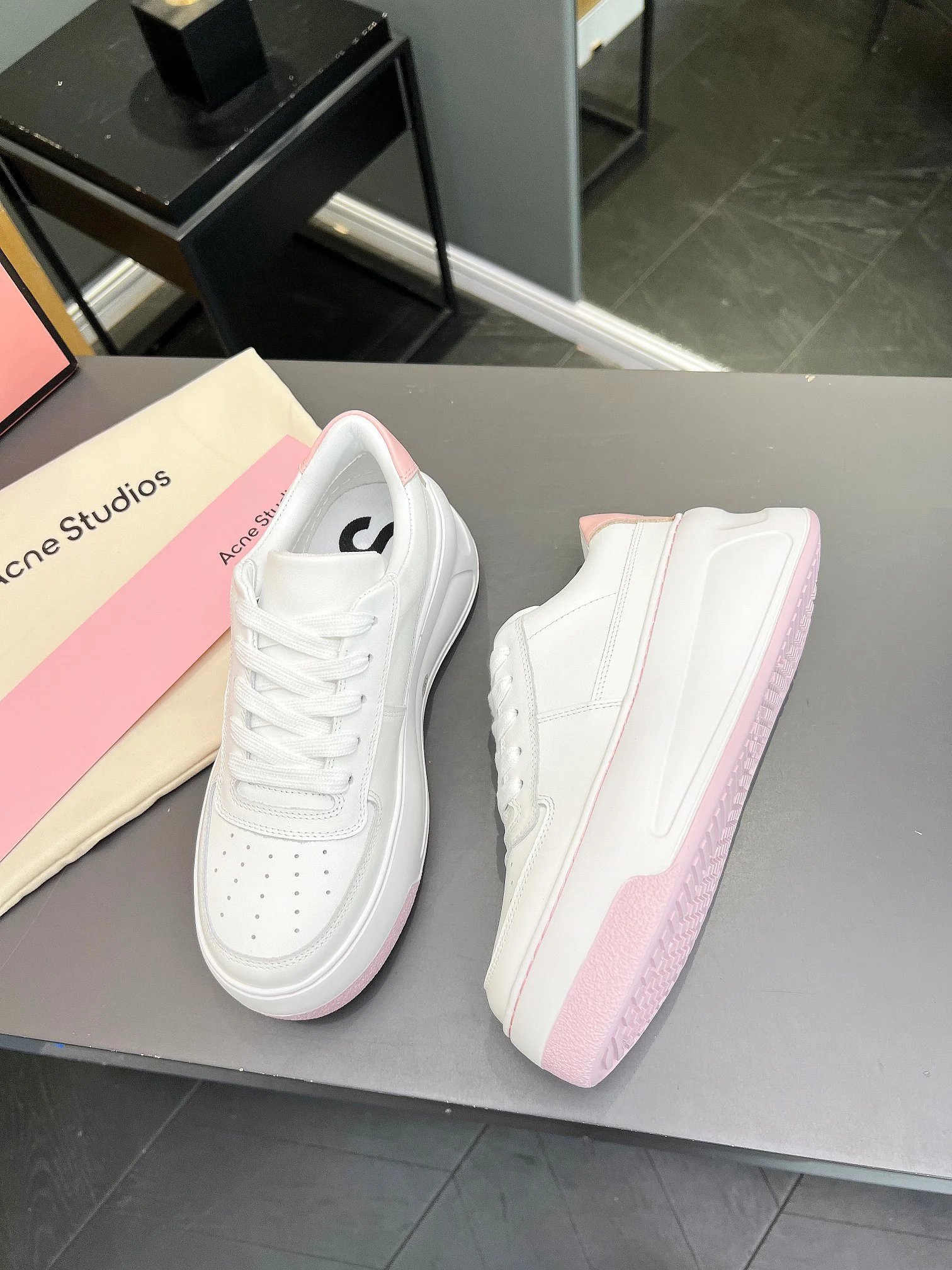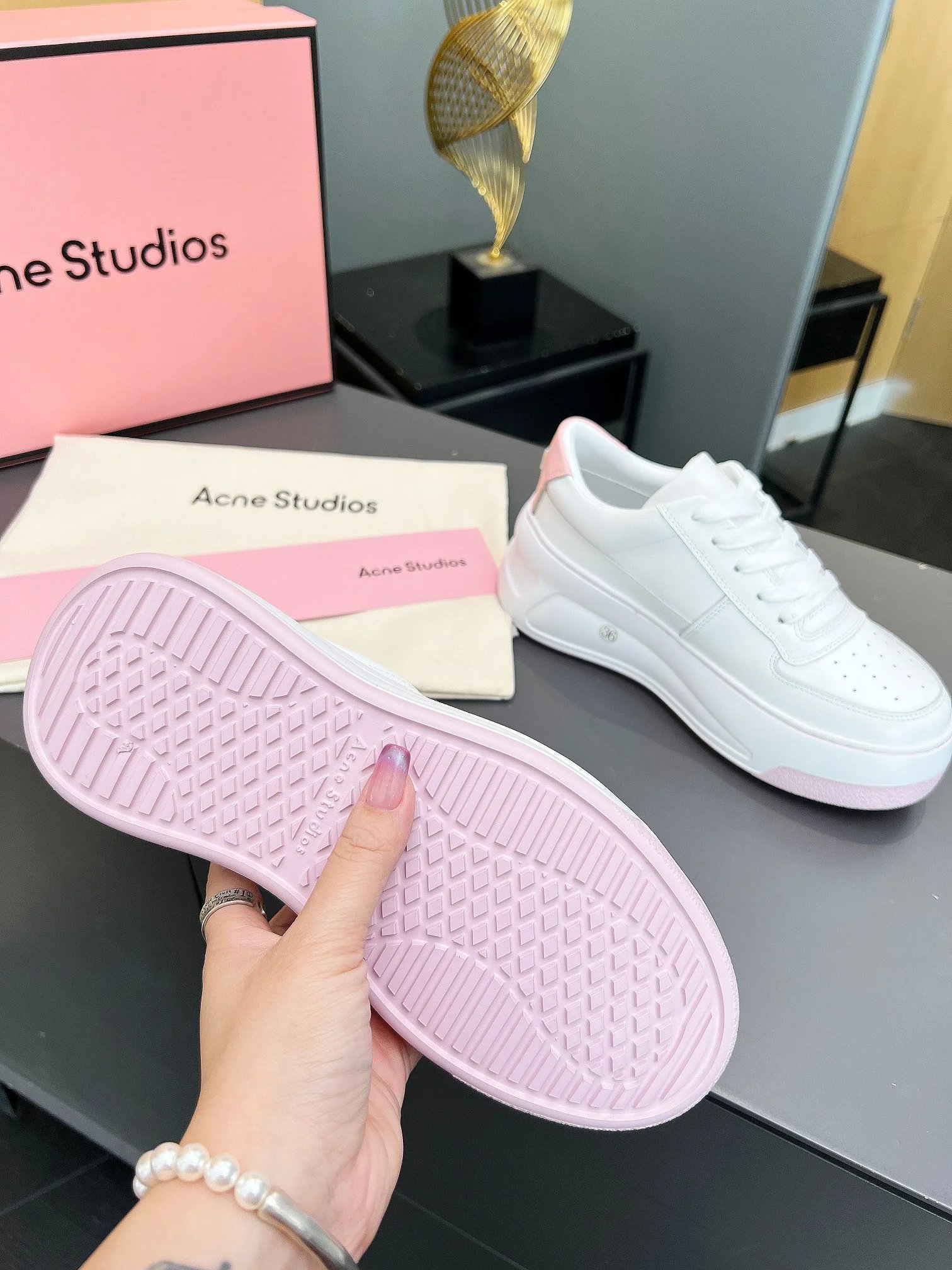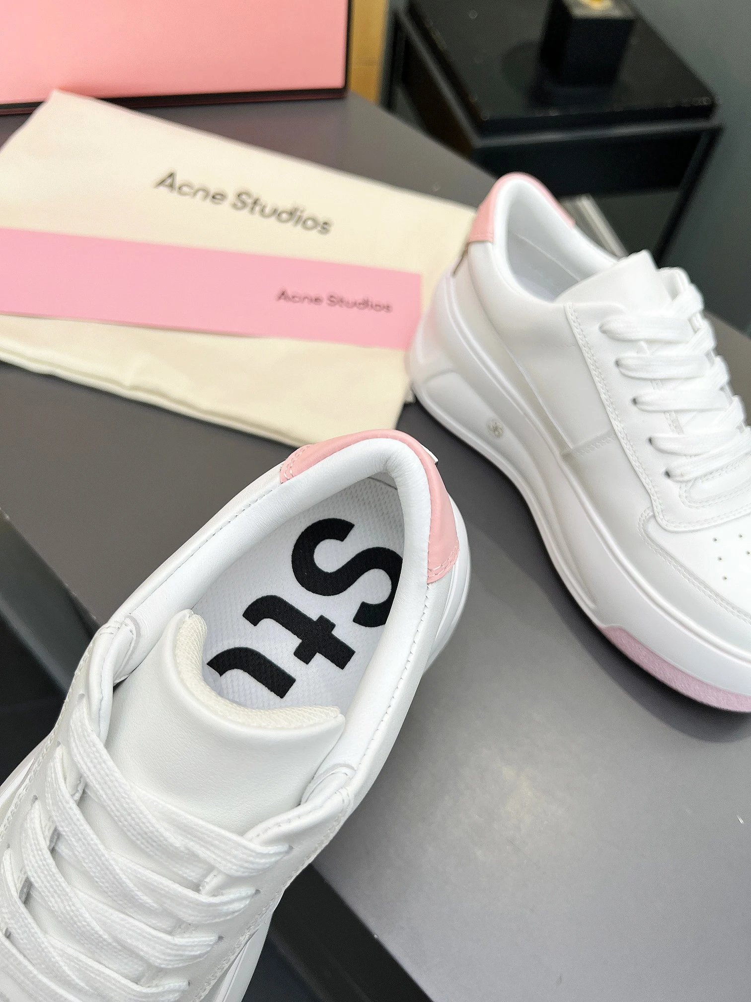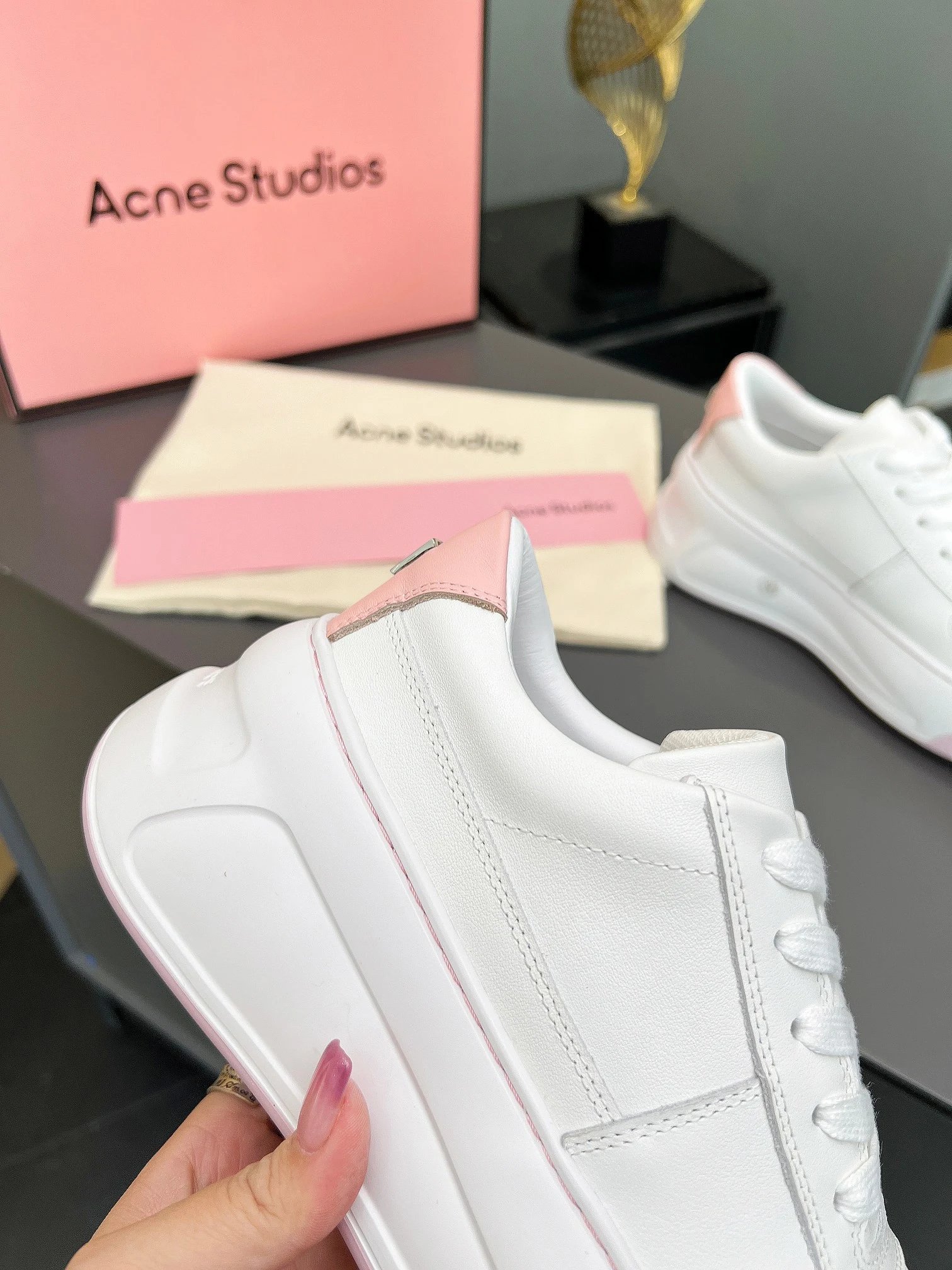 Acne Studios Smiley Velcro White Sneakers Ma Sichun Same Style Cowhide Thick Sole Women 35-40