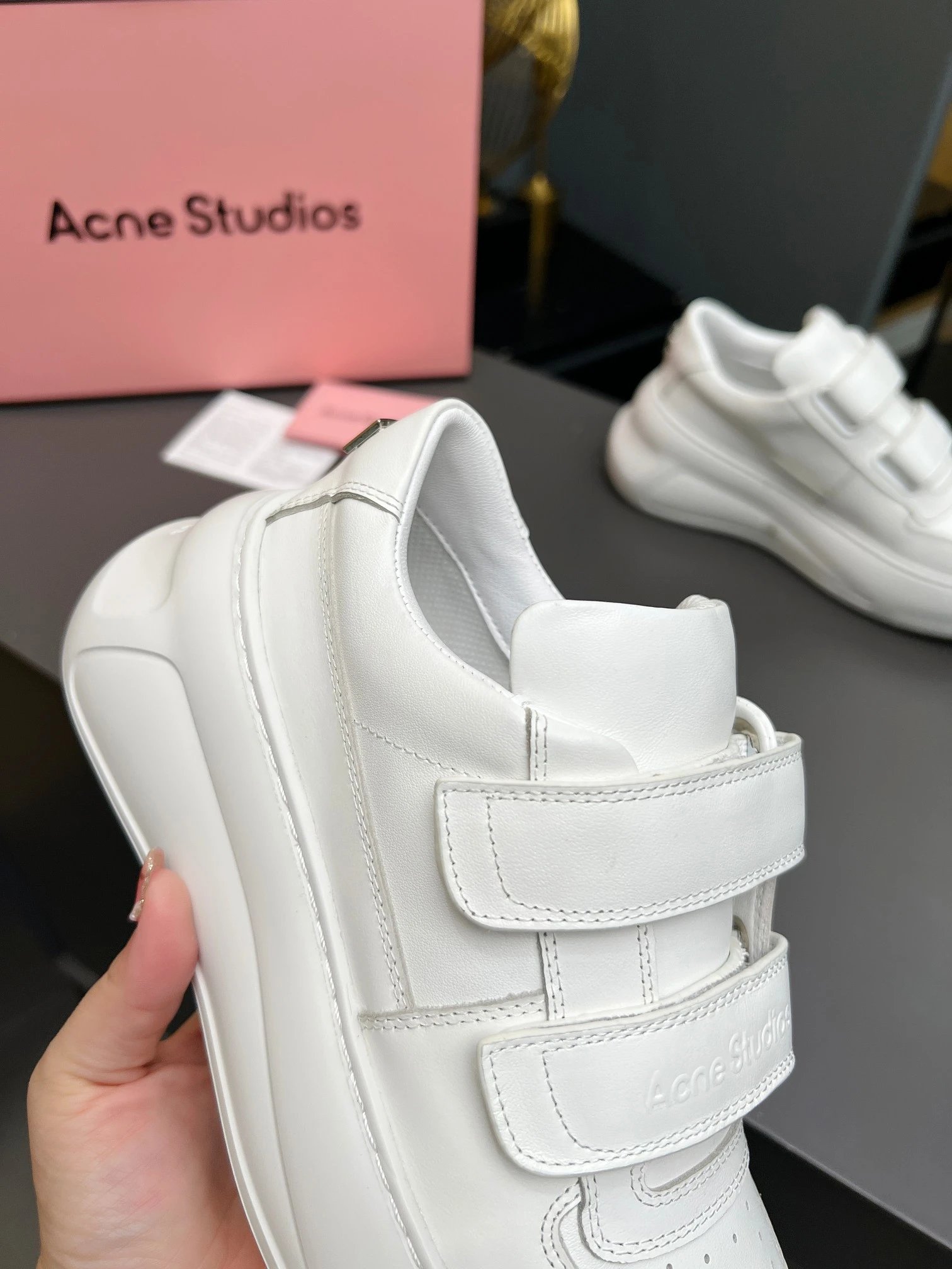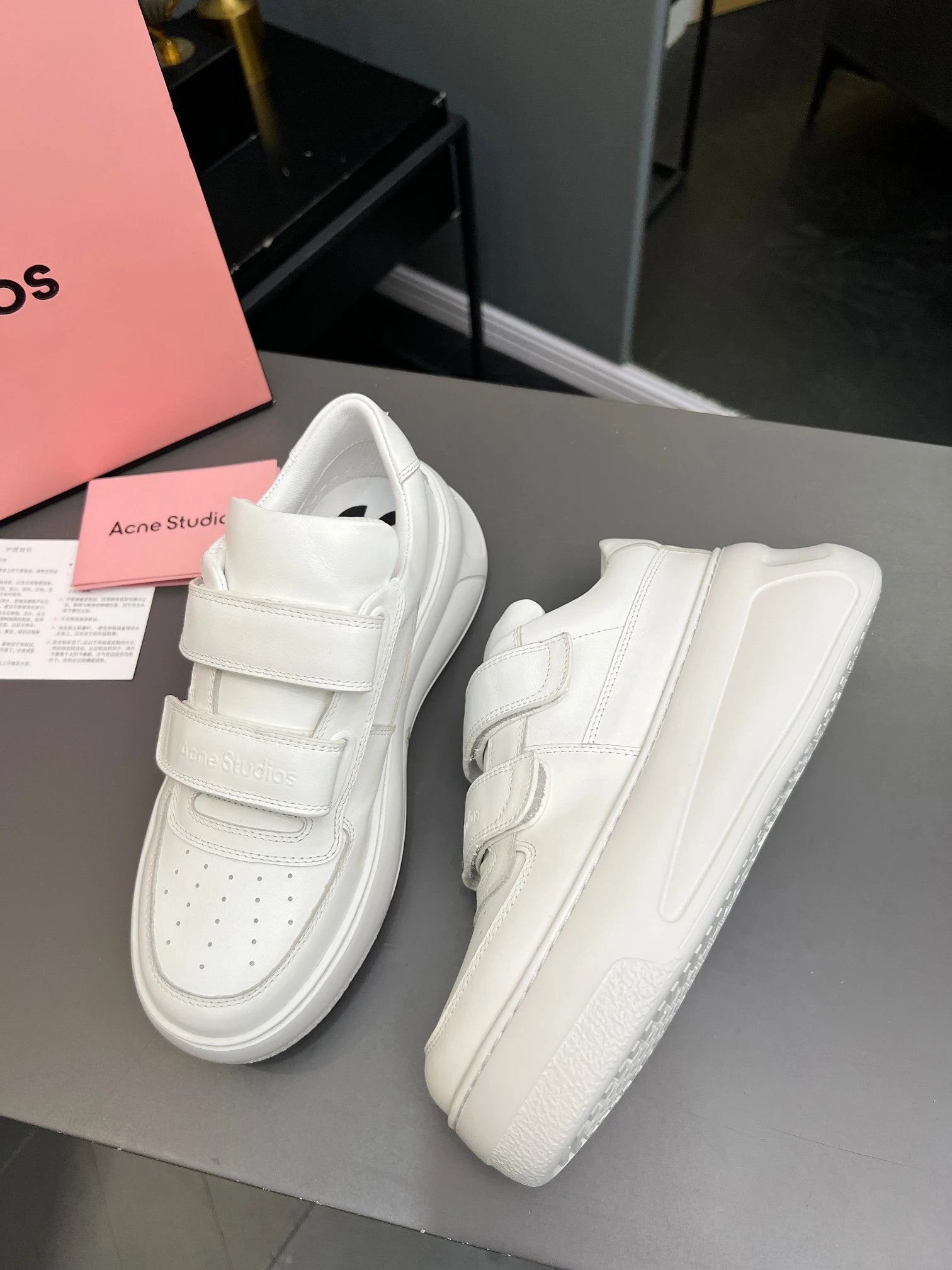 Acne Studios Women's Smiley Velcro White Sneakers are top-quality with full packaging.