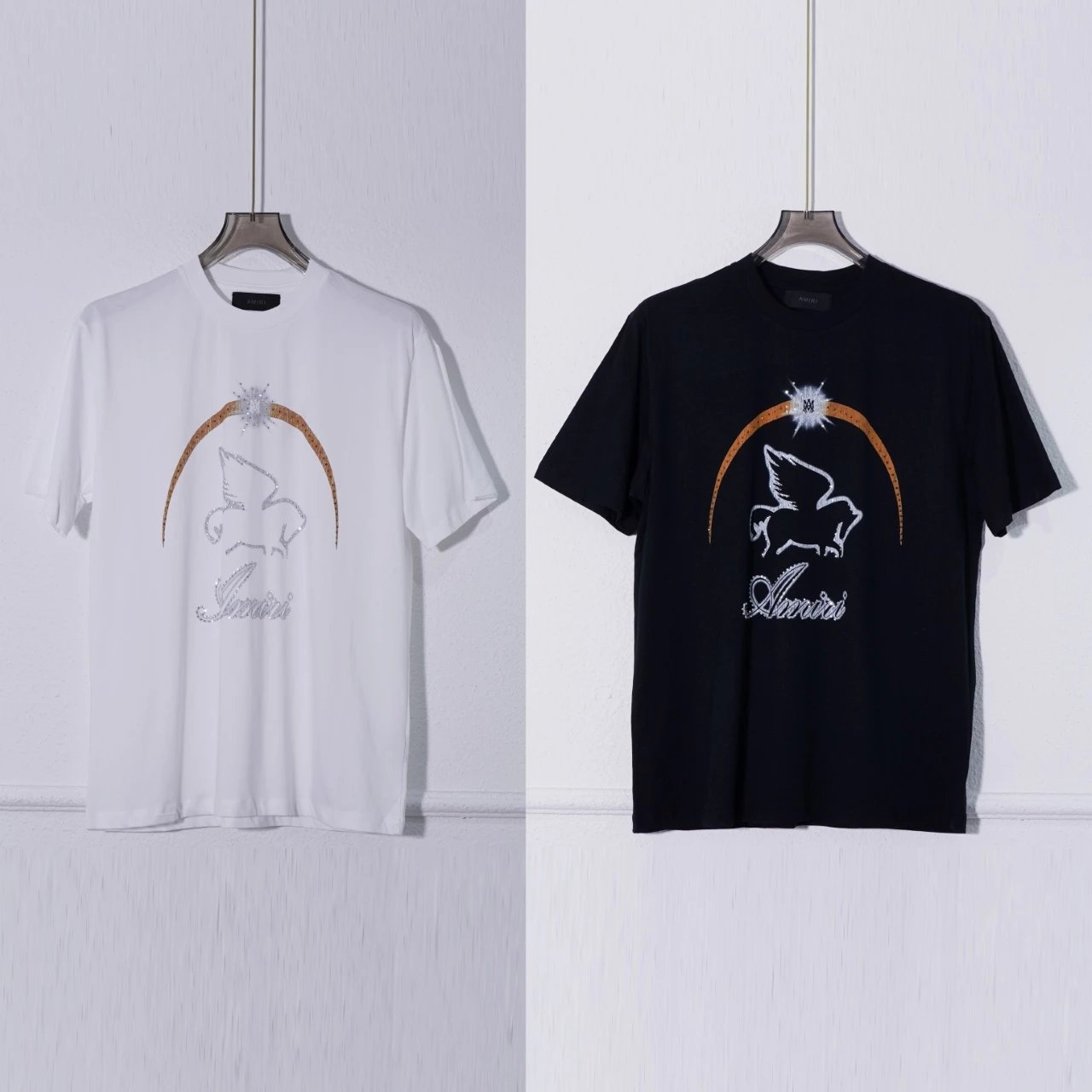 AMIRI Crew Neck T-Shirt uses original imported 180g high-count compact cotton, loose fit, breathable, imported direct-to-garment printing, ultra-comfortable, complete tags, exquisite workmanship.
