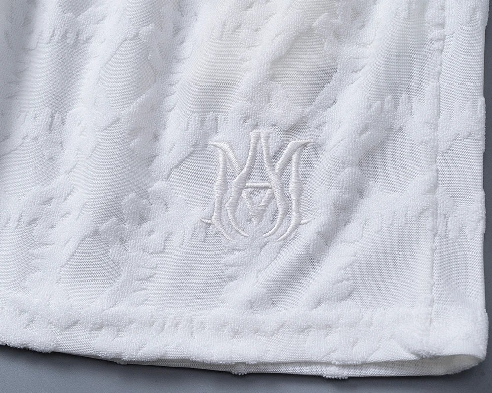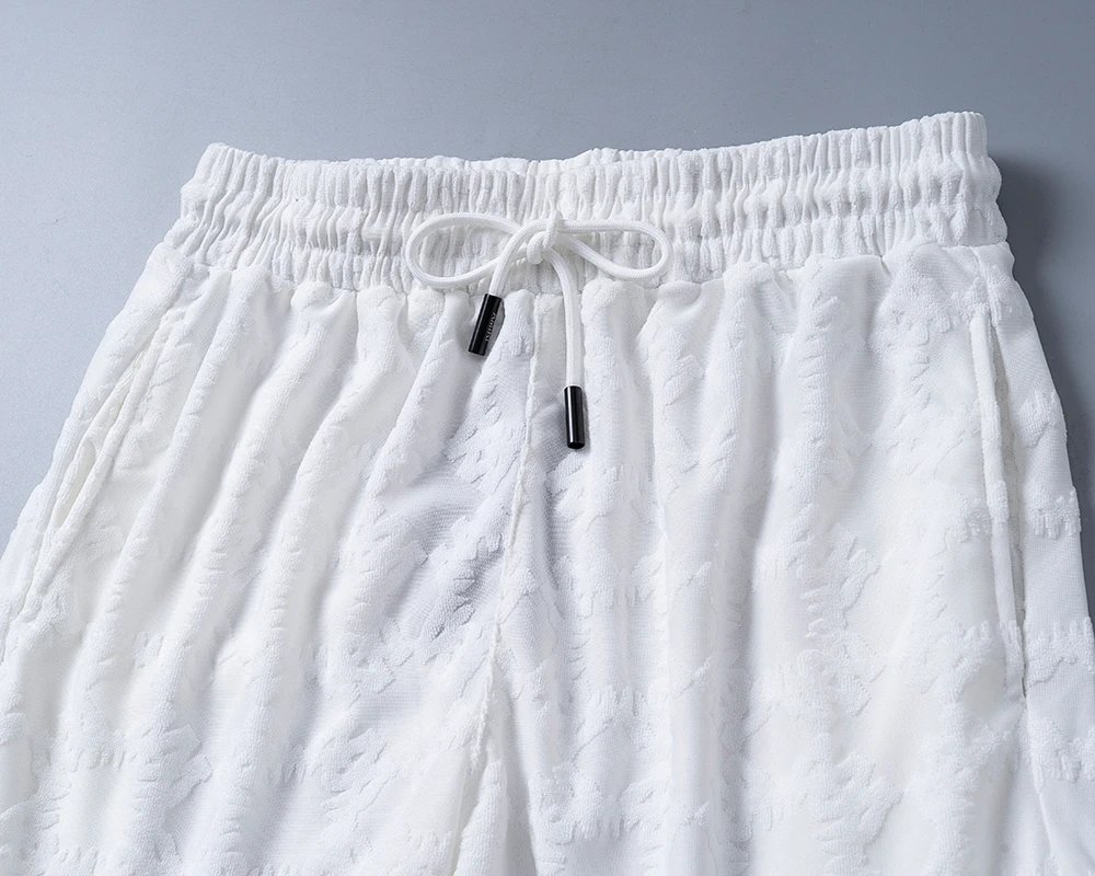 AMIRI is an American streetwear brand. This 2026 spring-summer knit jacquard elastic waist pants features hardware drawstring details.
